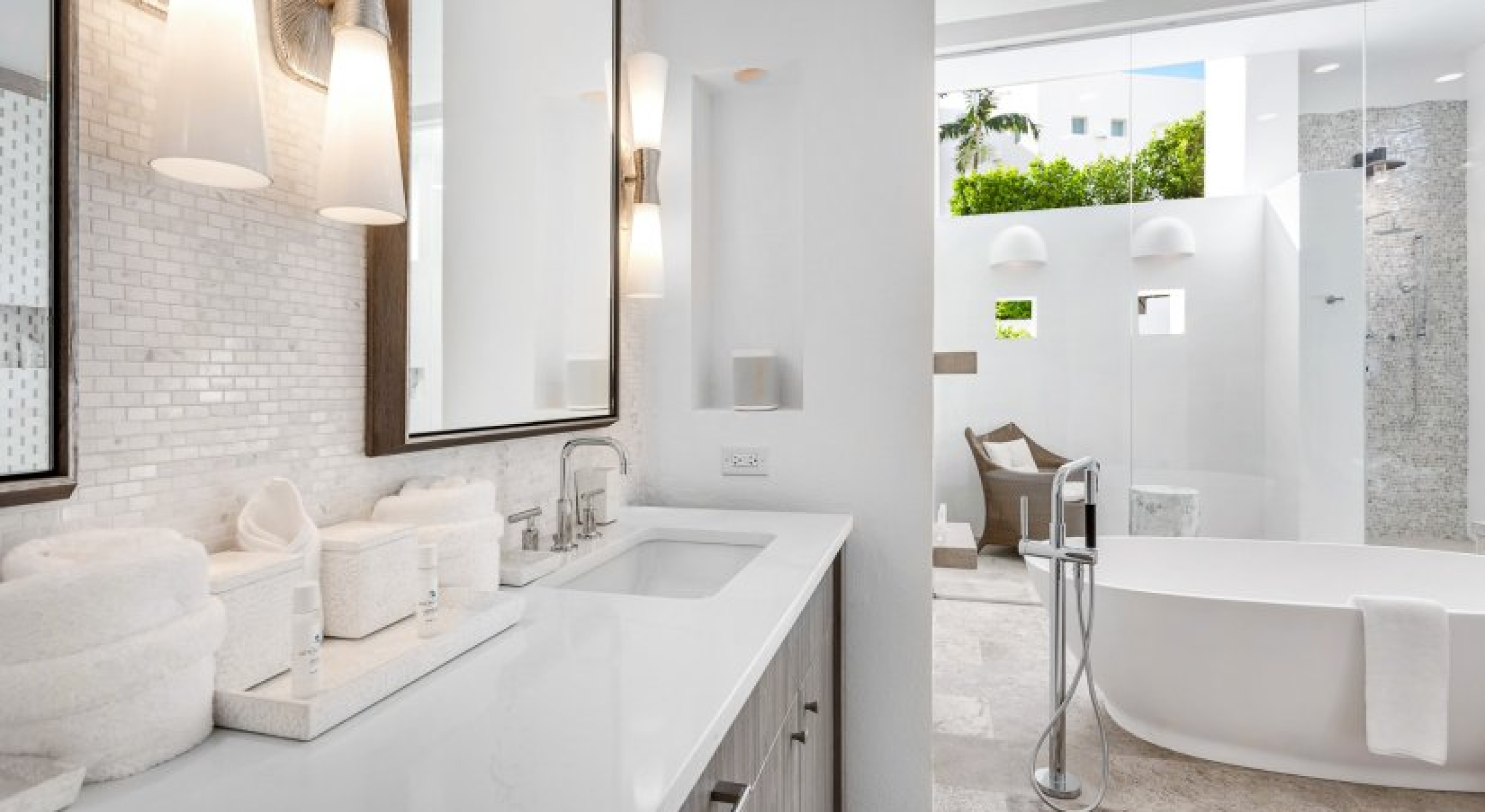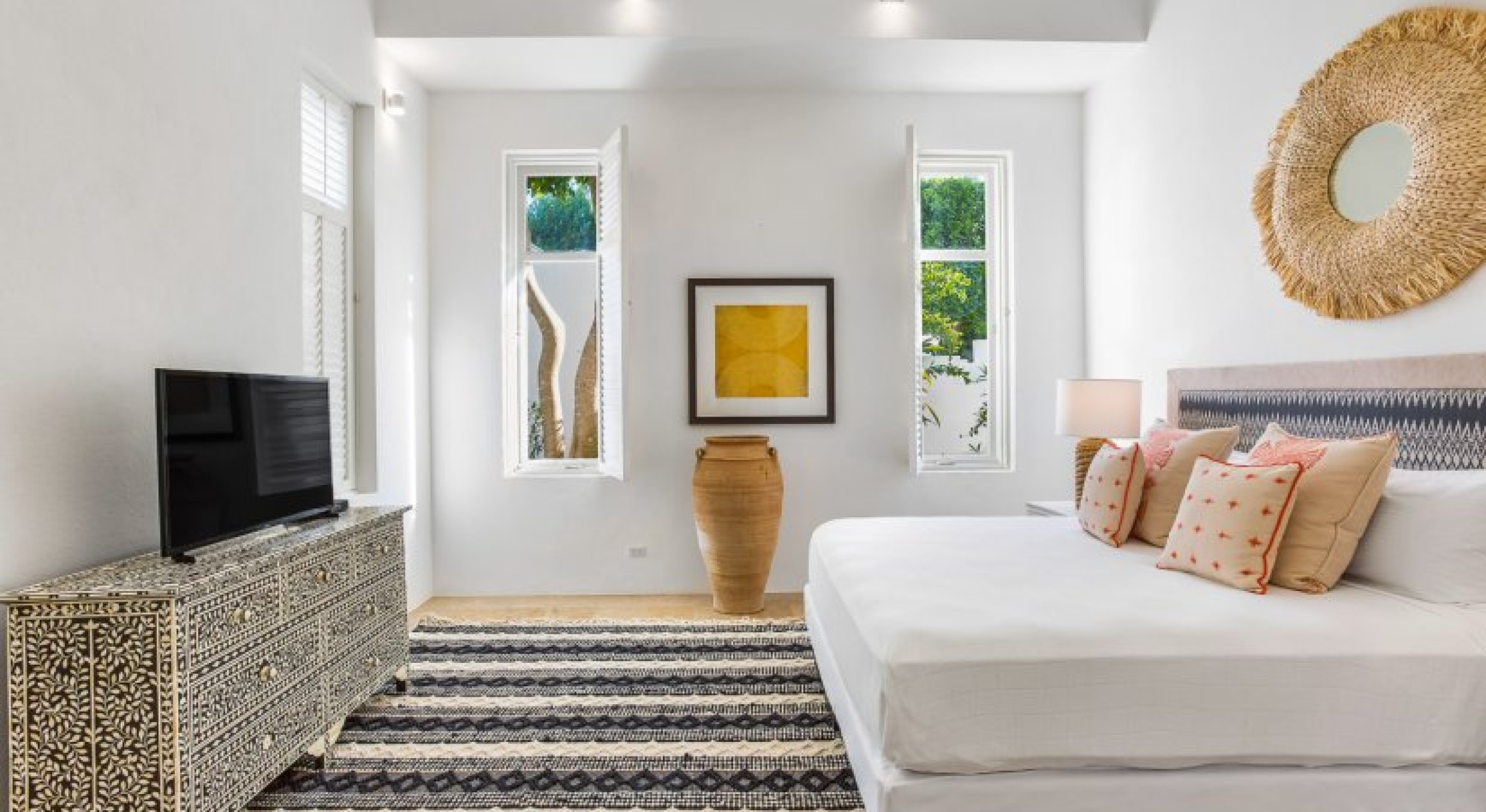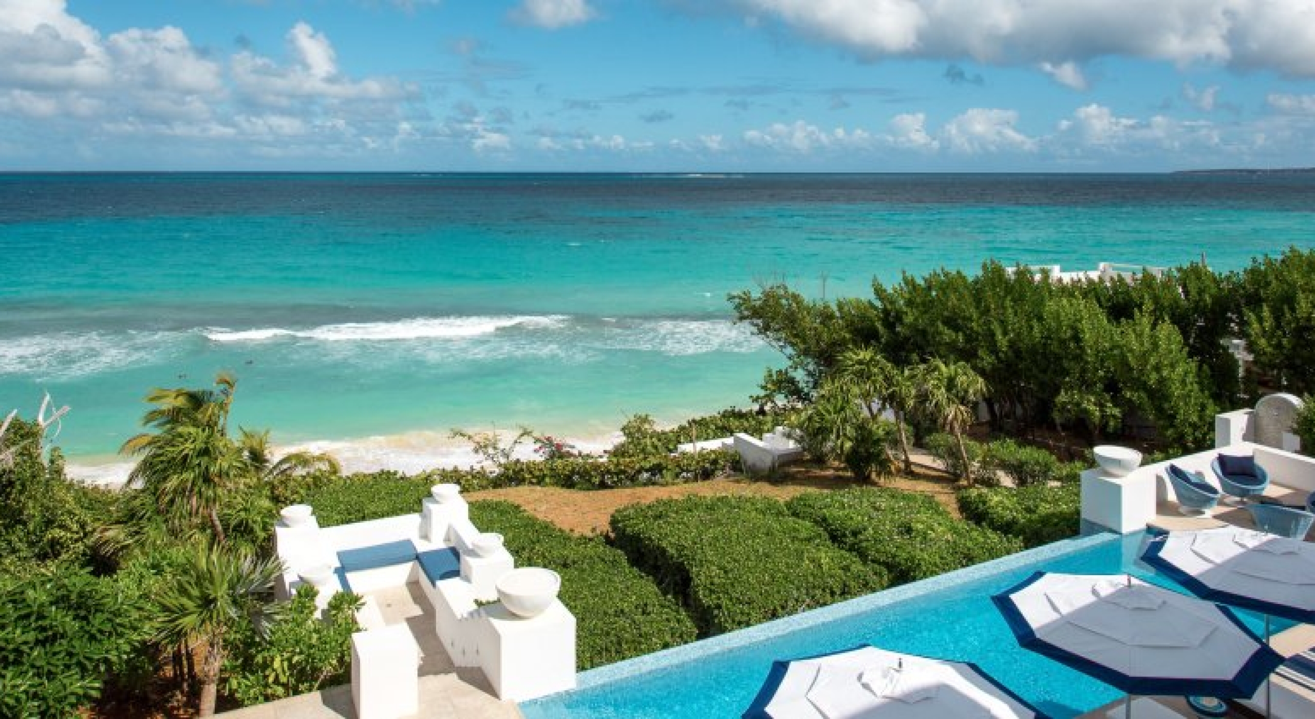 Introducing the Villas on Long Bay, Anguilla — Sand, Sea and Sky Villas - Can be rented individually or together. TOTALLY REFURBISHED INSIDE AND OUT Each beachfront villa offers its own private infinity pool, jacuzzi and outdoor dining area overlooking the sea. All three villas have 5 bedrooms making a total of 15 if you rent the entire complex. Luxurious designer features such as private balconies, marble bathrooms and elegant furnishings delight the most discerning guests. Truly private getaways, the Elements offer opportunities for total relaxation and escape. This exclusive enclave is located just minutes from Anguilla’s renowned Greg Norman golf course with dramatic sea view holes for spectacular golfing. Enjoy tennis on three lighted courts or workout in the fully equipped private gym at the villas. Activities abound on Anguilla, including snorkeling, diving, sailing, and more. BEDROOM & BATHROOM Bedroom 1: King size bed (can be converted to 2 twins), Ensuite bathroom with stand-alone shower and bathtub, Alfresco shower, Dual vanity, Walk-in closet, Smart television, Air conditioning, Safe, Private balcony, Ocean view Bedroom 2: King size bed (can be converted to 2 twins), Ensuite bathroom with stand-alone shower and bathtub, Alfresco shower, Dual vanity, Walk-in closet, Smart television, Air conditioning, Safe, Private balcony, Ocean view Bedroom 3: King size bed, Ensuite bathroom with stand-alone shower and bathtub, Alfresco shower, Dual vanity, Walk-in closet, Smart television, Air conditioning, Safe, Private balcony, Ocean view Bedroom 4: King size bed, Ensuite bathroom with stand-alone shower and bathtub, Alfresco shower, Dual vanity, Walk-in closet, Smart television, Air conditioning, Safe, Private balcony, Ocean view Additional Bedding Bunk Room : 2 Twin size bunk beds, ideal for children FEATURES & AMENITIES Fully equipped kitchen with breakfast bar Formal dining area with seating for 10 Espresso machine Ice maker Dishwasher Smart television Sonos sound system Wi-Fi Air conditioning Washer/Dryer Iron/Ironing board OUTDOOR FEATURES Swimming pool - heating included Hot tub - heating included Alfresco dining with seating for 8 Alfresco shower Outdoor living area Shared floodlit tennis courts Shared exercise room Shared beach cabana Gas barbecue 3-Car parking Fountain STAFF & SERVICES Included: Daily continental breakfast Housekeeping Daily butler service for 8 hours Villa Manager On-site concierge Security guard Extra cost (advance notice may be required): Villa pre-stocking Airport transfer Activities and excursions Chef service LOCATION Points of Interest 1.6 km to Viceroy Resort Anguilla 3.2 km to CuisinArt Golf Resort & Spa 8 km to Blowing Point Ferry Terminal 9.7 km to Crocus Hill 11 km to The Valley, Capital of Anguilla (Restaurants, Grocery, Hospital) Beach Access Beachfront to Long Bay Beach, accessible via a private staircase 9.7 km to Sandy Ground Beach 16 km to Shoal Bay Beach – East Airport 9.7 km to Clayton J. Lloyd International Airport (AXA)