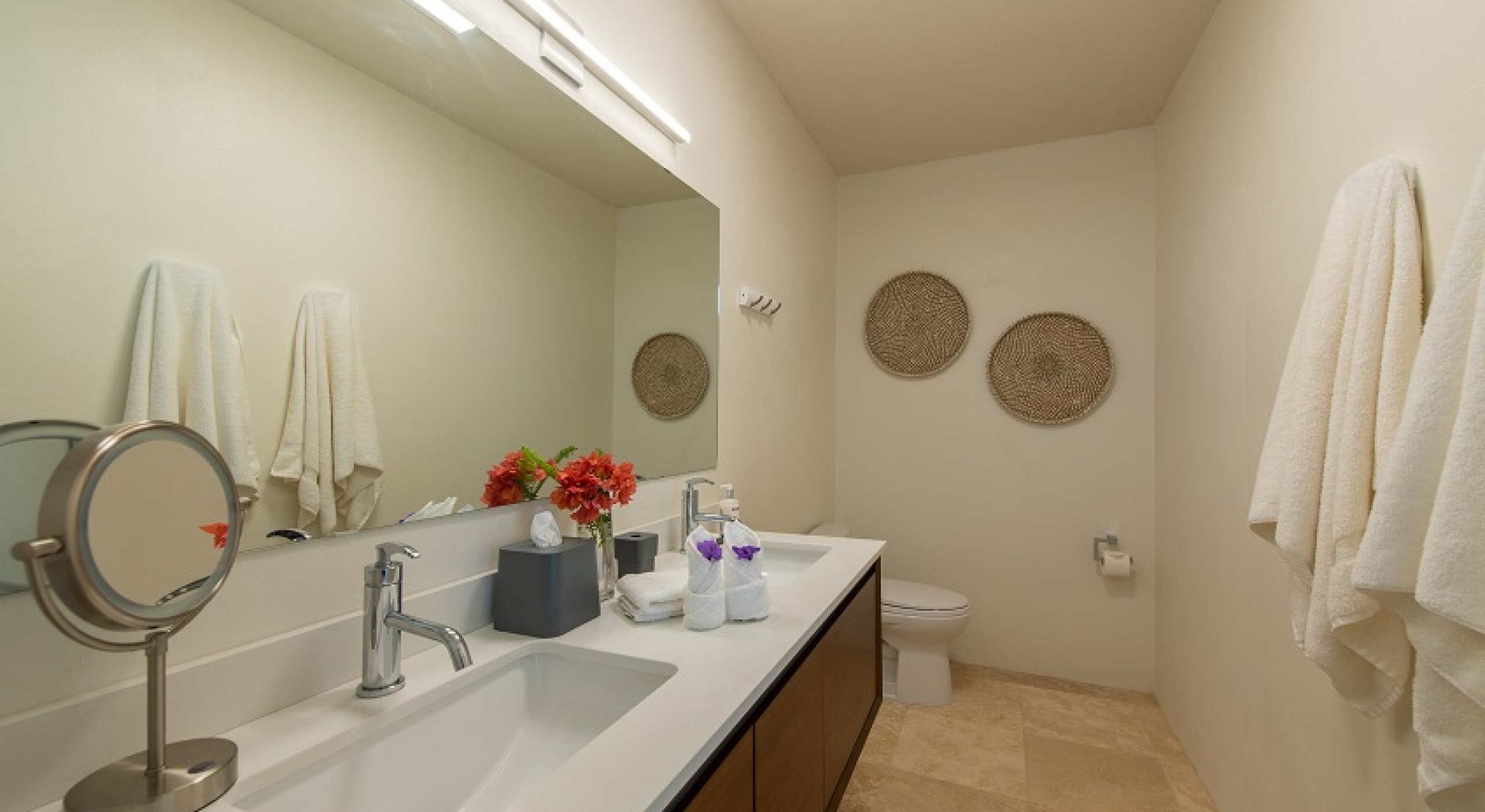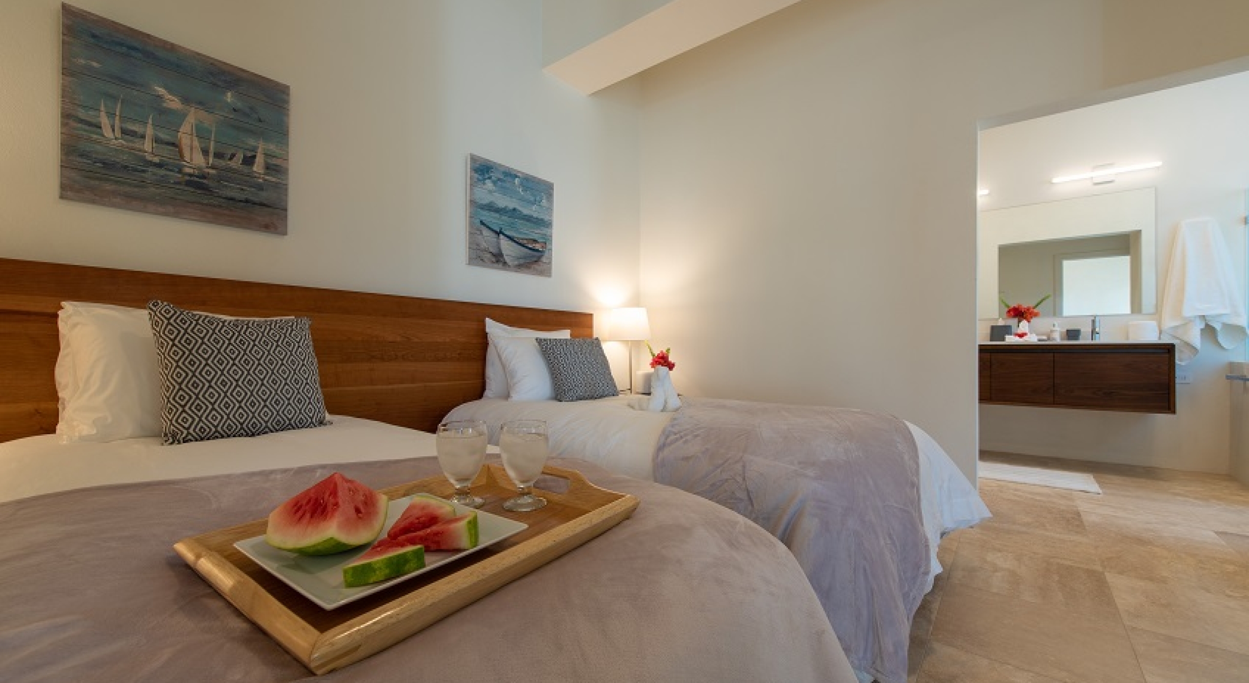 Bedroom 3: 2 Twin size beds (can be converted to a king), Ensuite bathroom with stand-alone rain shower, Dual vanity, Television, Safe, Air conditioning, Ceiling fan