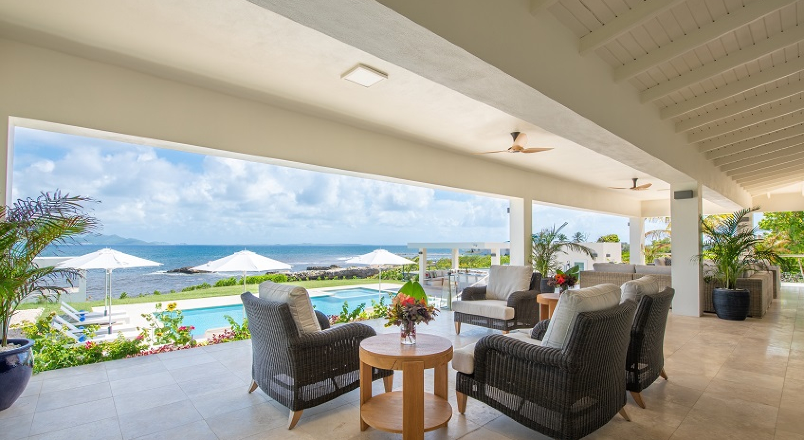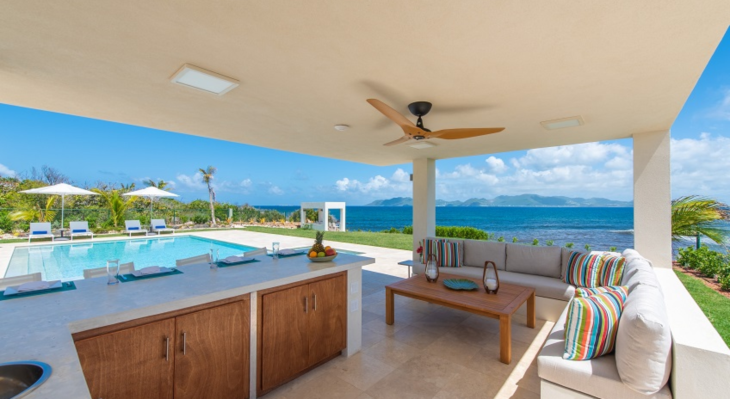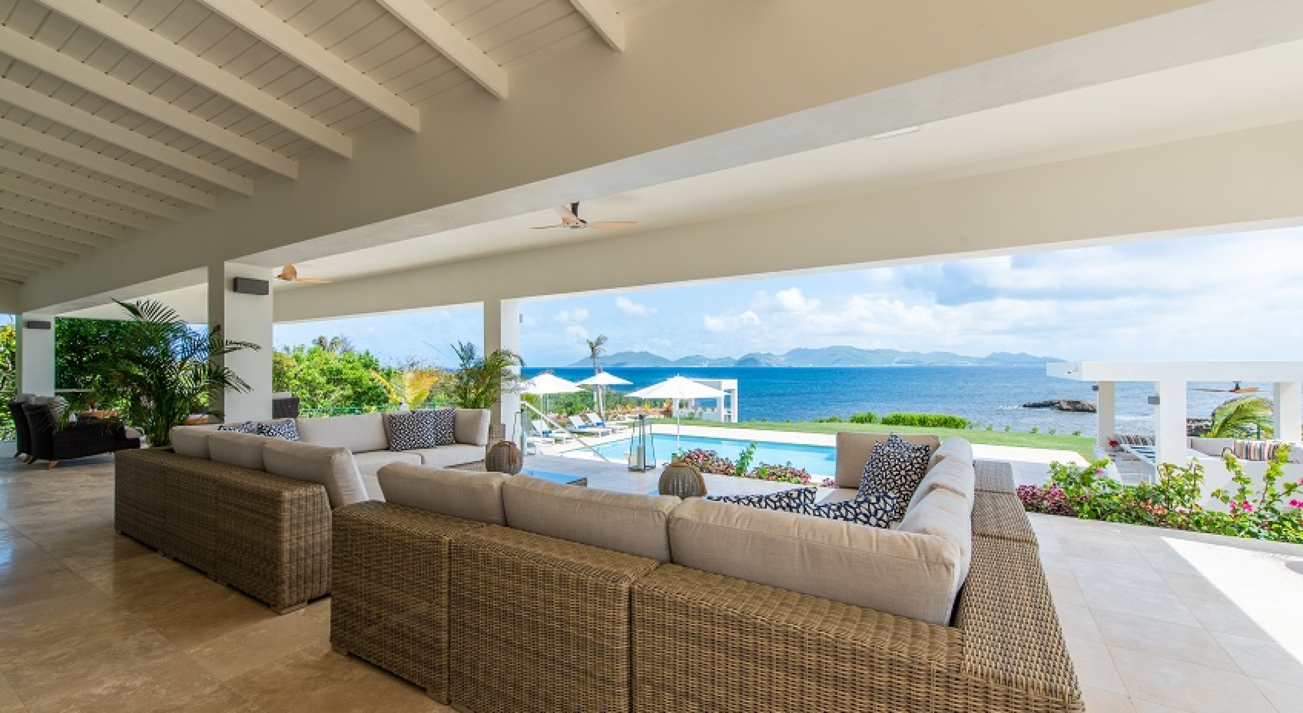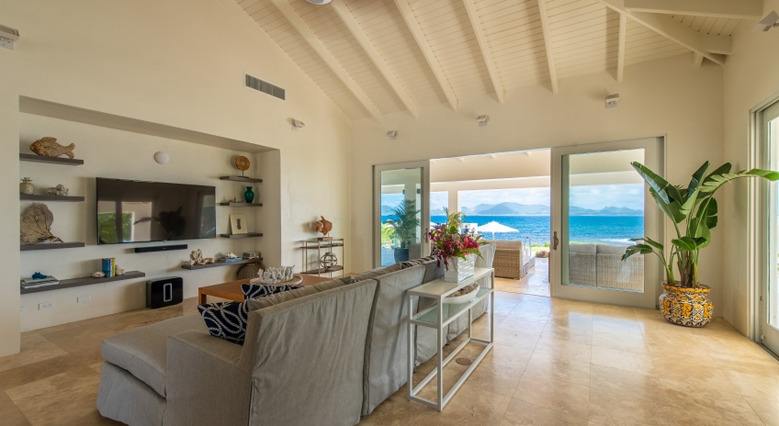 Round Rock overlooks St. Martin’s rugged coastline across the Anguilla Channel. This six-bedroom villa is equipped with every modern convenience for an idyllic island getaway.