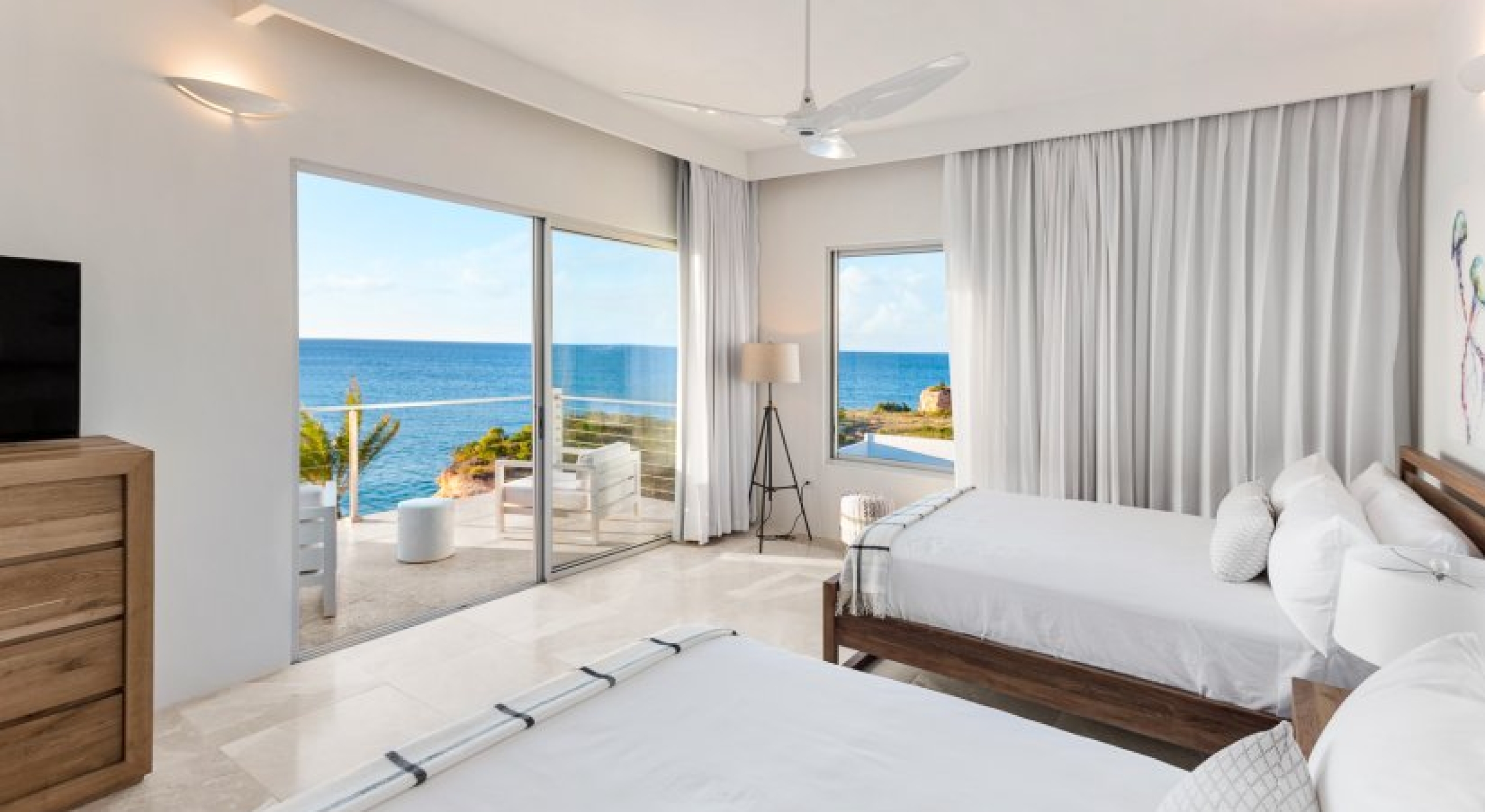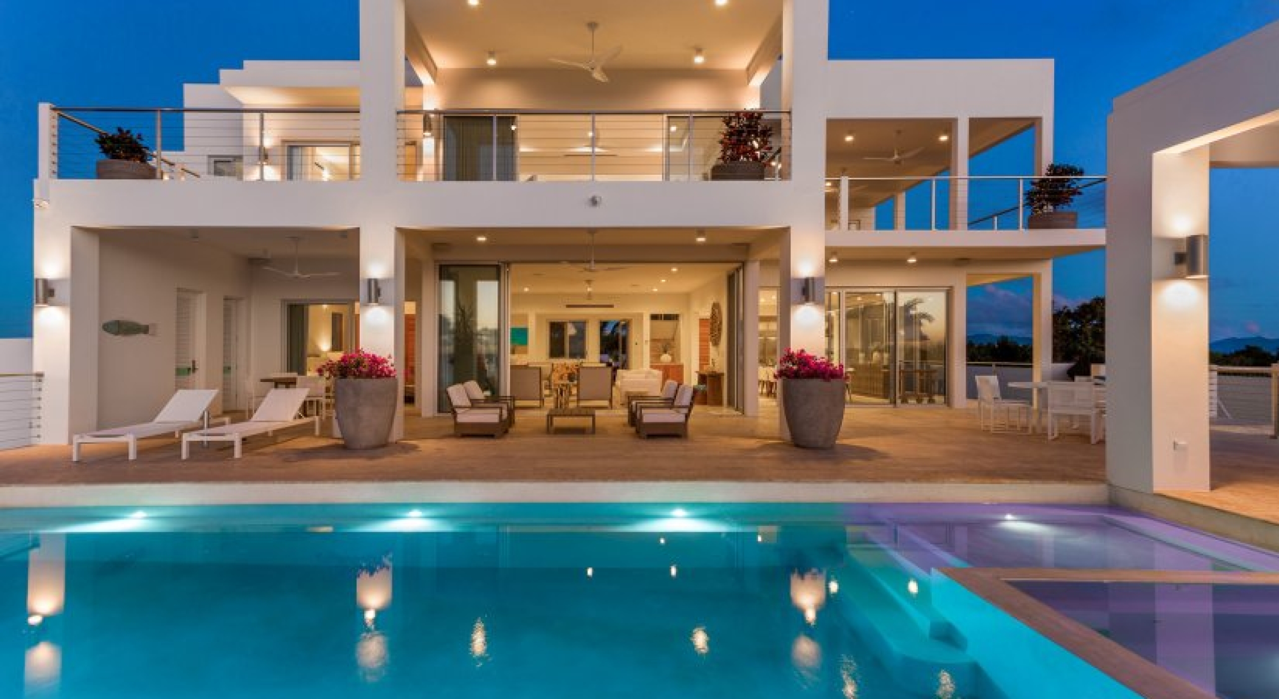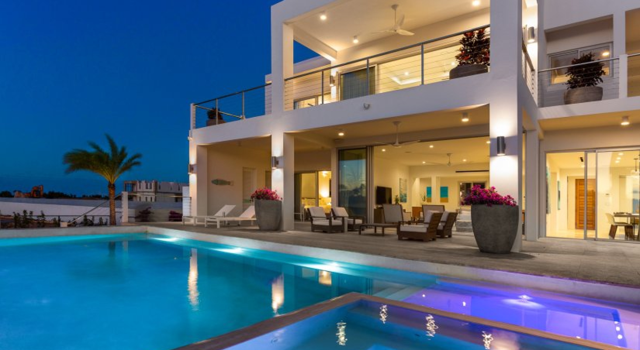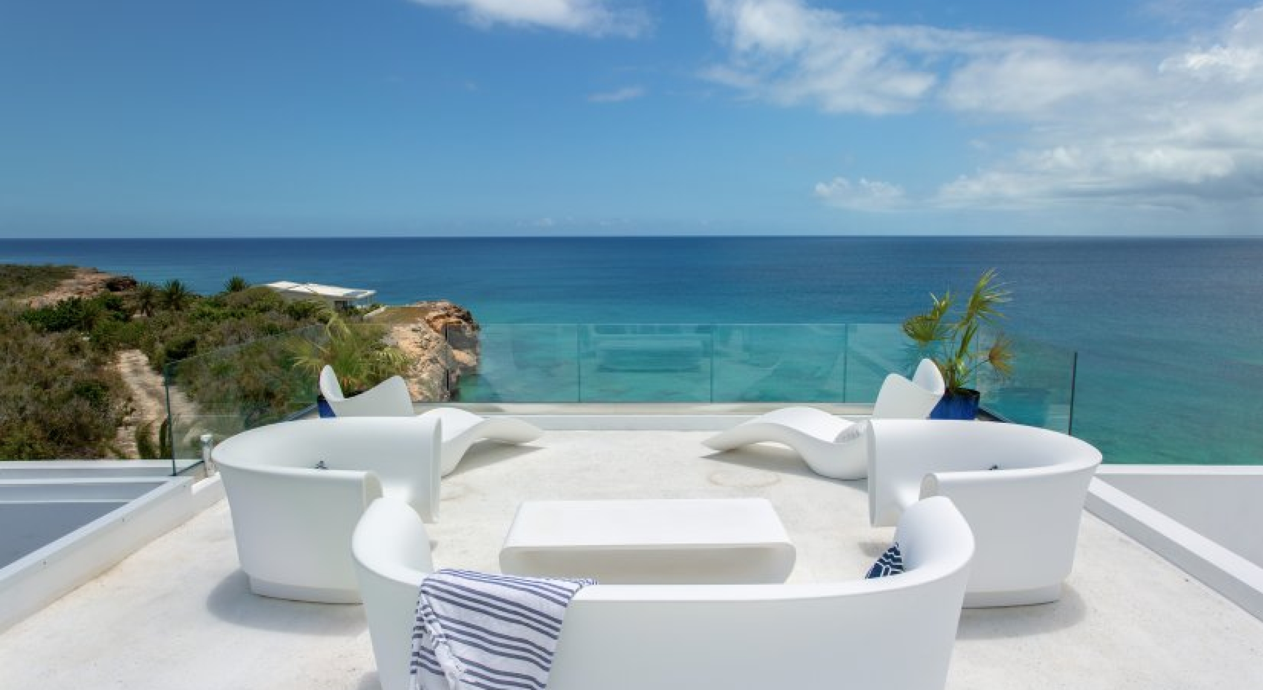Kandara is a chic, tropical villa located on Anguilla’s West End. This 8,000 square foot home takes up an acre of land and enjoys gorgeous sunsets.