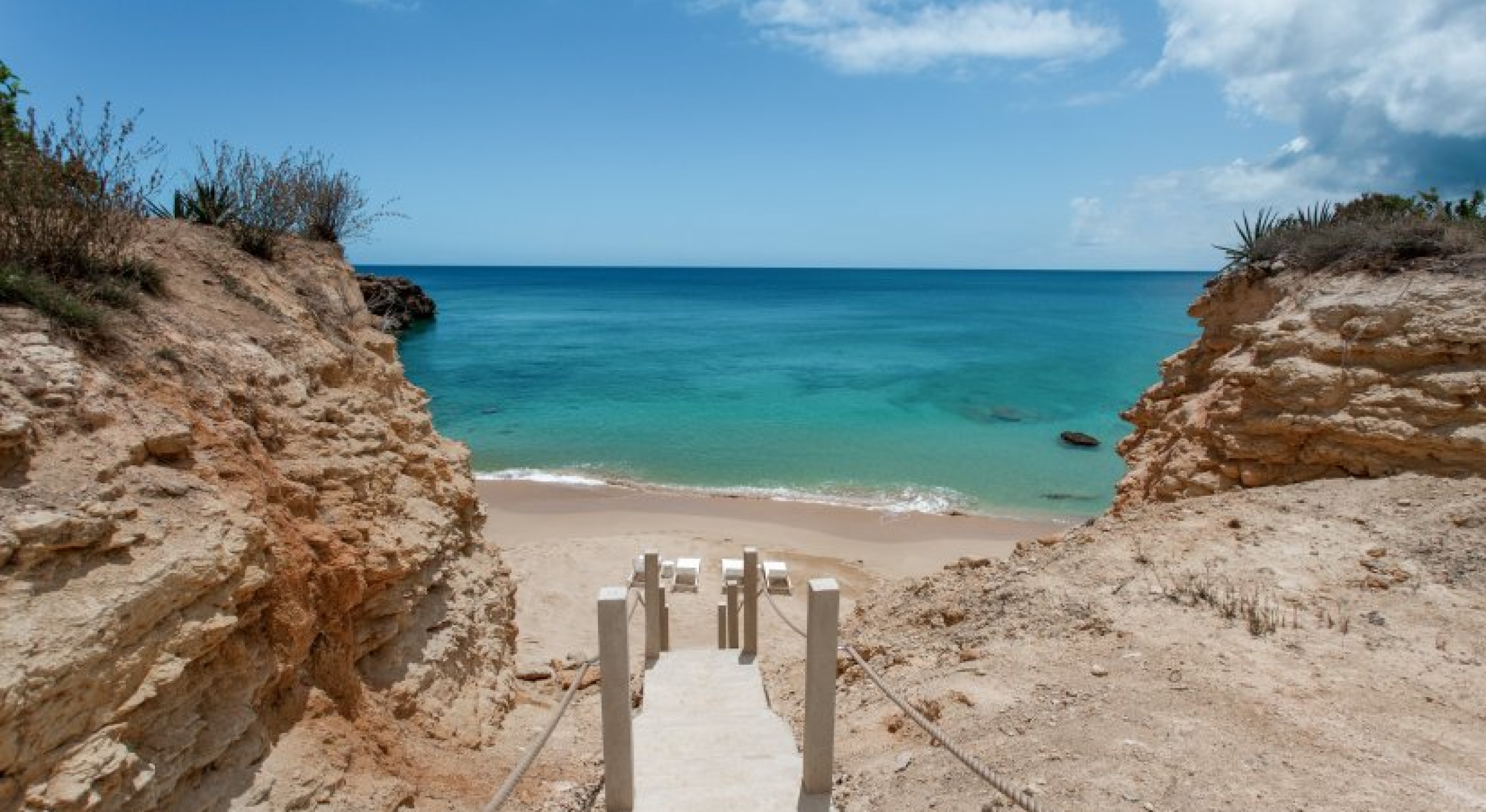 Secluded beach cove access via stairs