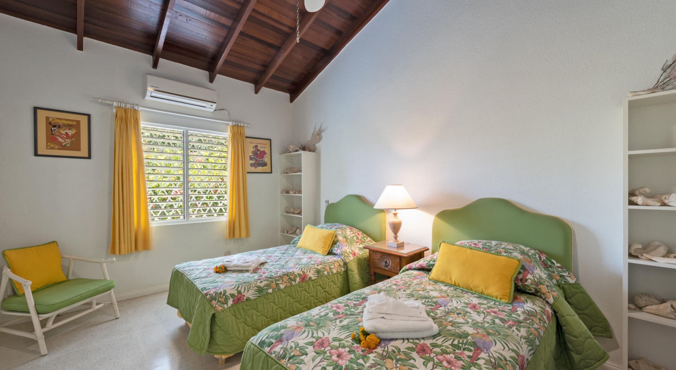 Bedroom 3: Bedroom with two single beds, AC and en-suite bathroom with shower, vanity and WC. 2 guests maximum.