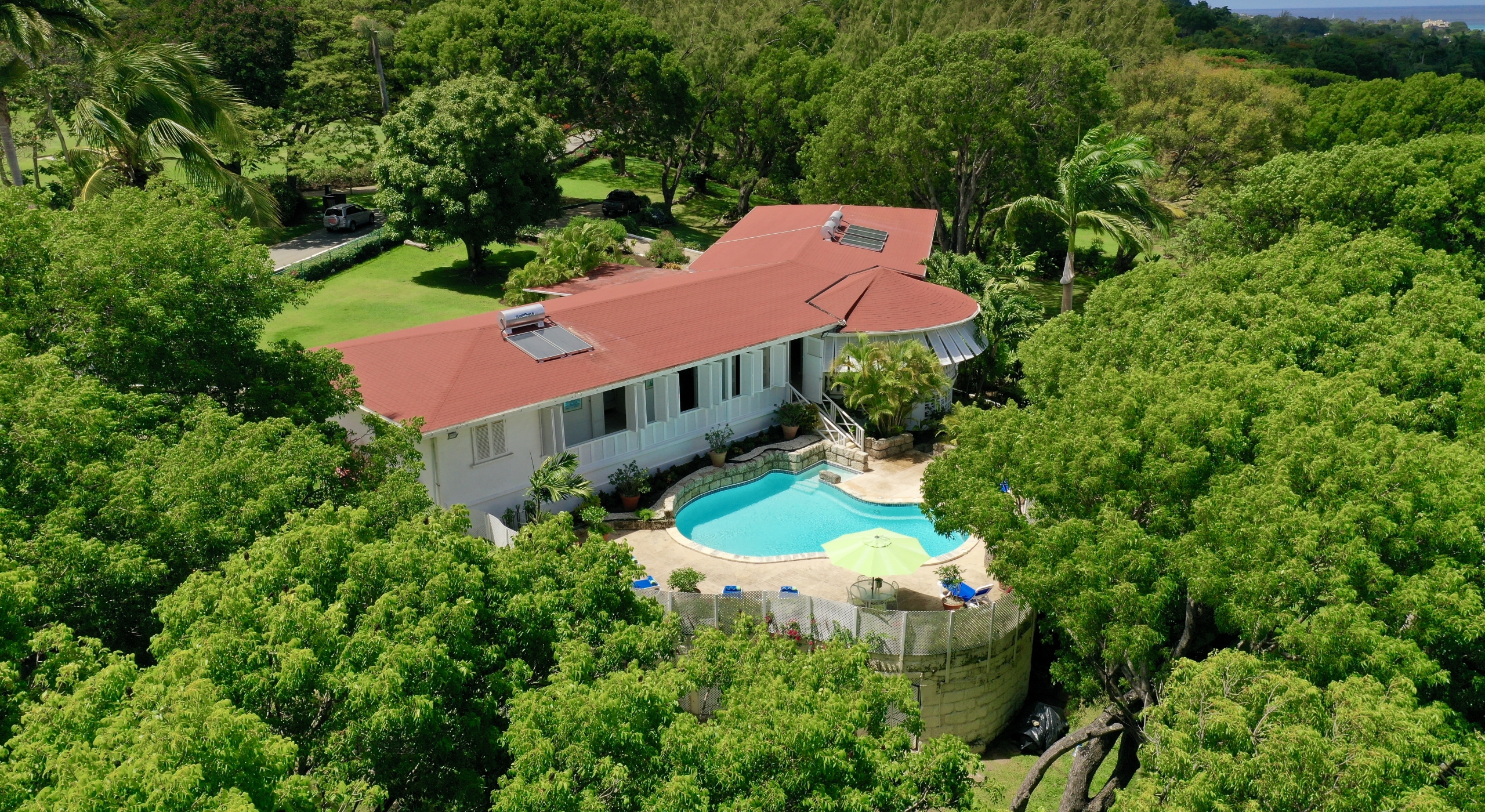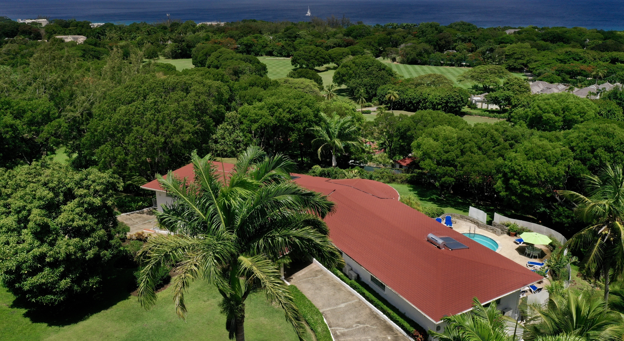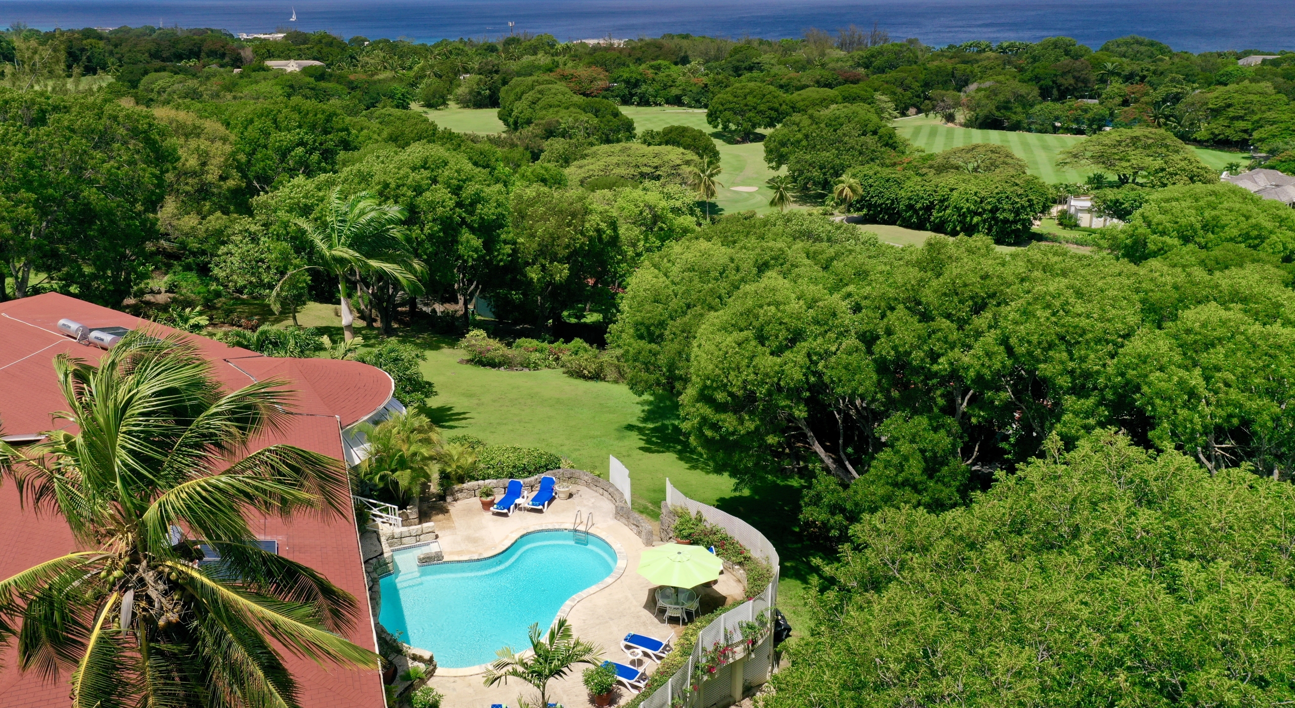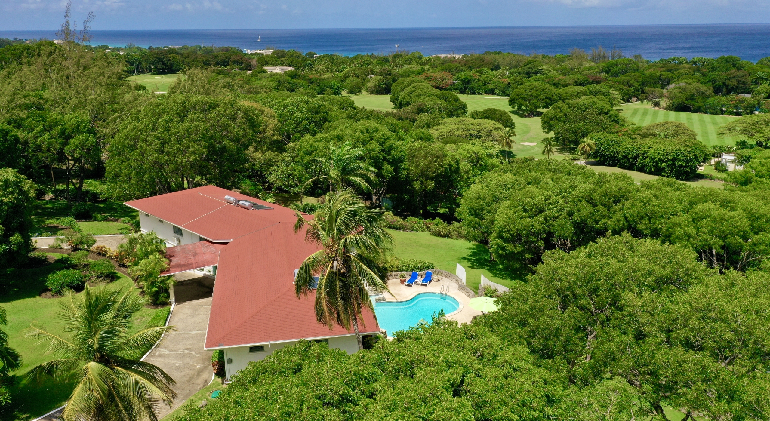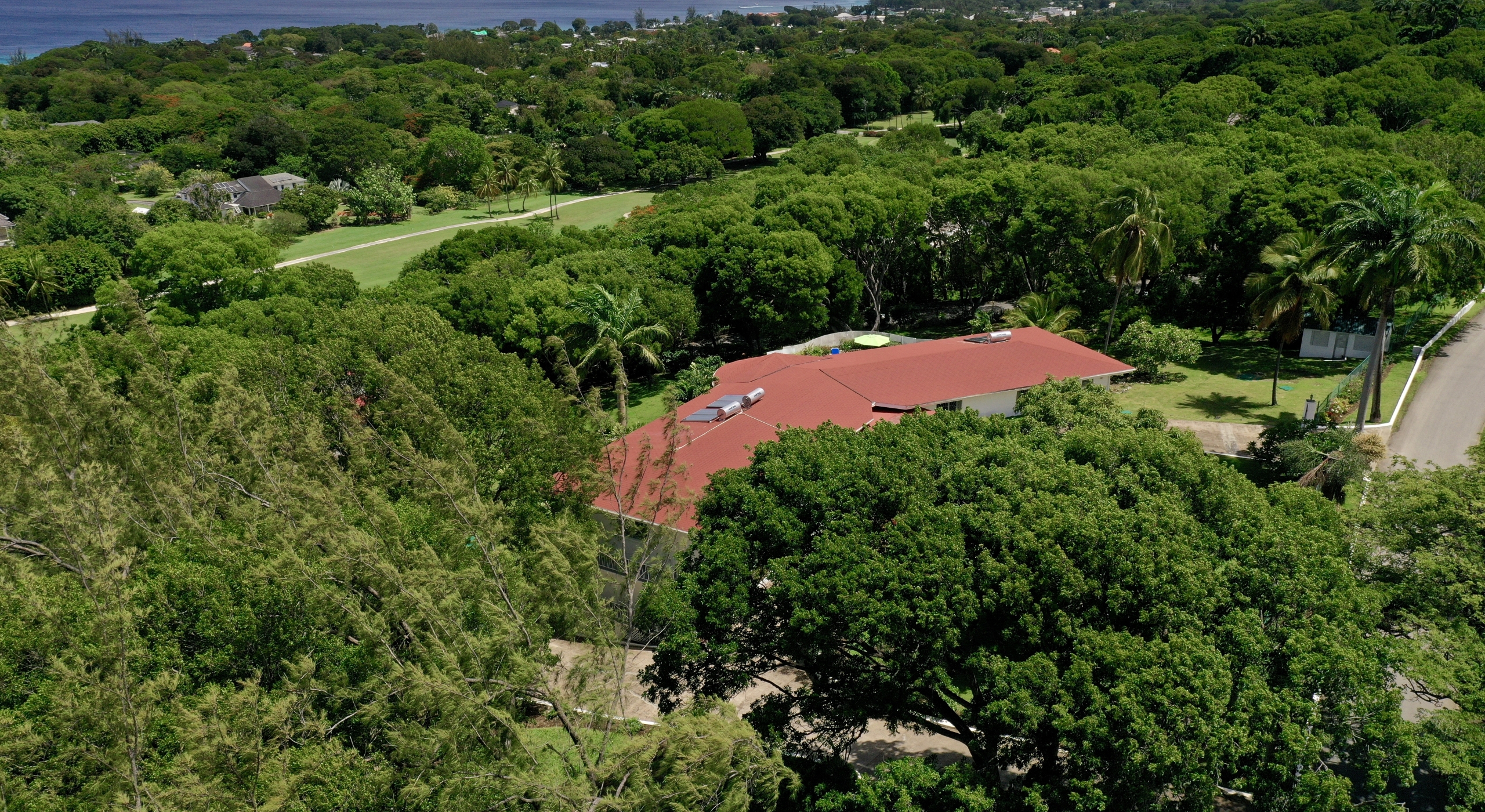 The main house and guest cottage encompass well over 6,000 square feet of covered living space and the villa is situated on one of the largest plots on the estate at over 2 ½ acres. The ridge front location offers sea views to the west amongst the majestic mahogany trees and to the south and east of the property is the famous Old Nine golf course with clubhouse, bar and tennis.