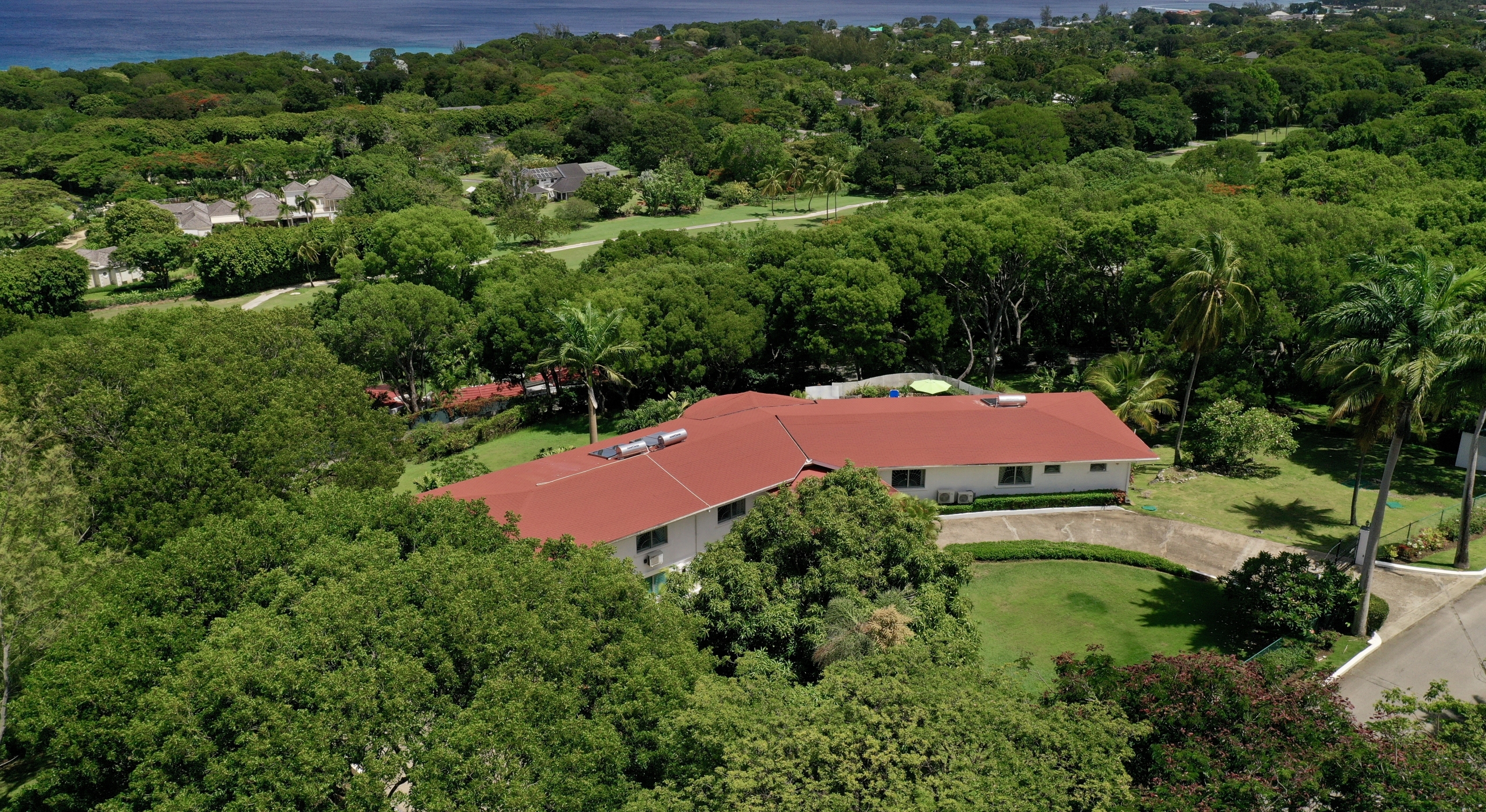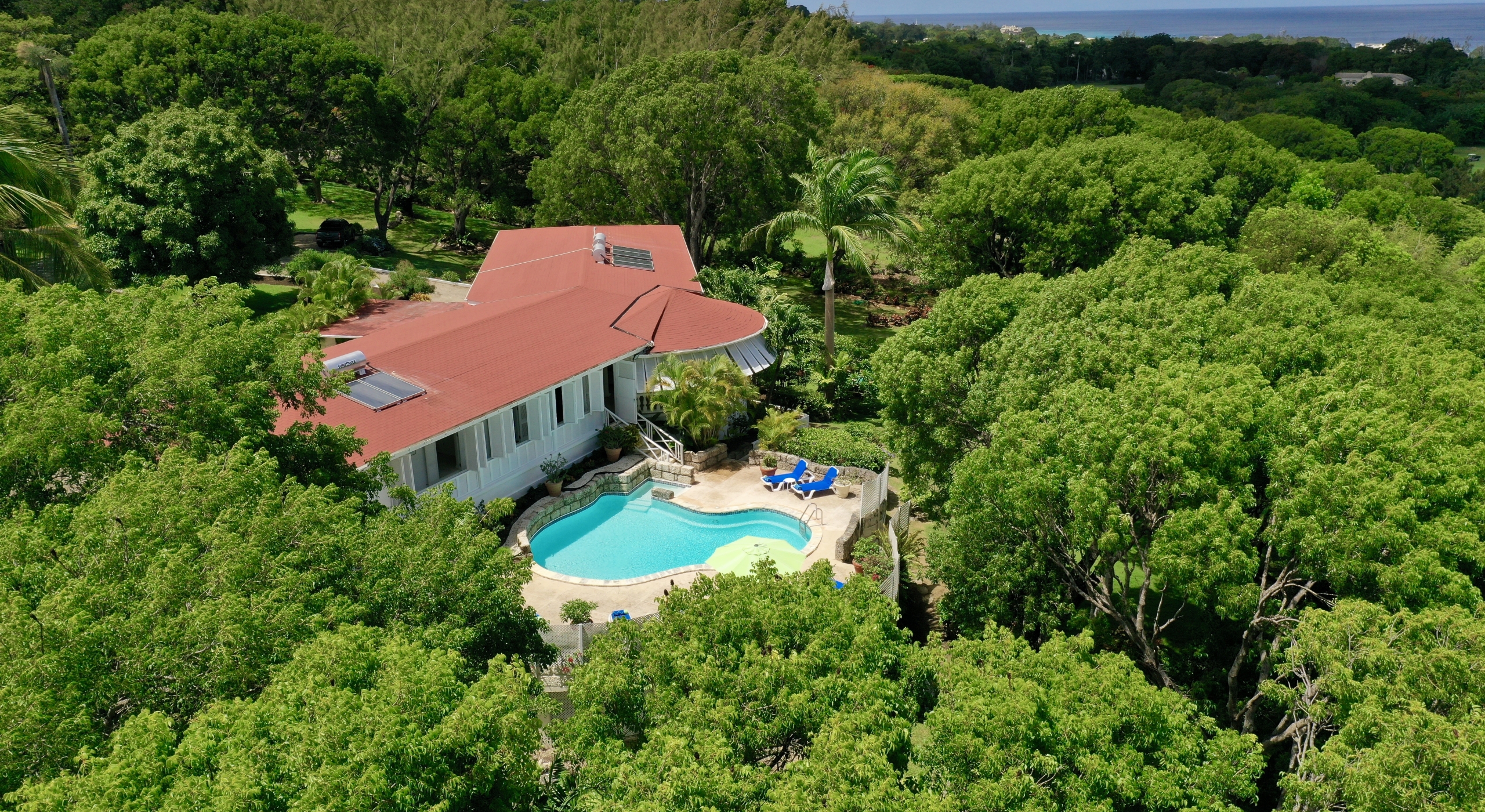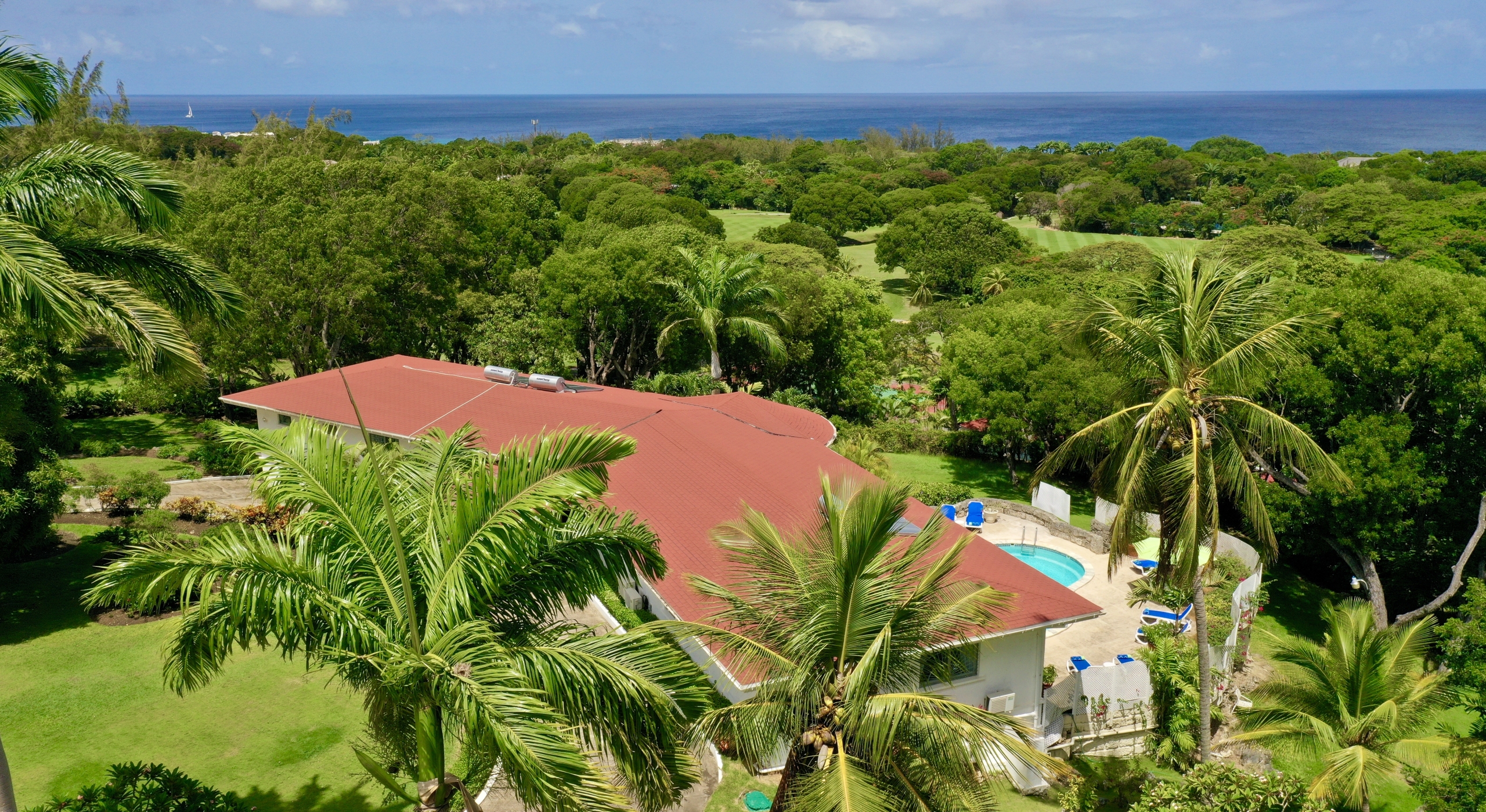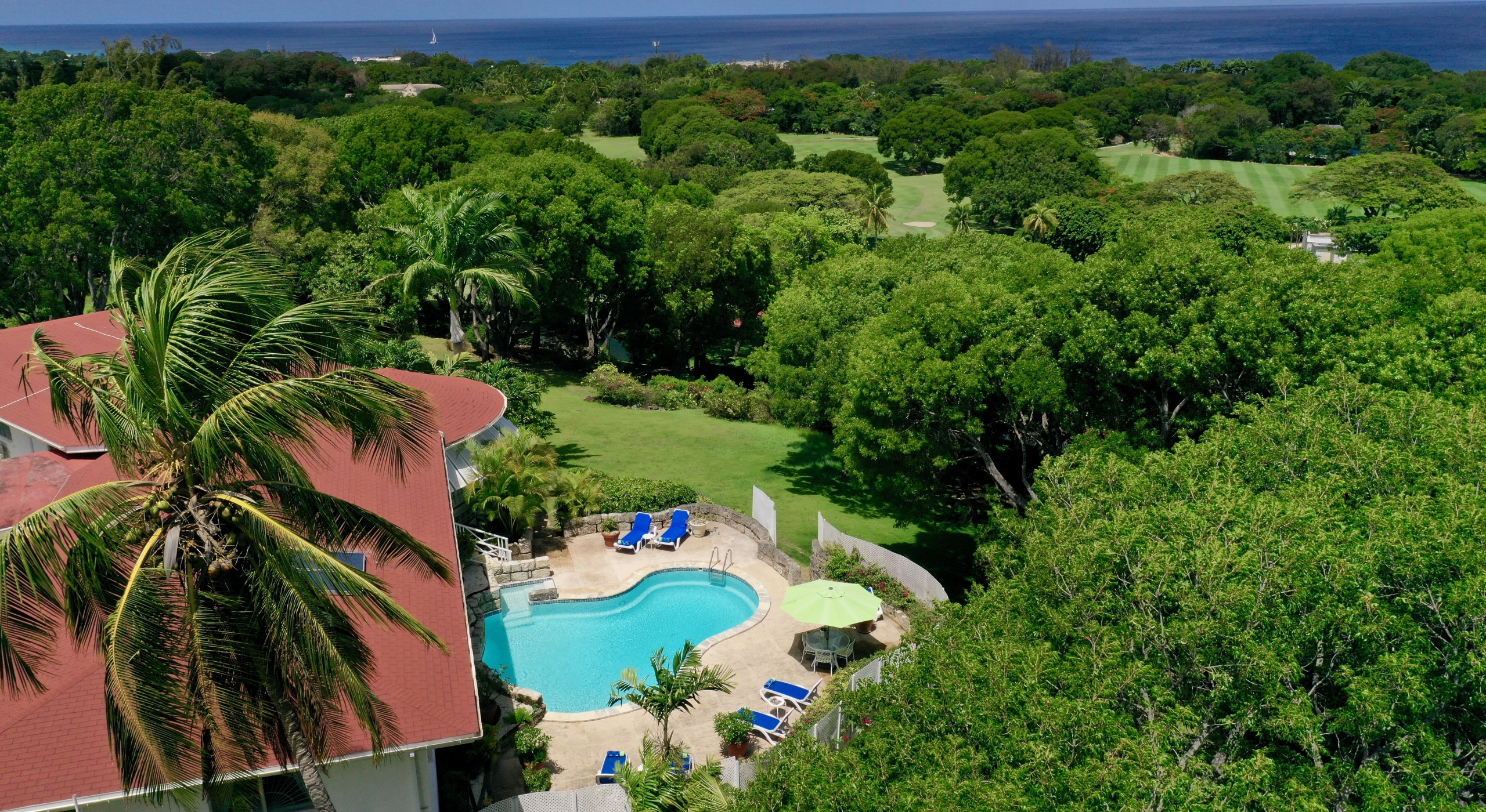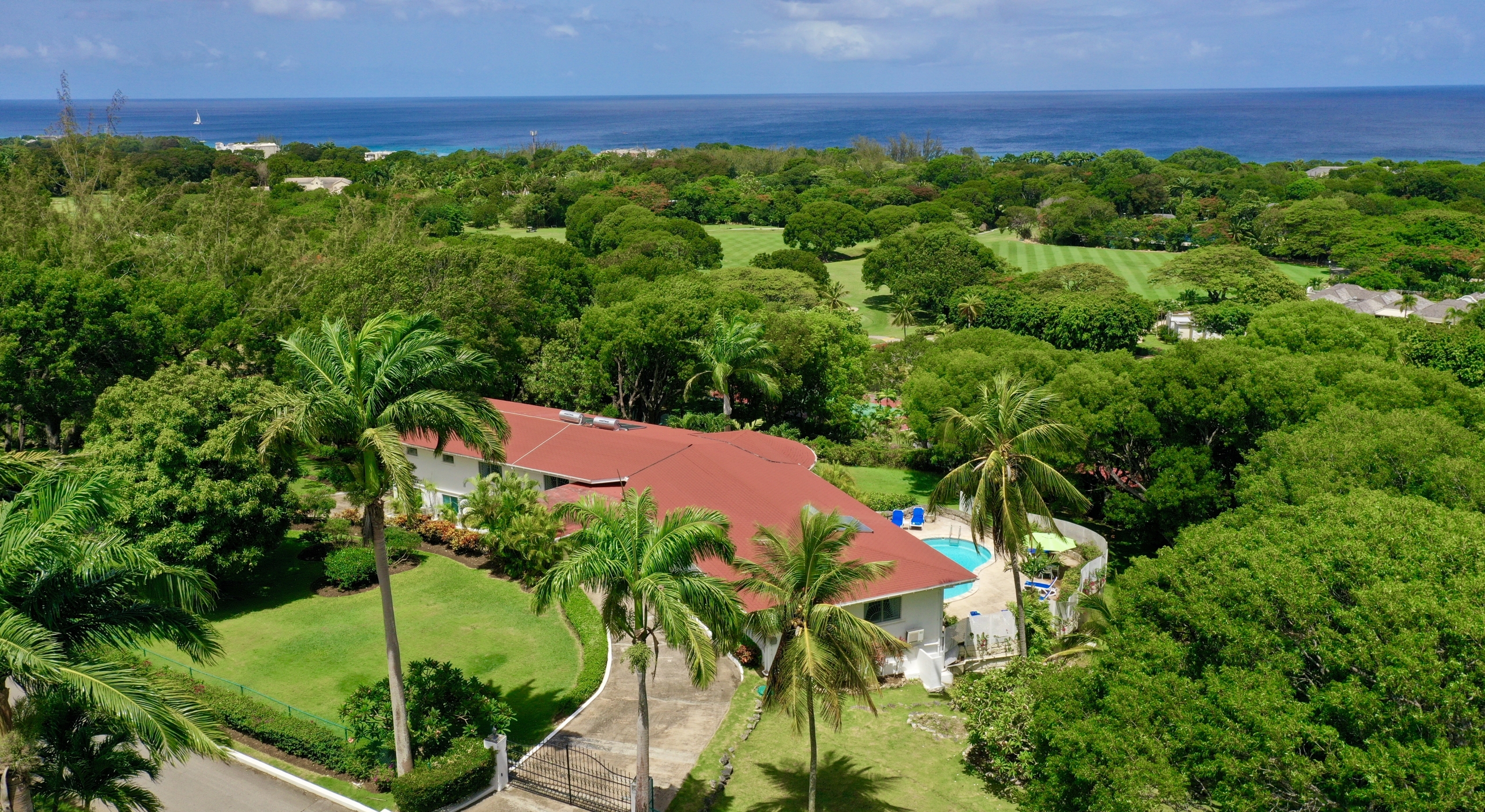 The main house and guest cottage encompass well over 6,000 square feet of covered living space and the villa is situated on one of the largest plots on the estate at over 2 ½ acres. The ridge front location offers sea views to the west amongst the majestic mahogany trees and to the south and east of the property is the famous Old Nine golf course with clubhouse, bar and tennis.