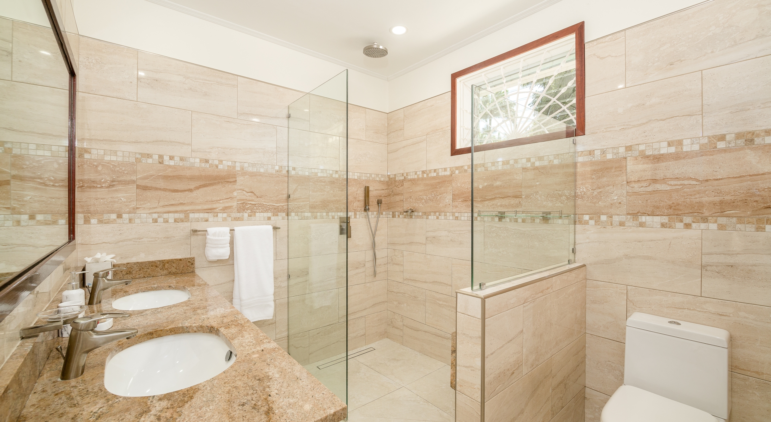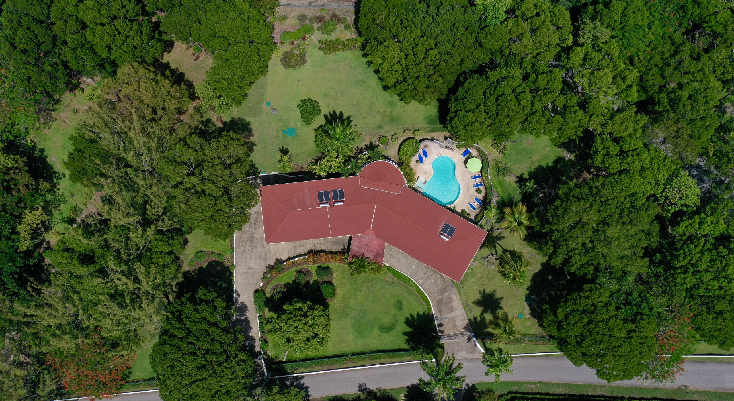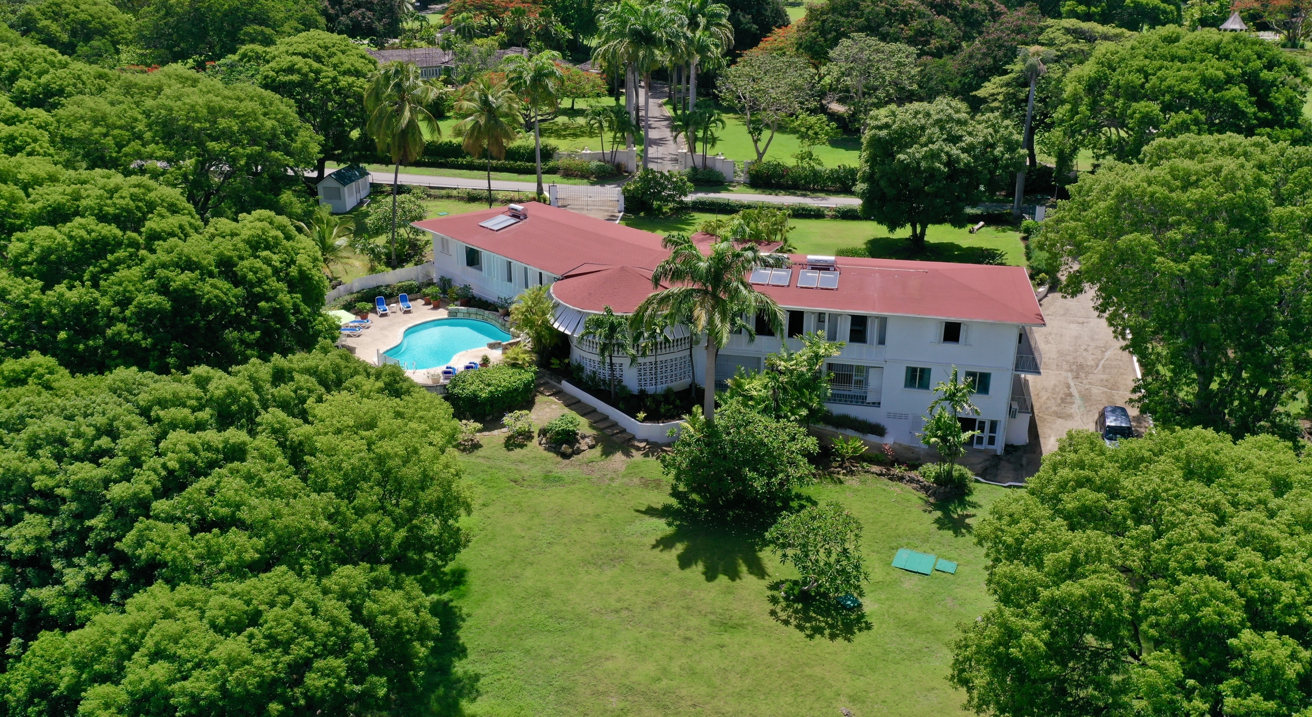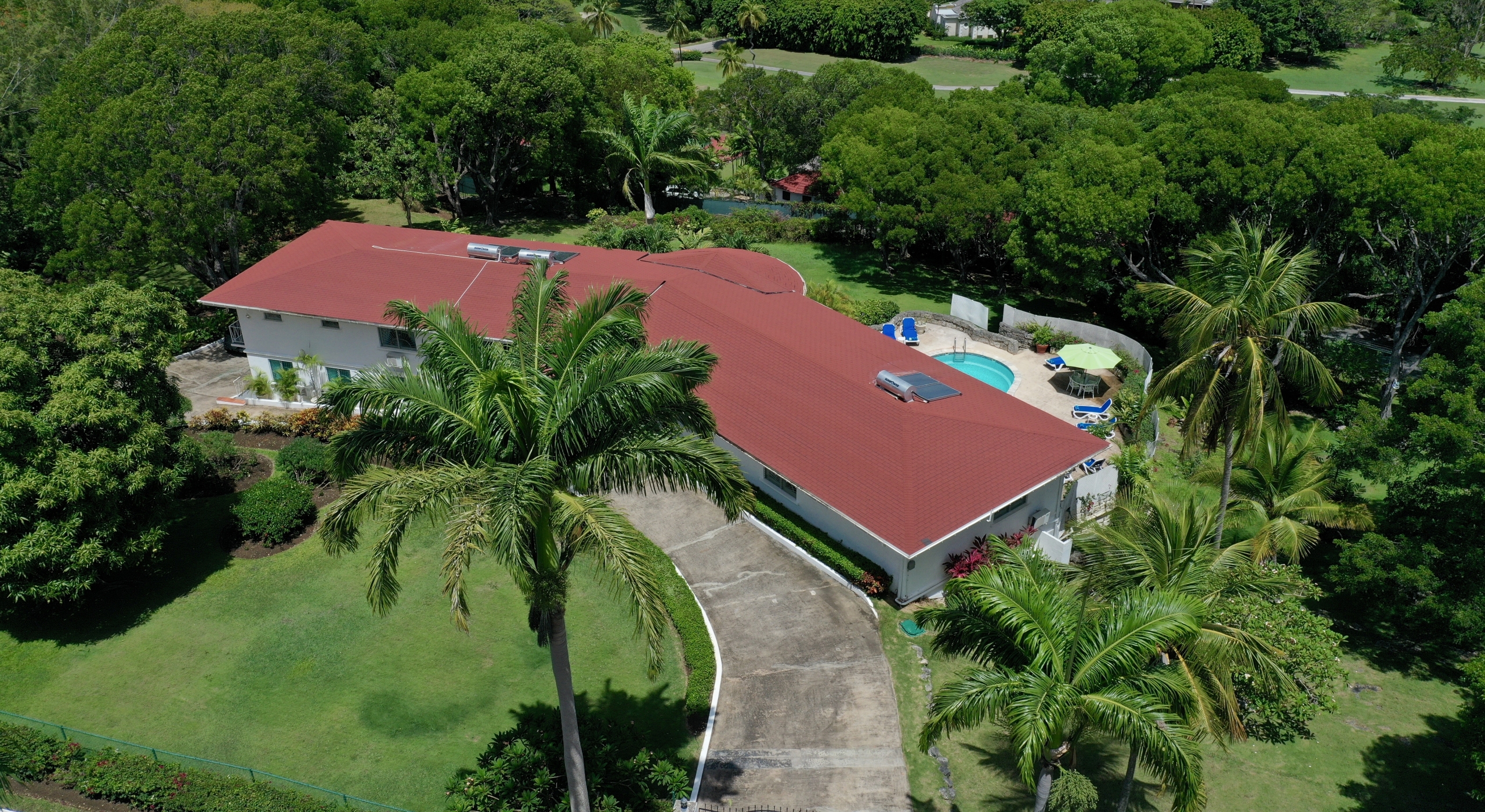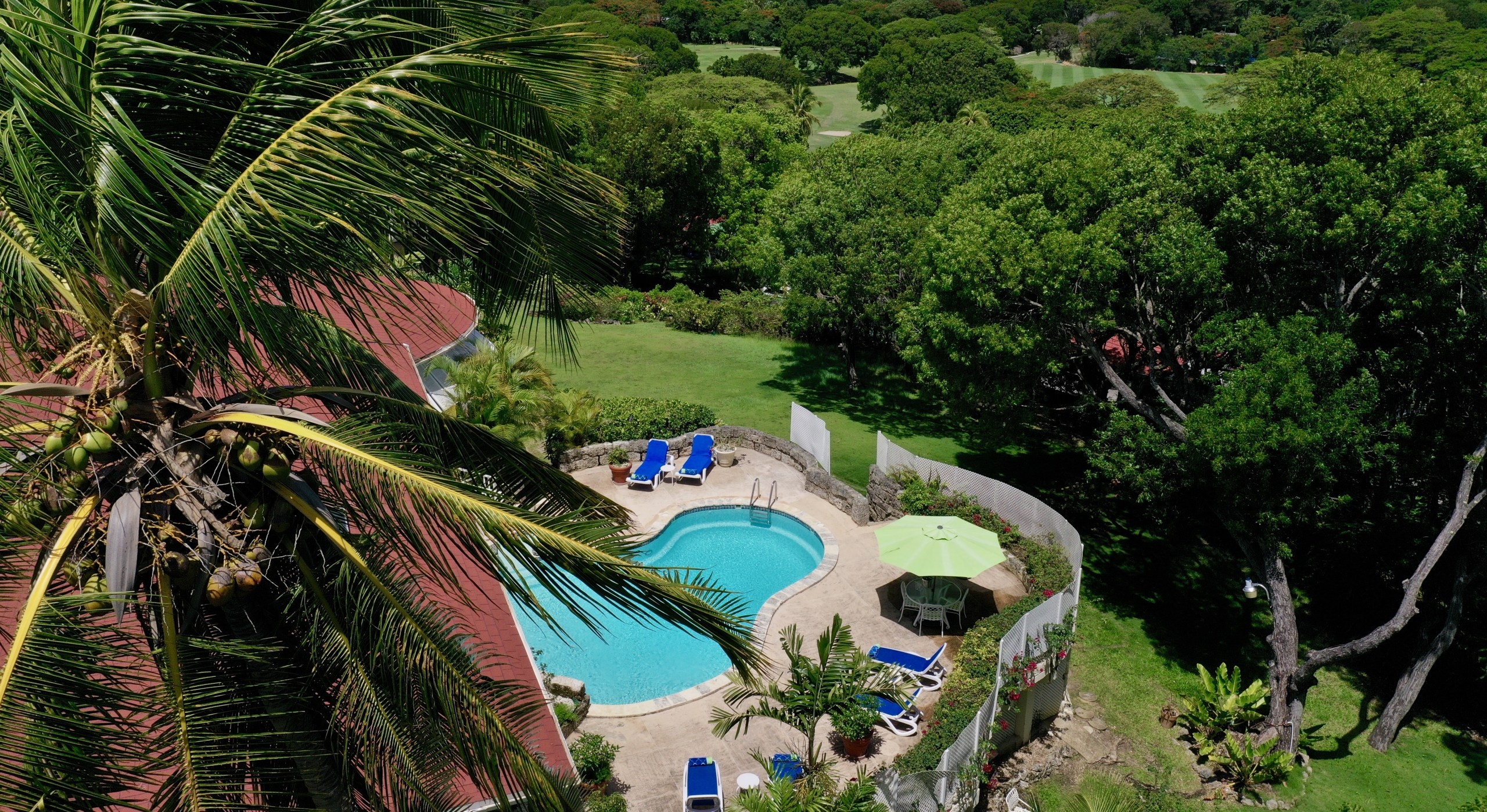 The main house and guest cottage encompass well over 6,000 square feet of covered living space and the villa is situated on one of the largest plots on the estate at over 2 ½ acres. The ridge front location offers sea views to the west amongst the majestic mahogany trees and to the south and east of the property is the famous Old Nine golf course with clubhouse, bar and tennis.