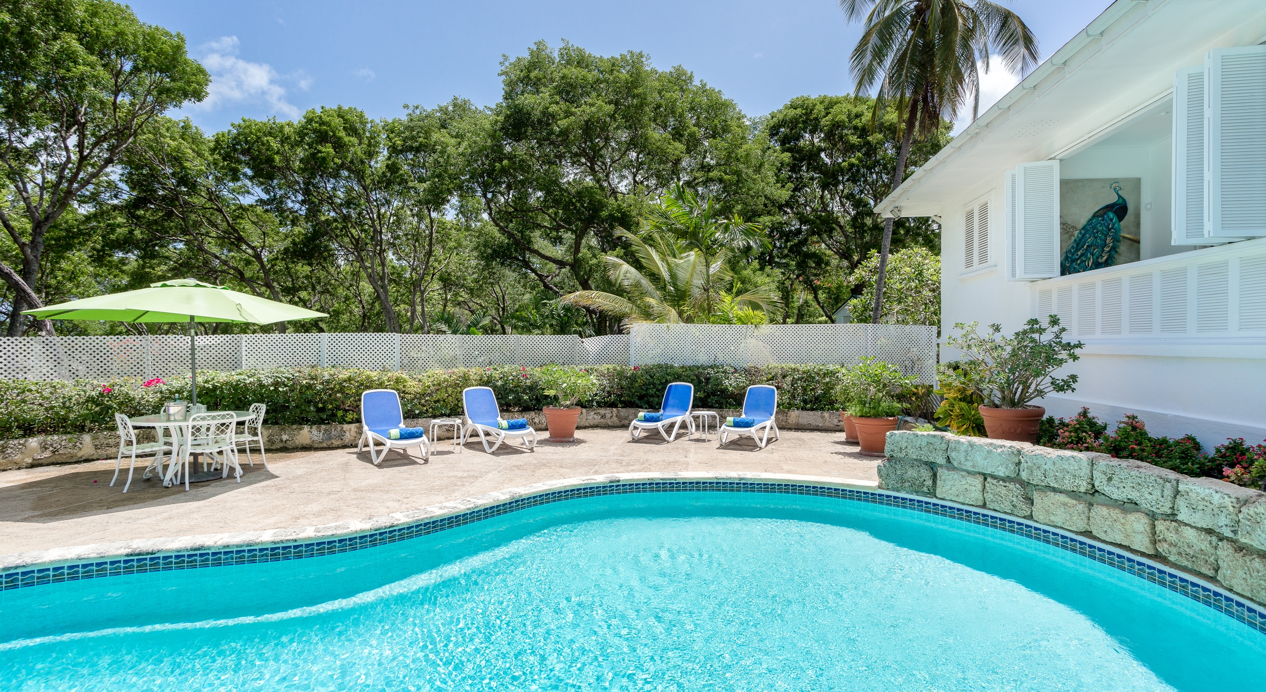 The majestic gardens, privacy, space and sea views offered at Halle Rose set it apart from many rental homes on the Sandy Lane Estate. Take an early morning stroll around the neighboring Old Nine golf course, catch a game of tennis or relax at the private members Sandy Lane Estate Beach Club which includes parking, restaurant, bar, bathrooms, internet / office services along with beach chairs and umbrellas.