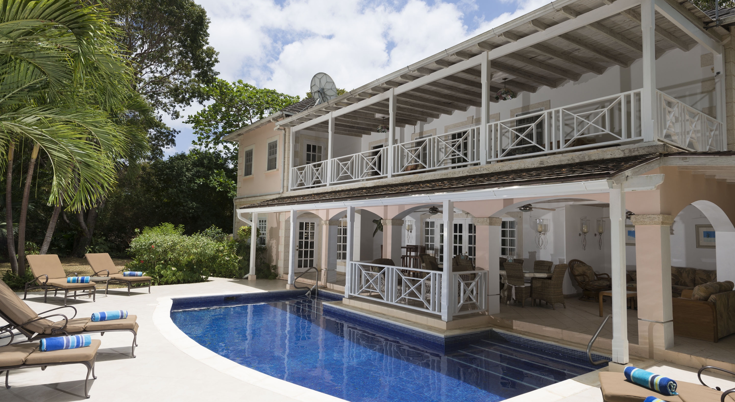 Sandalwood House is located on the prestigious Sandy Lane Estate in St. James on the West Coast of Barbados. This lovely villa sits on over an acre of landscaped tropical gardens with more than a dozen different types of palm trees, together with many other interesting and unique tropical flora and fauna.