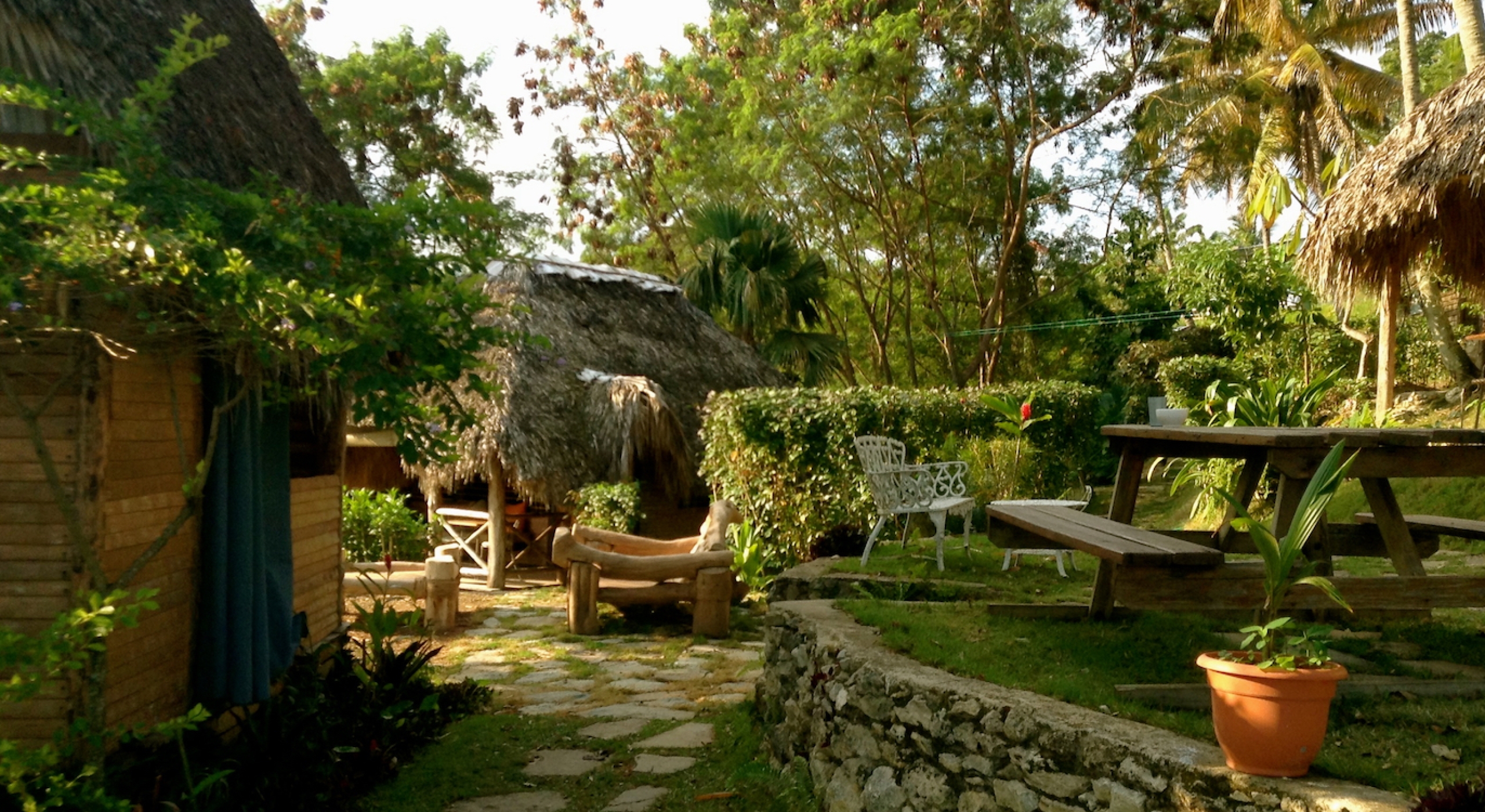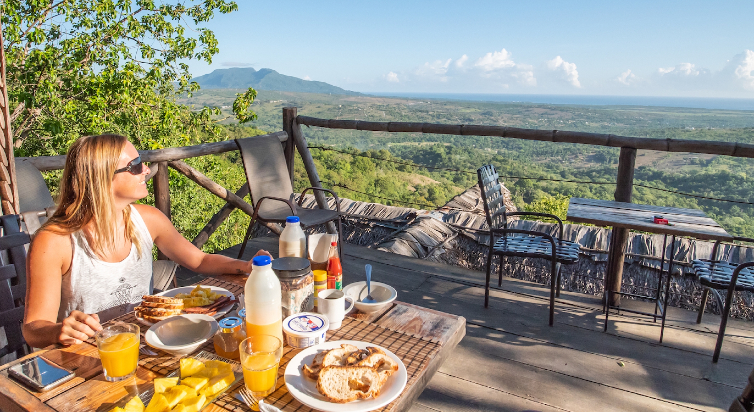 Tim lives with his Dominican wife, Beatriz, and their four children at their 12-acre, mountaintop eco-village that looks out over the coast featuring what he calls “Robinson Crusoe-style” thatch-roof cabanas and panoramic vistas. Thinking over the life he has built for himself, he says, “Living in the islands doesn’t provide typical financial security, such as a pension to look forward to. And I haven’t afforded a BMW… but, my life pretty much belongs to me.” And his future plans? “This eco-village is turning out to be as funky and fun as Café Cito—but with a spa and cabanas and a knock-out view. Now that it’s up and running I might take off a few hats.”