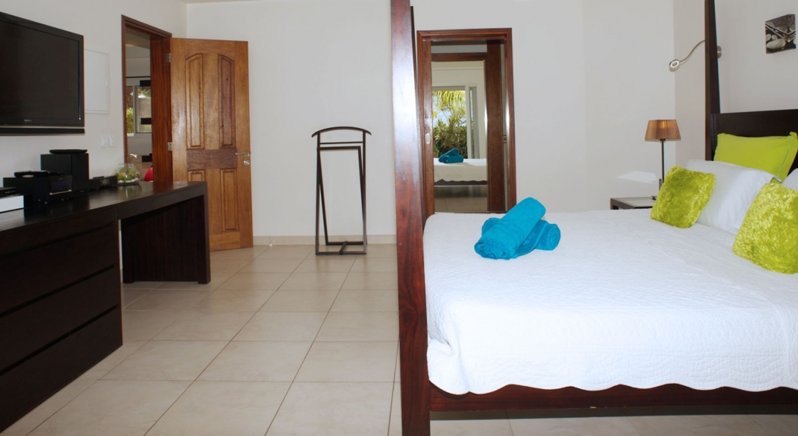 The third bedroom is fully stocked with Queen sized bed, air conditioning, mosquito net, private safe, television, satellite, DVD player, Apple TV, bathroom and shower.