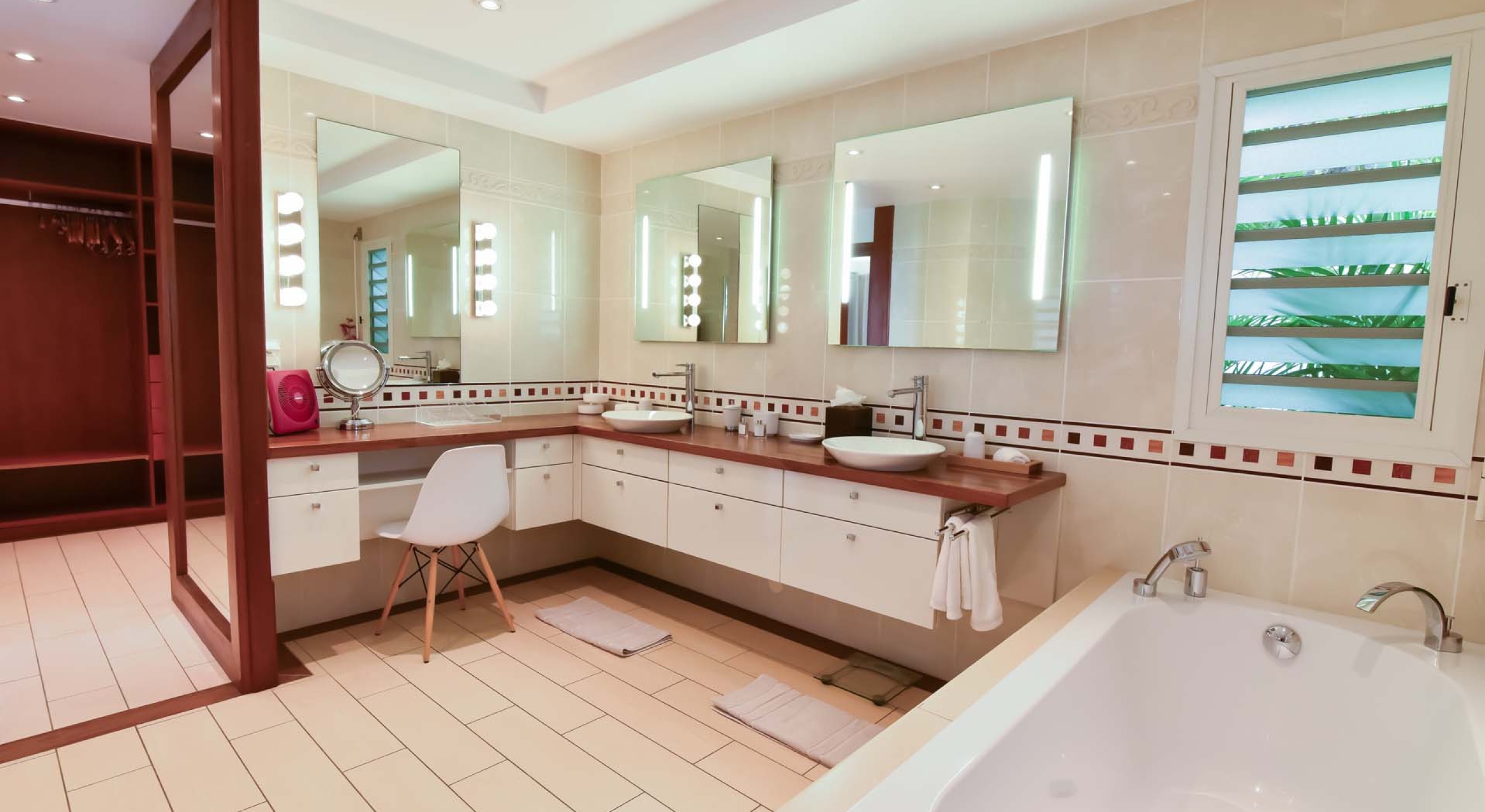 Equipment: air conditioning, fan, safe, TV, US satellite, DVD, bathroom with bathtub and shower