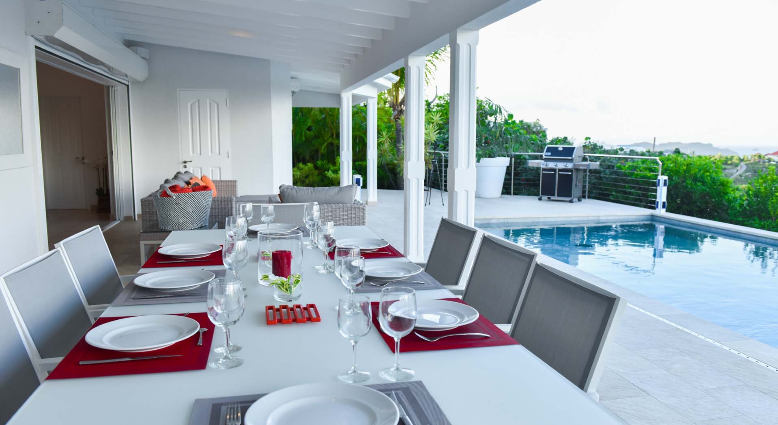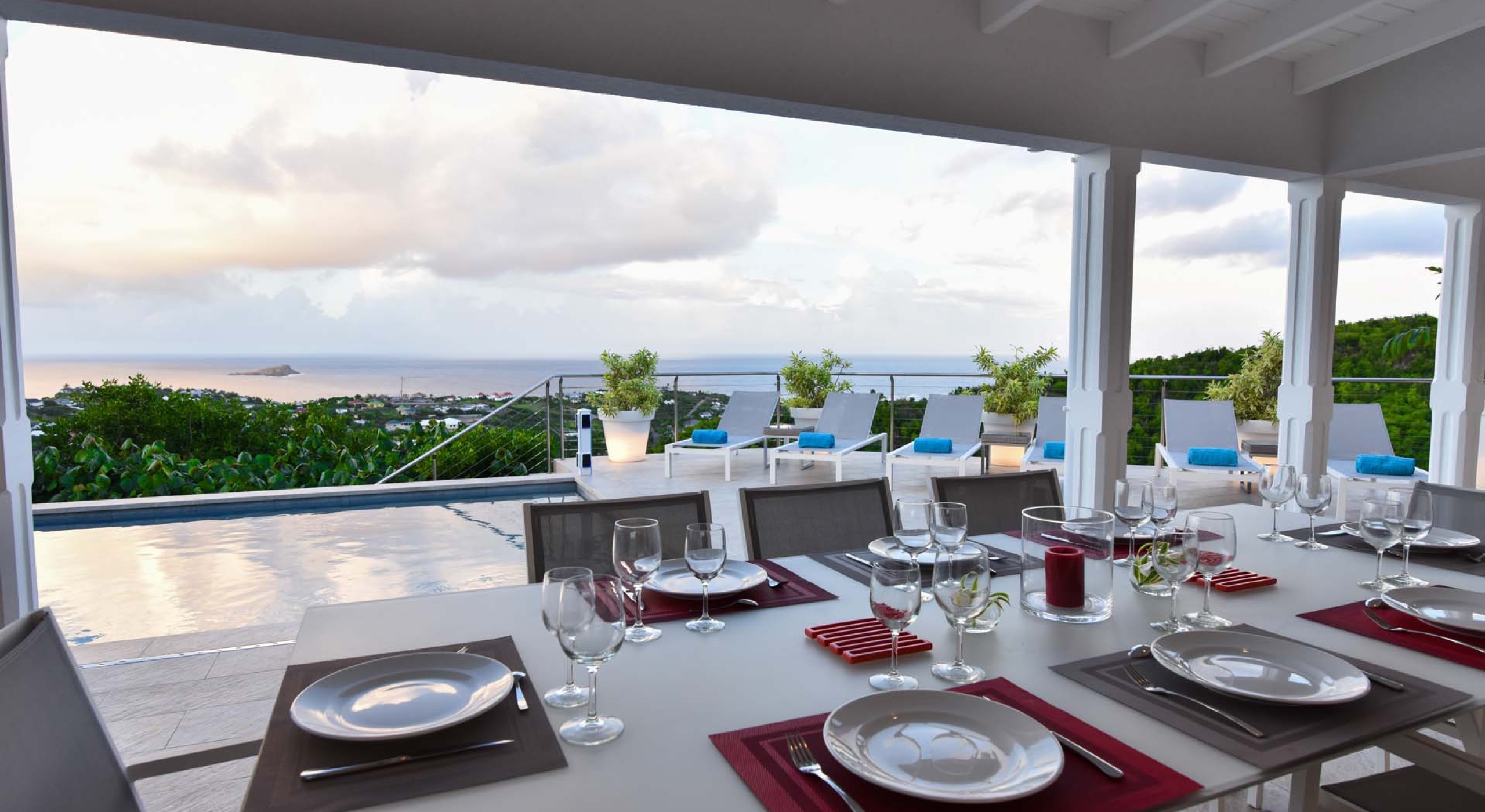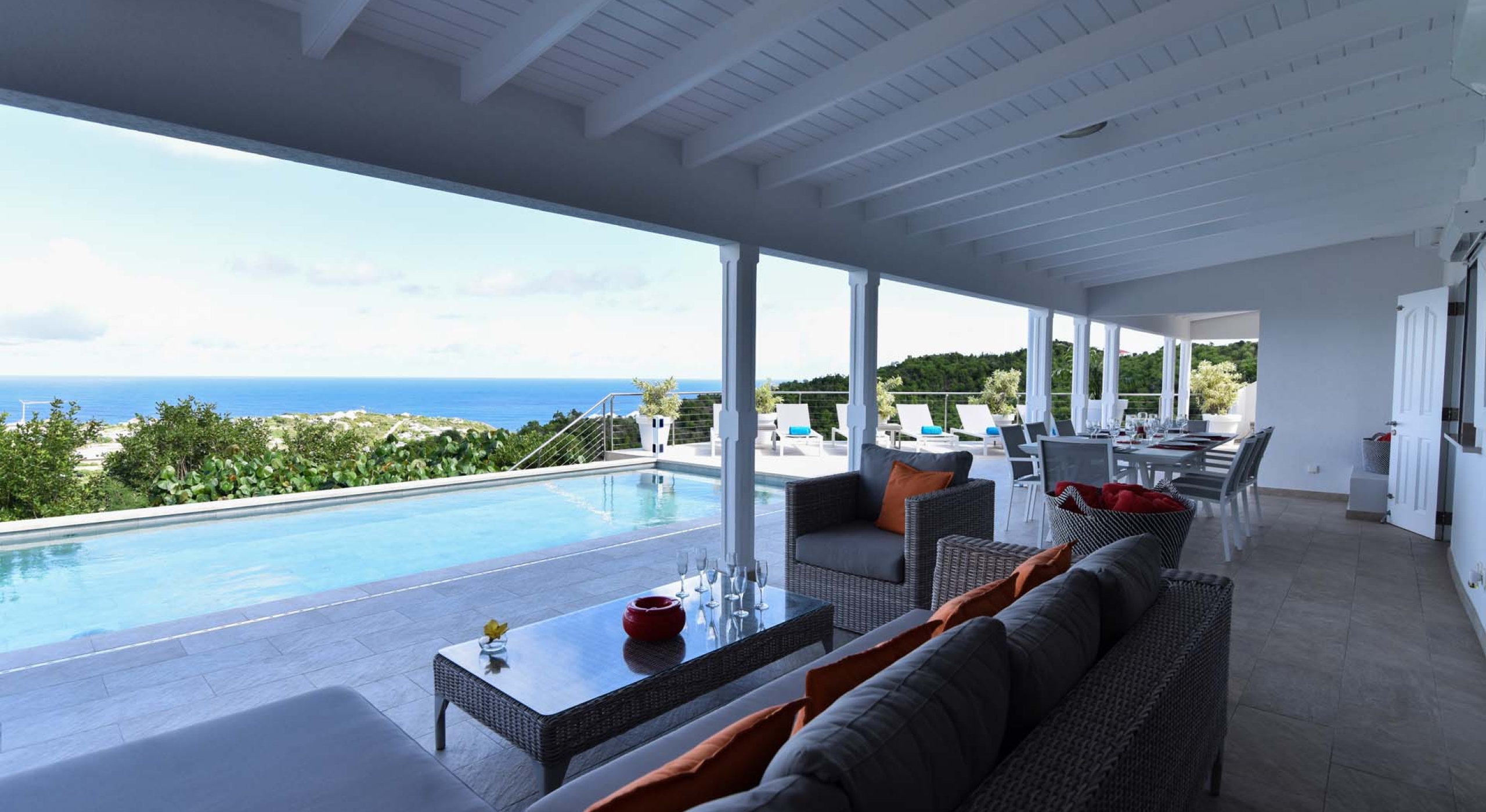 Villa Au Coeur du Rocher is one of our newest luxury private villa rental properties, and as such, boasts some of the most modern and elegant features found in a smaller property. Located on the heights of Marigot in St. Barts, Villa Au Coeur du Rocher commands a wonderful view of the Caribbean Sea and is in an extremely private location. The terrace view alone is enough to make the trip worthwhile, combining the senses in a wondrous embodiment of paradise. All this, coupled with the housekeeping service and maintenance staff, spacious living area and light colors make Villa Au Coeur du Rocher an ideal luxury villa rental for a week of exceptional experiences shared between friends.
