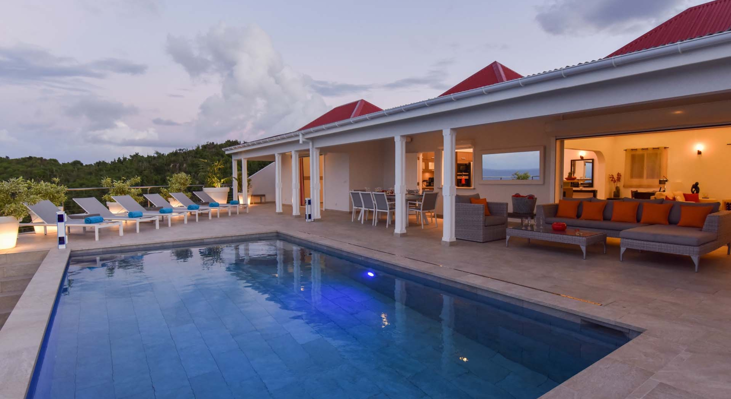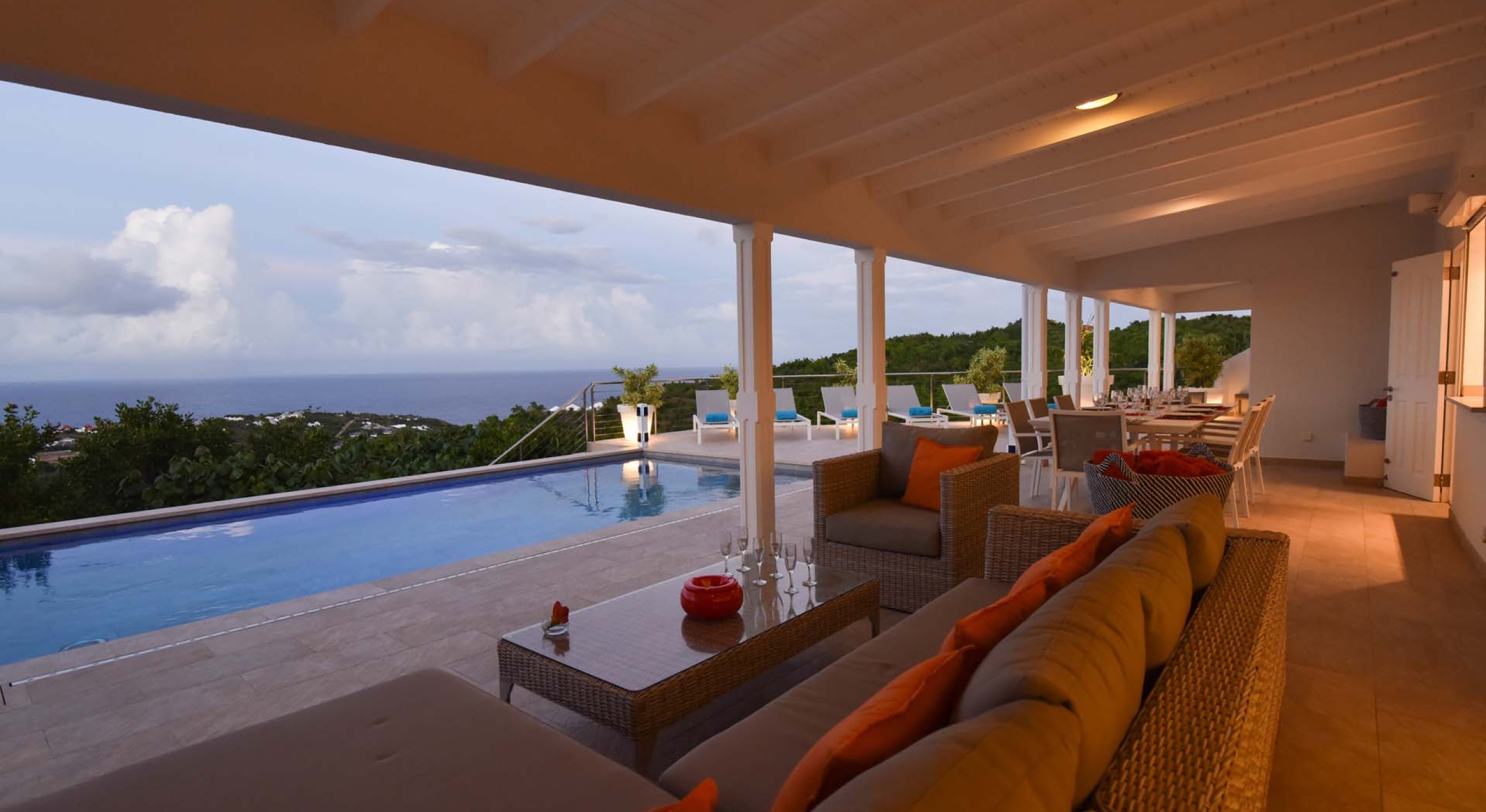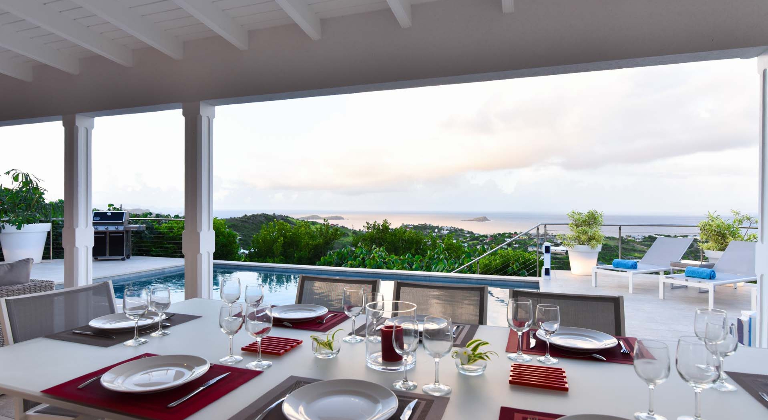Villa Au Coeur du Rocher is one of our newest luxury private villa rental properties, and as such, boasts some of the most modern and elegant features found in a smaller property. Located on the heights of Marigot in St. Barts, Villa Au Coeur du Rocher commands a wonderful view of the Caribbean Sea and is in an extremely private location. The terrace view alone is enough to make the trip worthwhile, combining the senses in a wondrous embodiment of paradise. All this, coupled with the housekeeping service and maintenance staff, spacious living area and light colors make Villa Au Coeur du Rocher an ideal luxury villa rental for a week of exceptional experiences shared between friends.