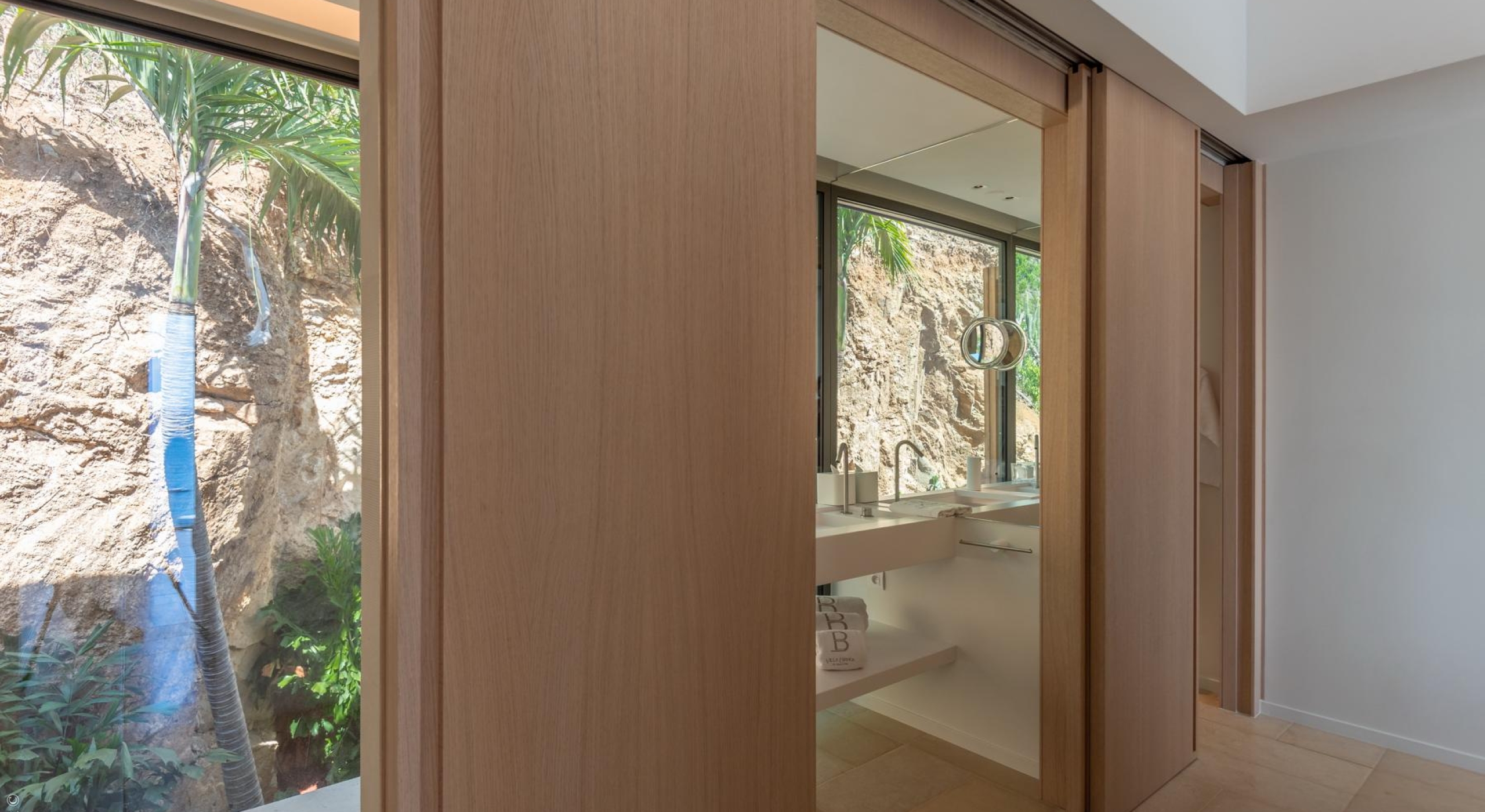 It is a contemporary villa, with magnificent wooden architecture. It offers four beautiful bedrooms, all carefully decorated in a sober and elegant style. Two of them are accessible by the kitchen side, with stairs, the two others, by the living side, one is downstairs.