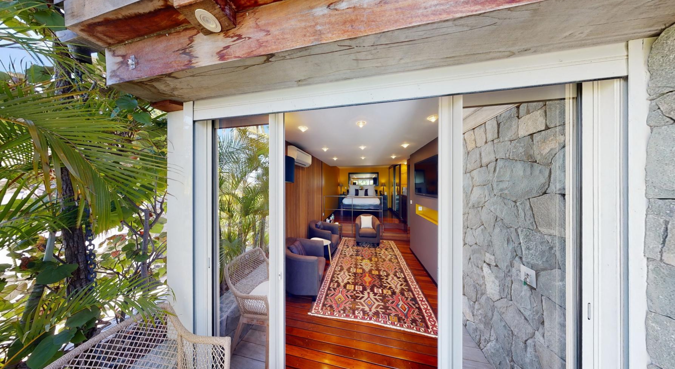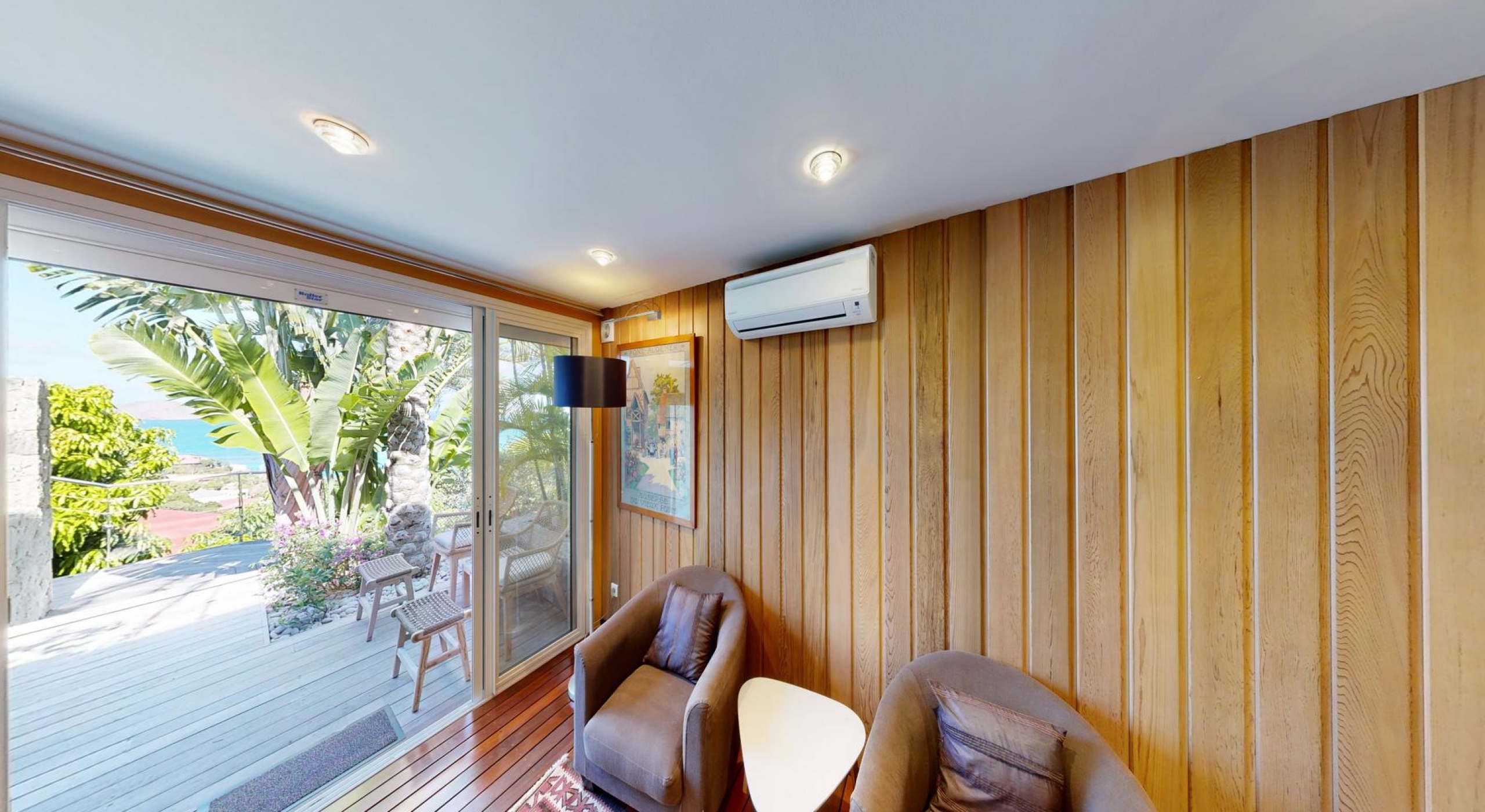 A few steps further down is the last bedroom: a studio with a living area and kitchenette. You will also be able to enjoy a moment in the hot tub away from prying eyes.