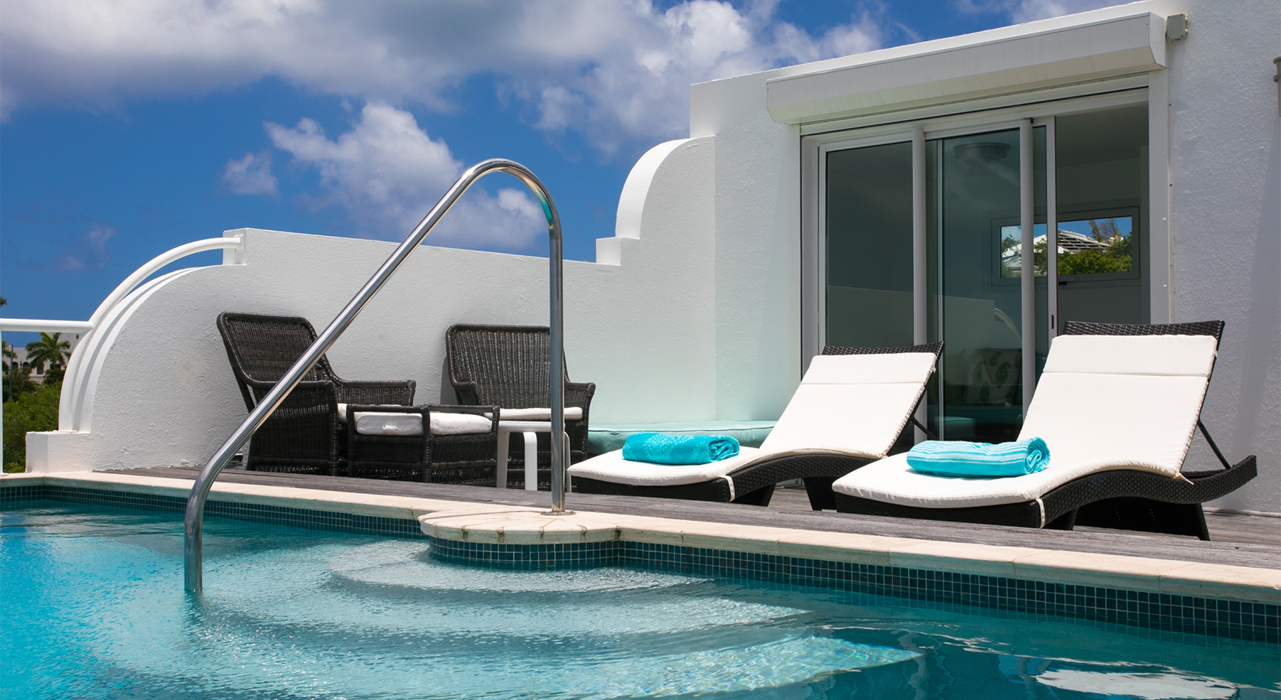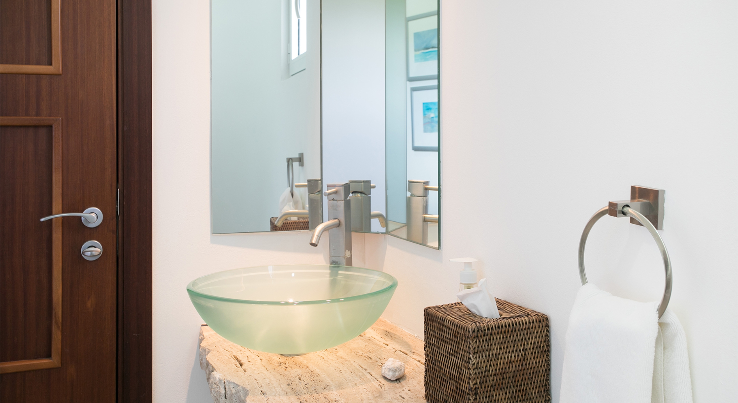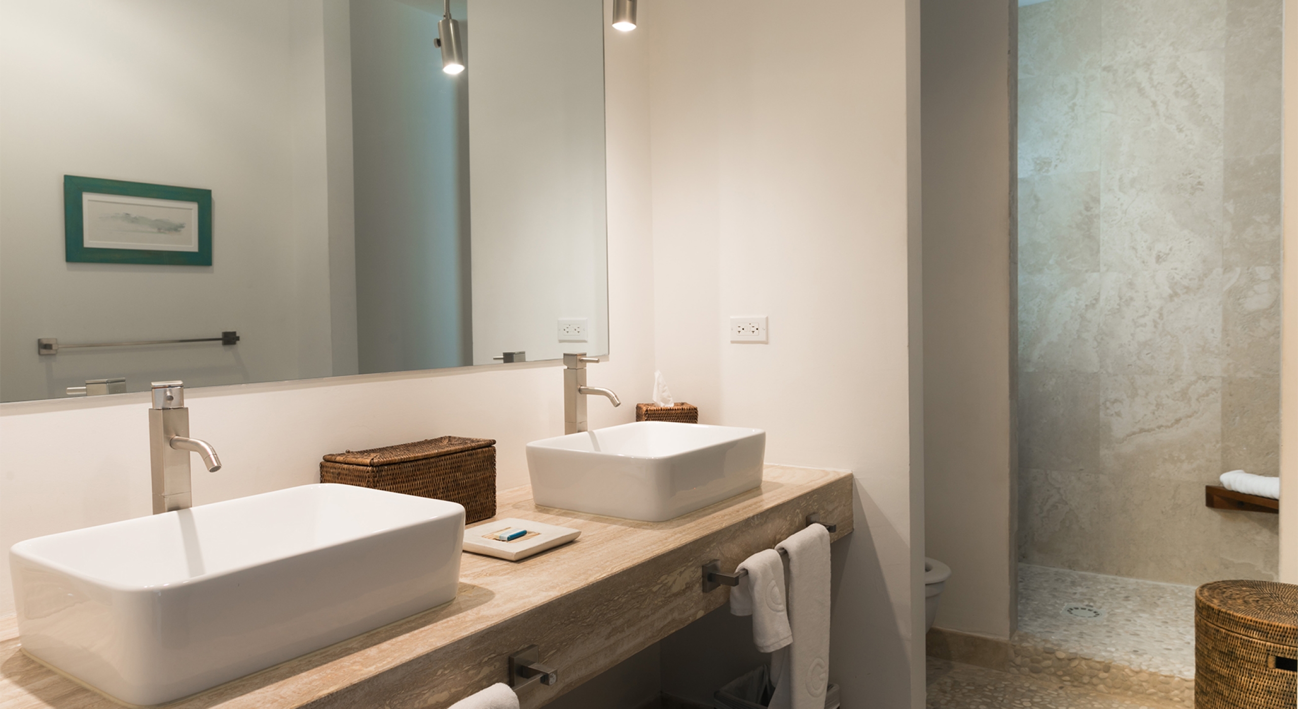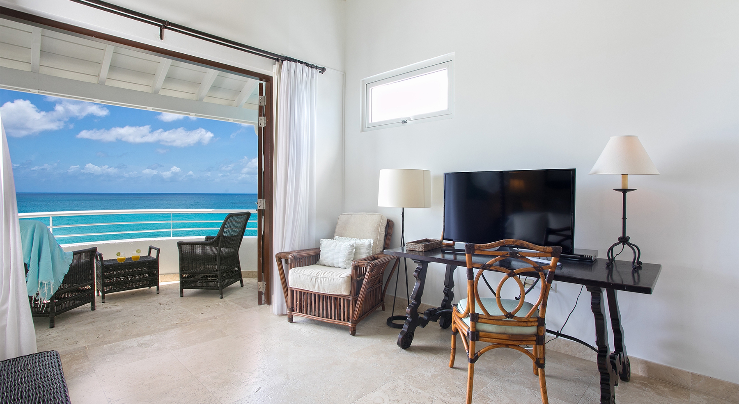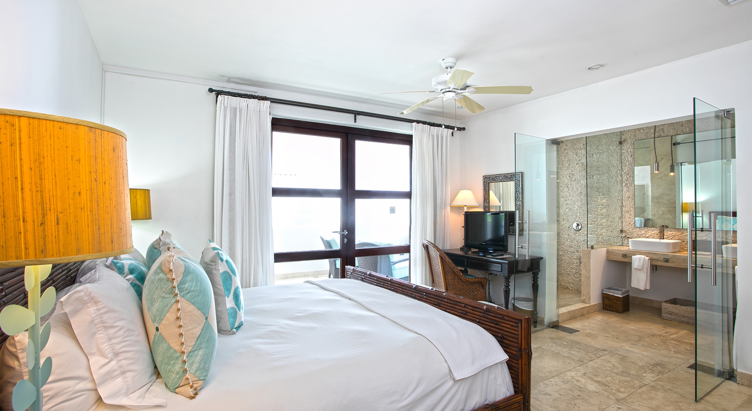 On the top floor is the rooftop plunge pool and sunny deck area framed by the sapphire blue of the Caribbean and the picturesque island of Saba in the distance. Adjacent is the king-size master bedroom with its sea-view balcony and ensuite bathroom with large open shower and double vanities.