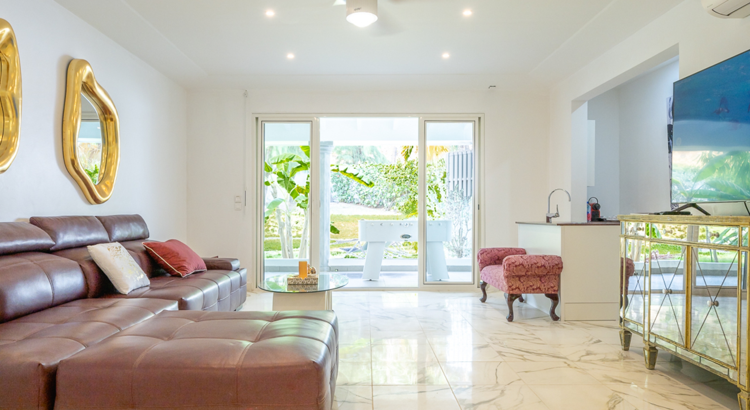 We’re confident you’ll also enjoy the villa’s indoor and outdoor speaker system and the LEDs