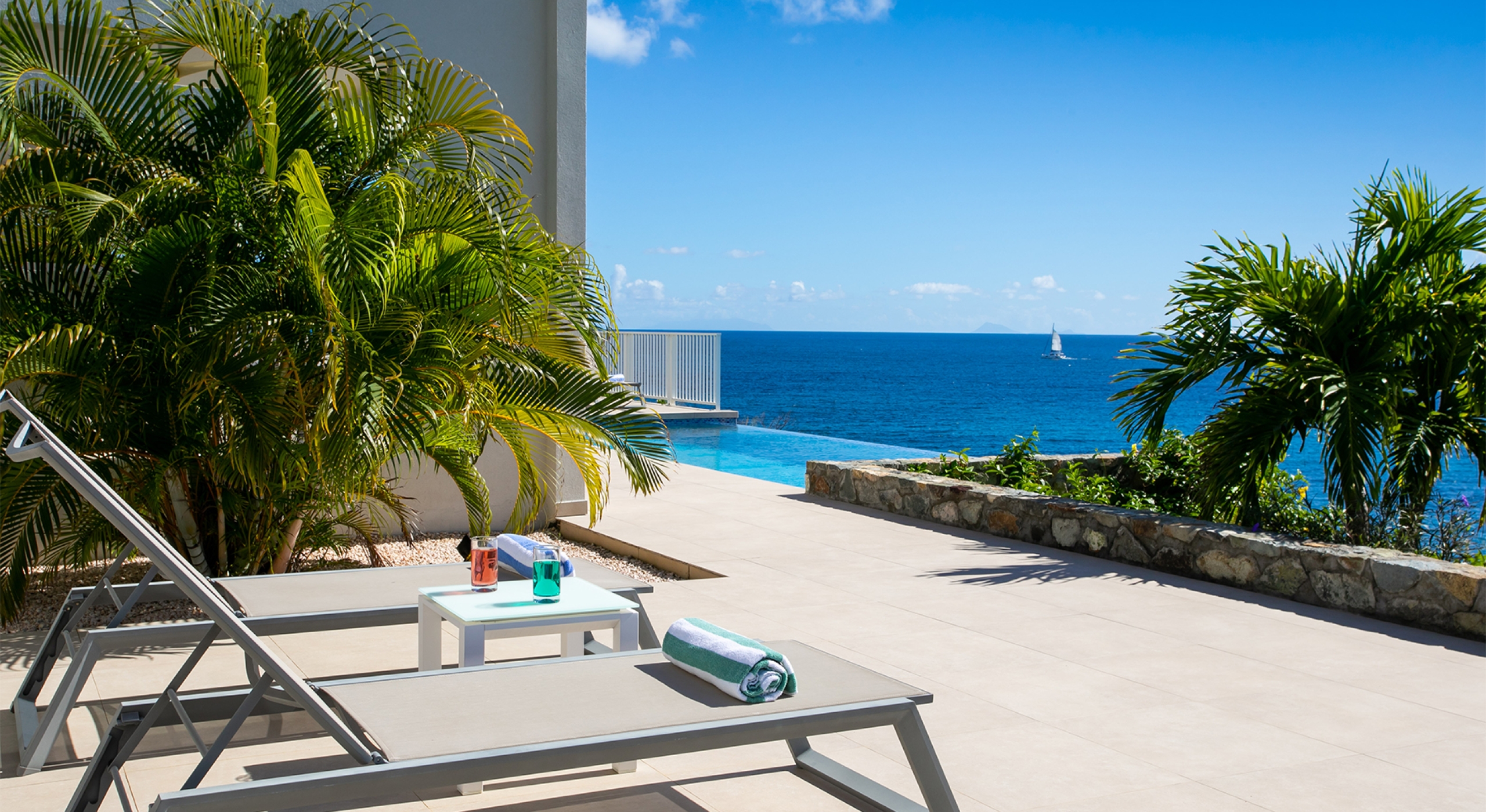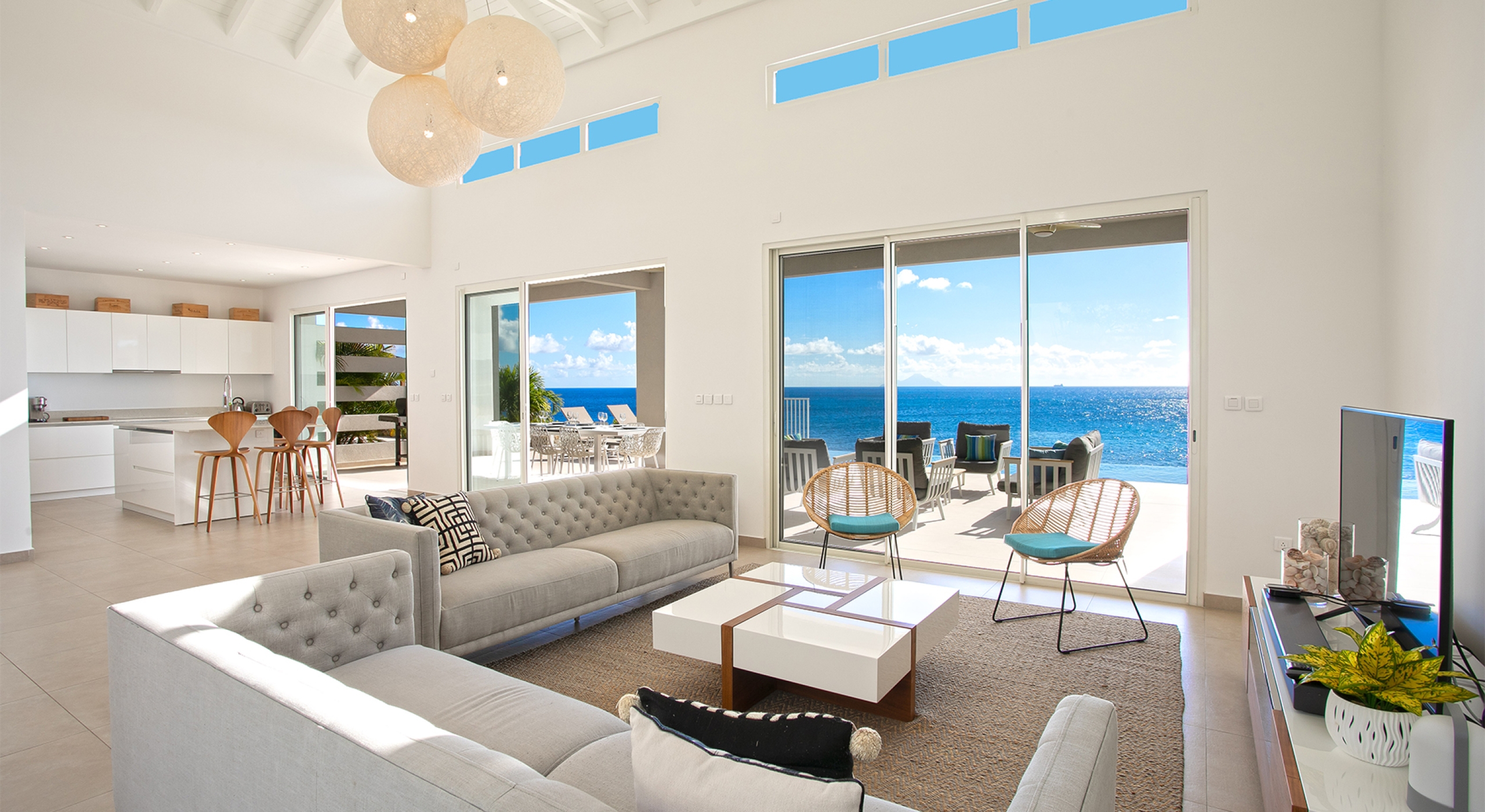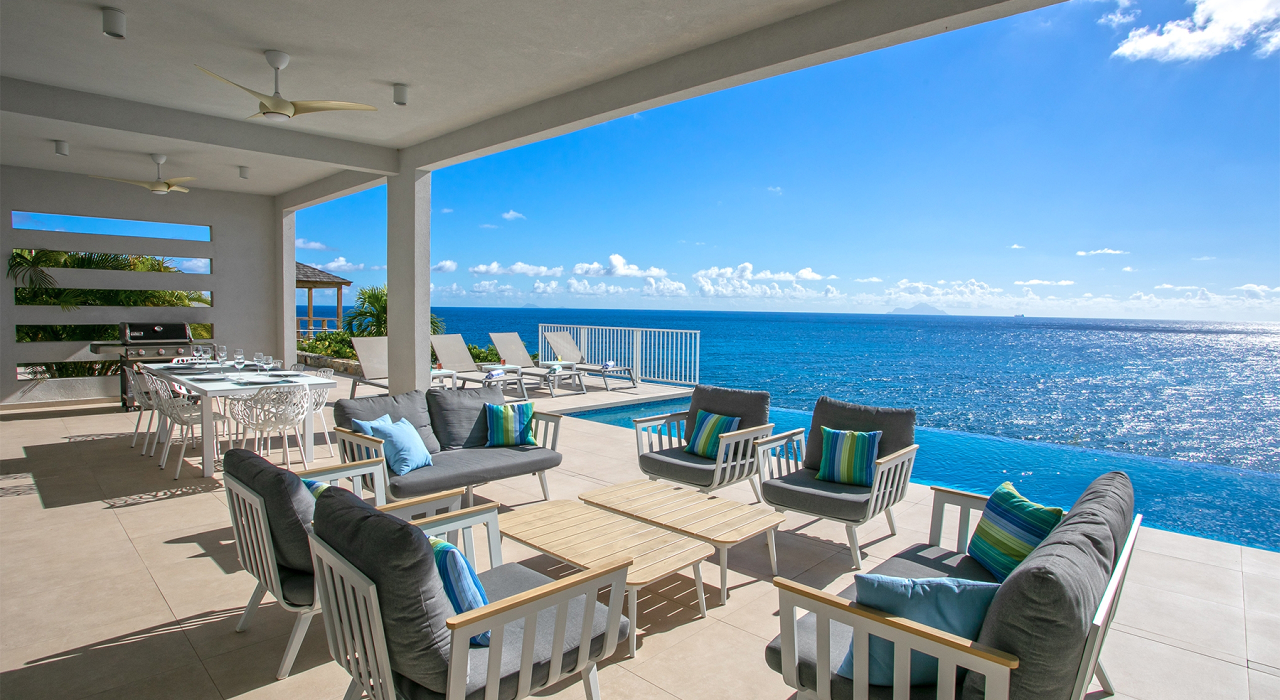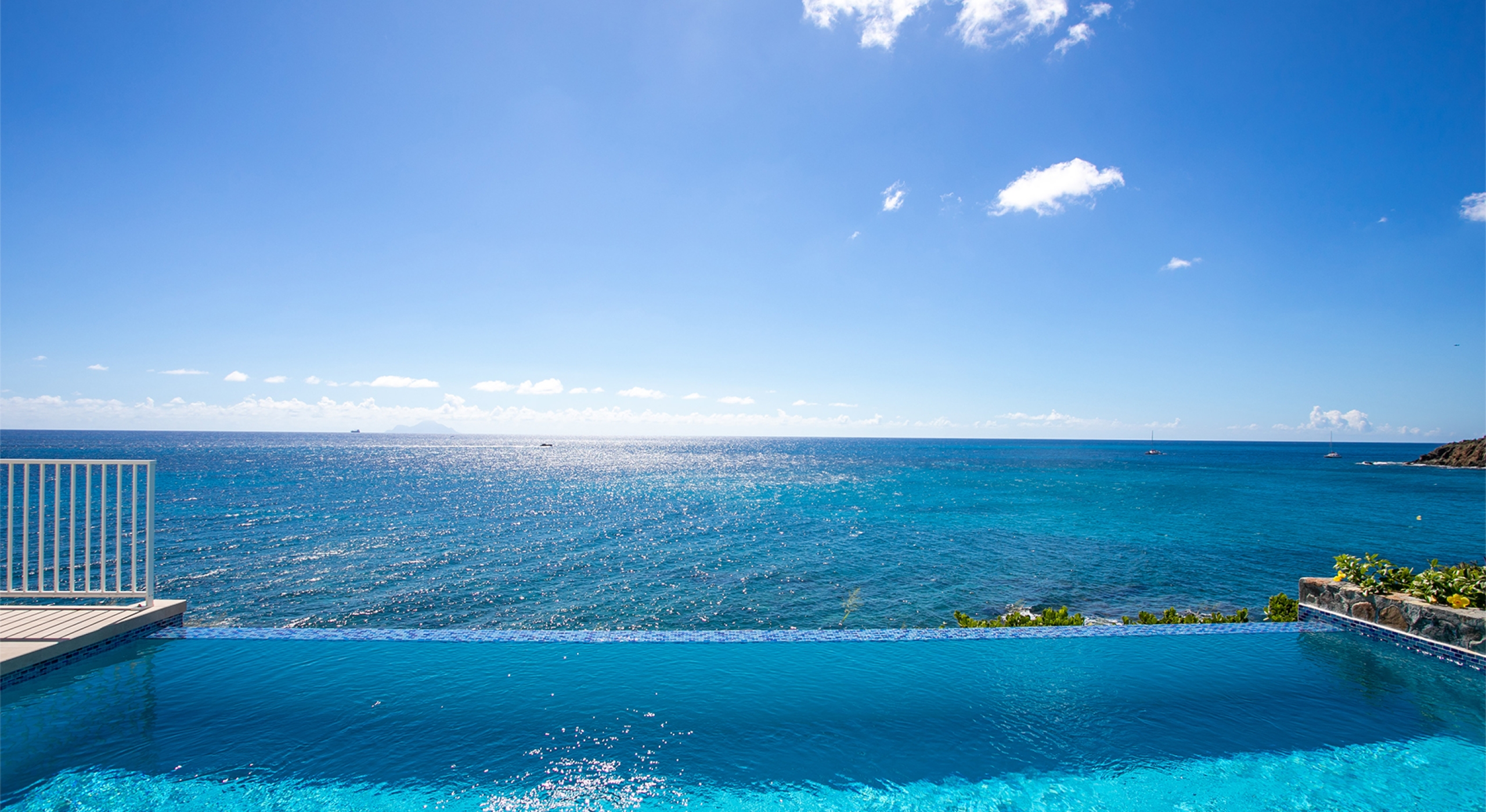 From its privileged cliffside location and south-westerly orientation, Villa Aqua commands a spectacular view over the Caribbean and the neighboring island of Saba on the distant horizon.