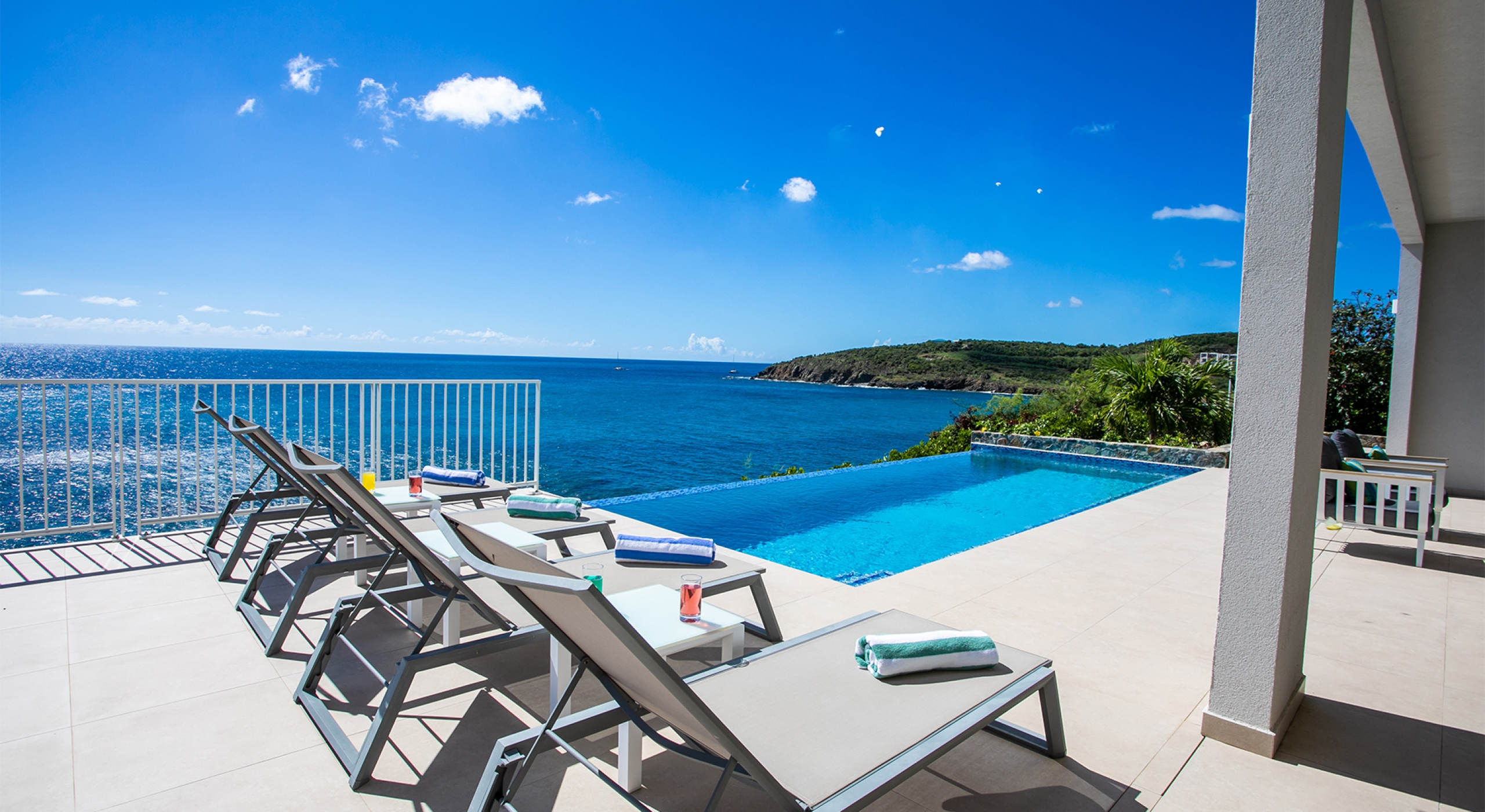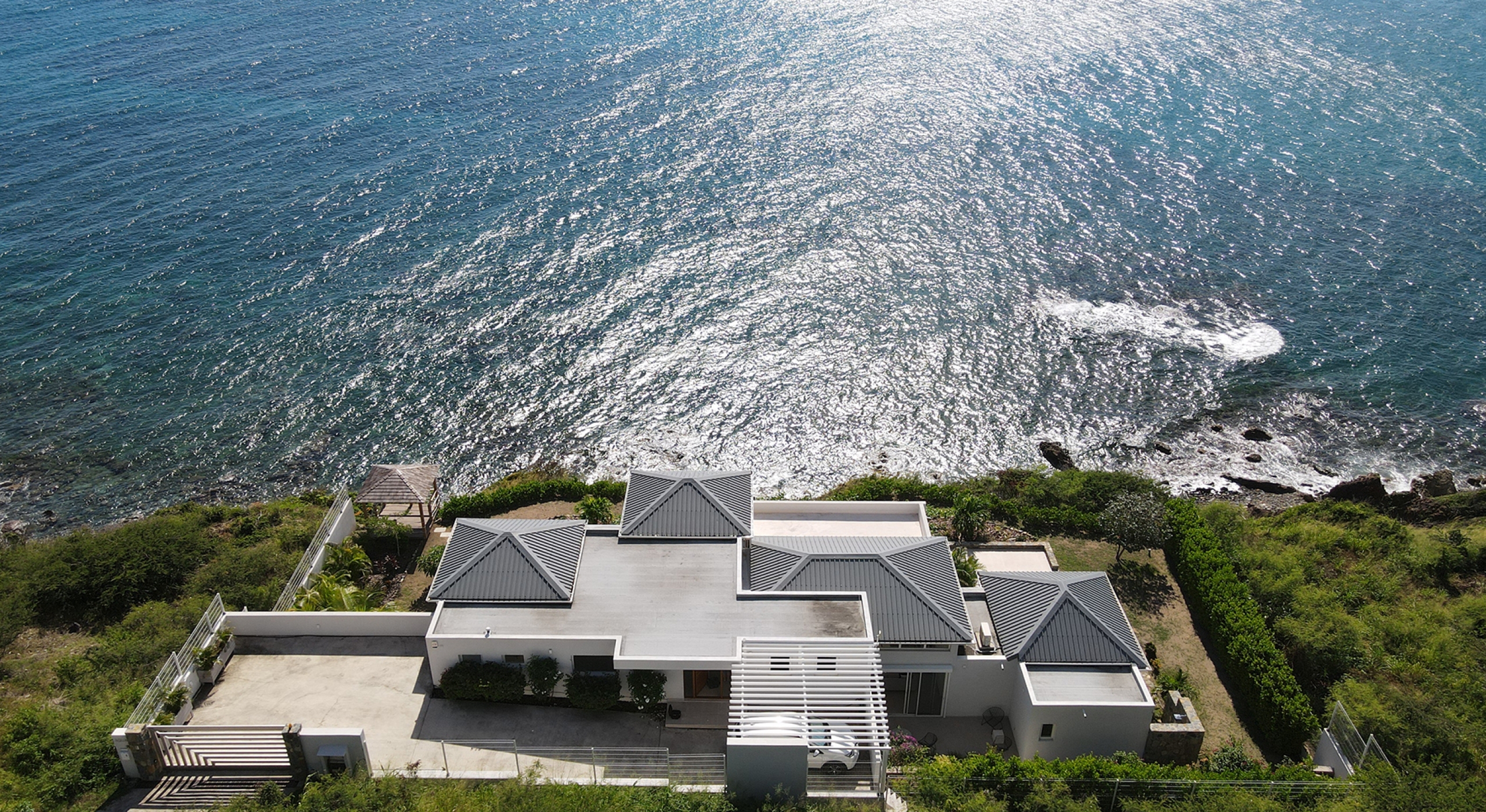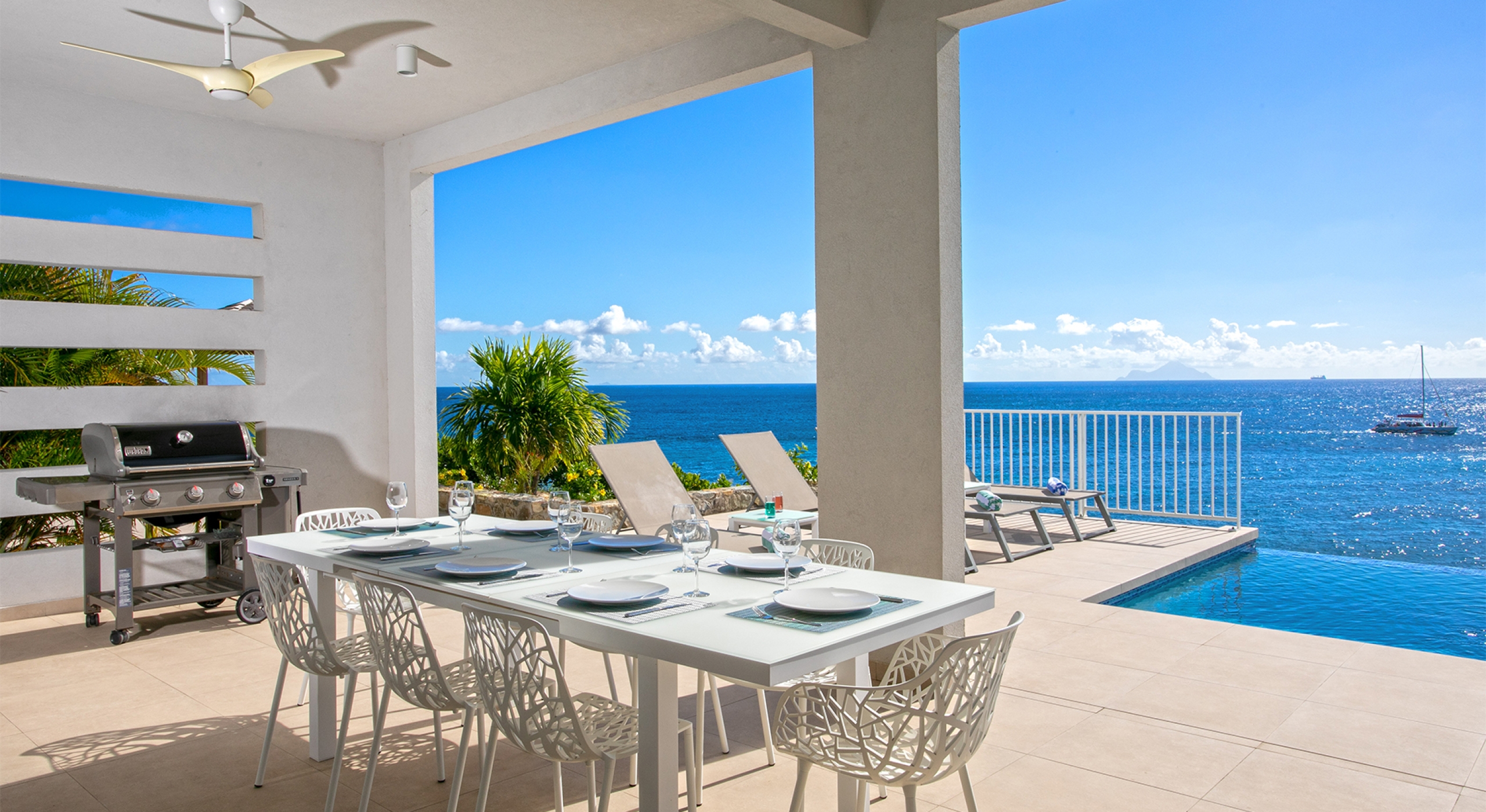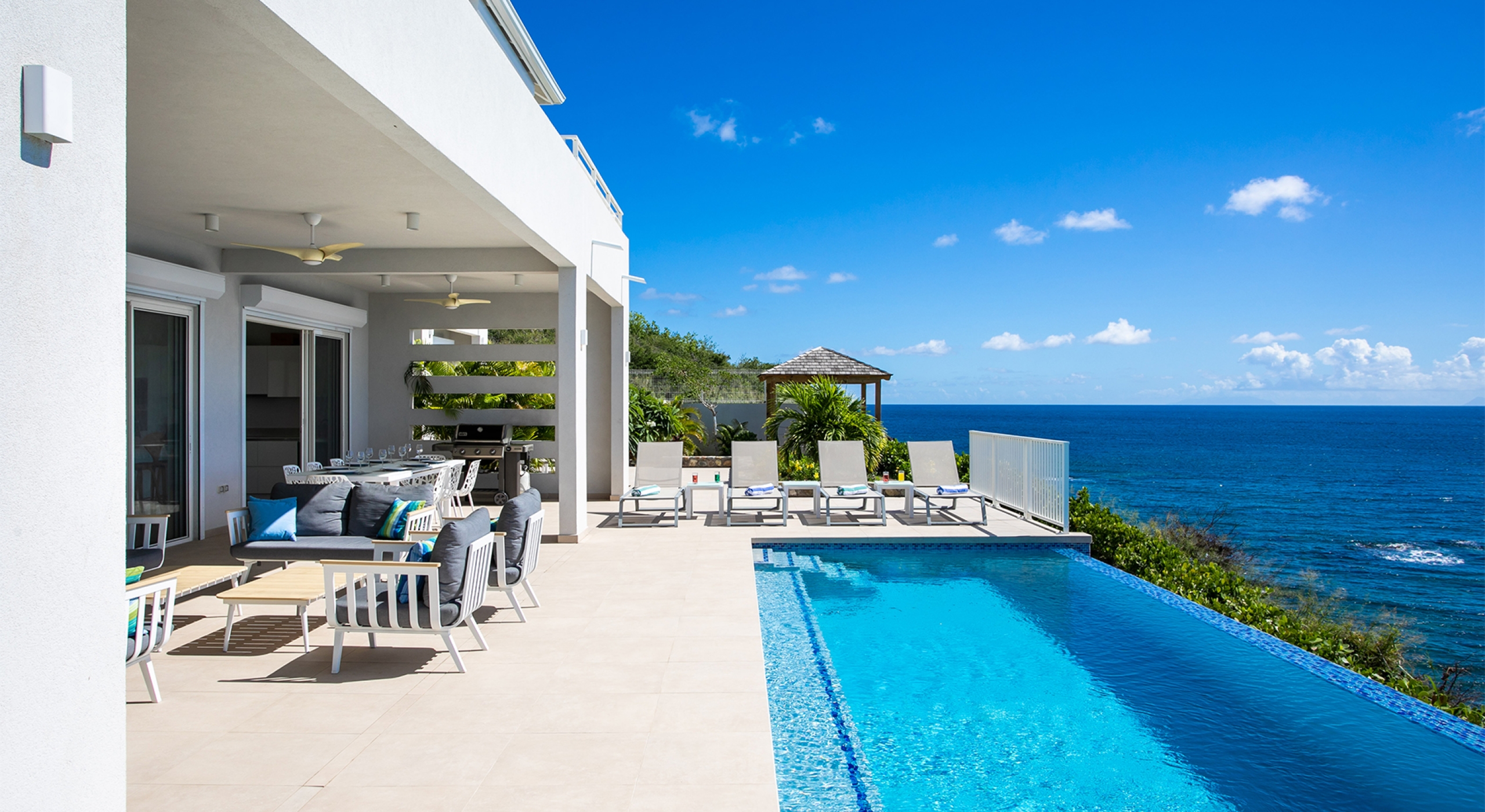 From its privileged cliffside location and south-westerly orientation, Villa Aqua commands a spectacular view over the Caribbean and the neighboring island of Saba on the distant horizon.