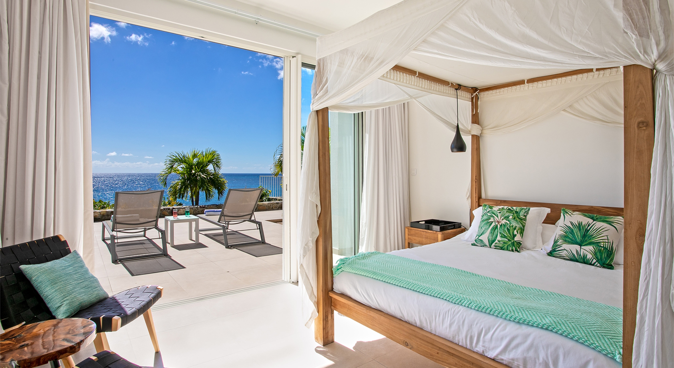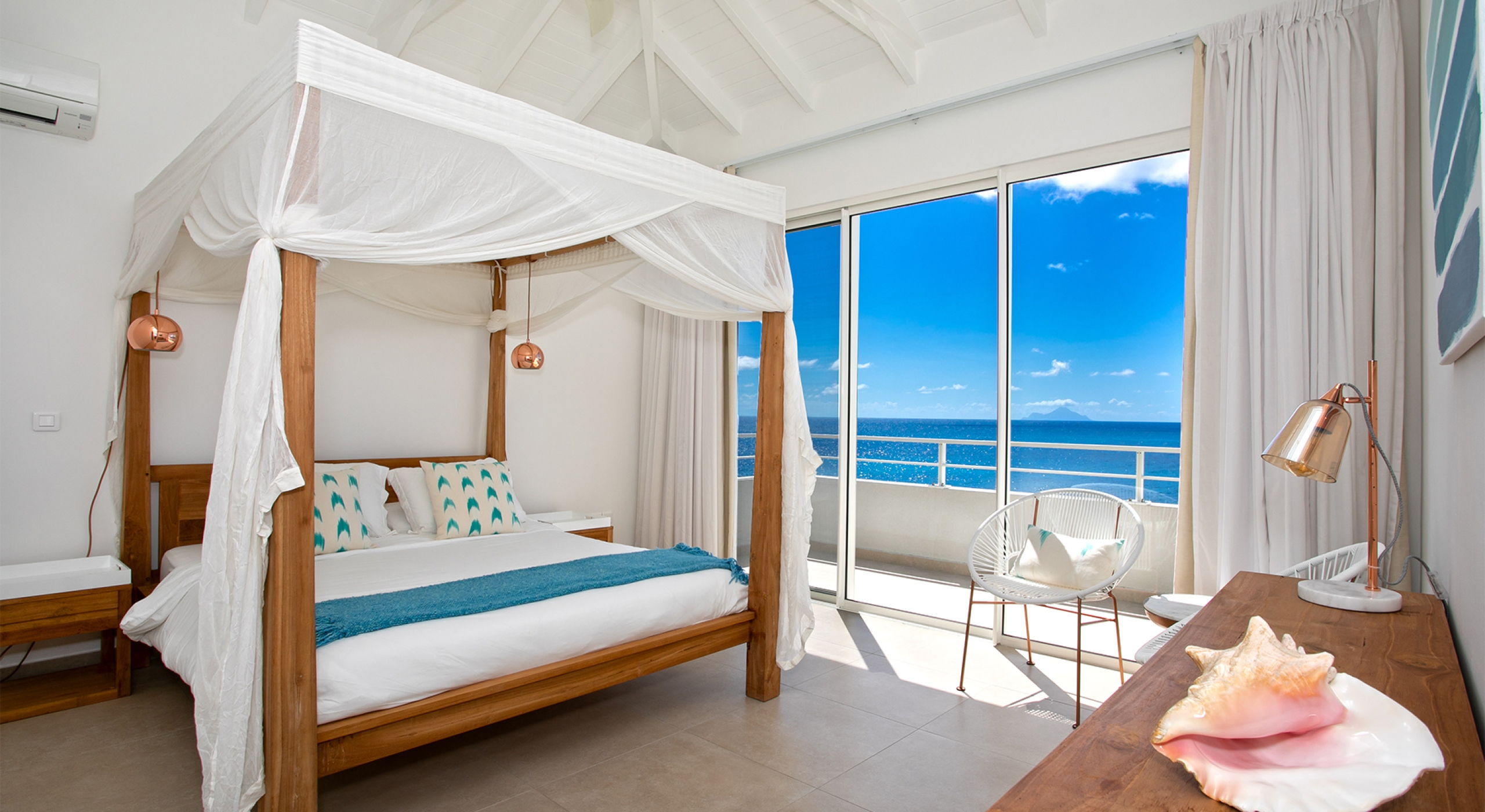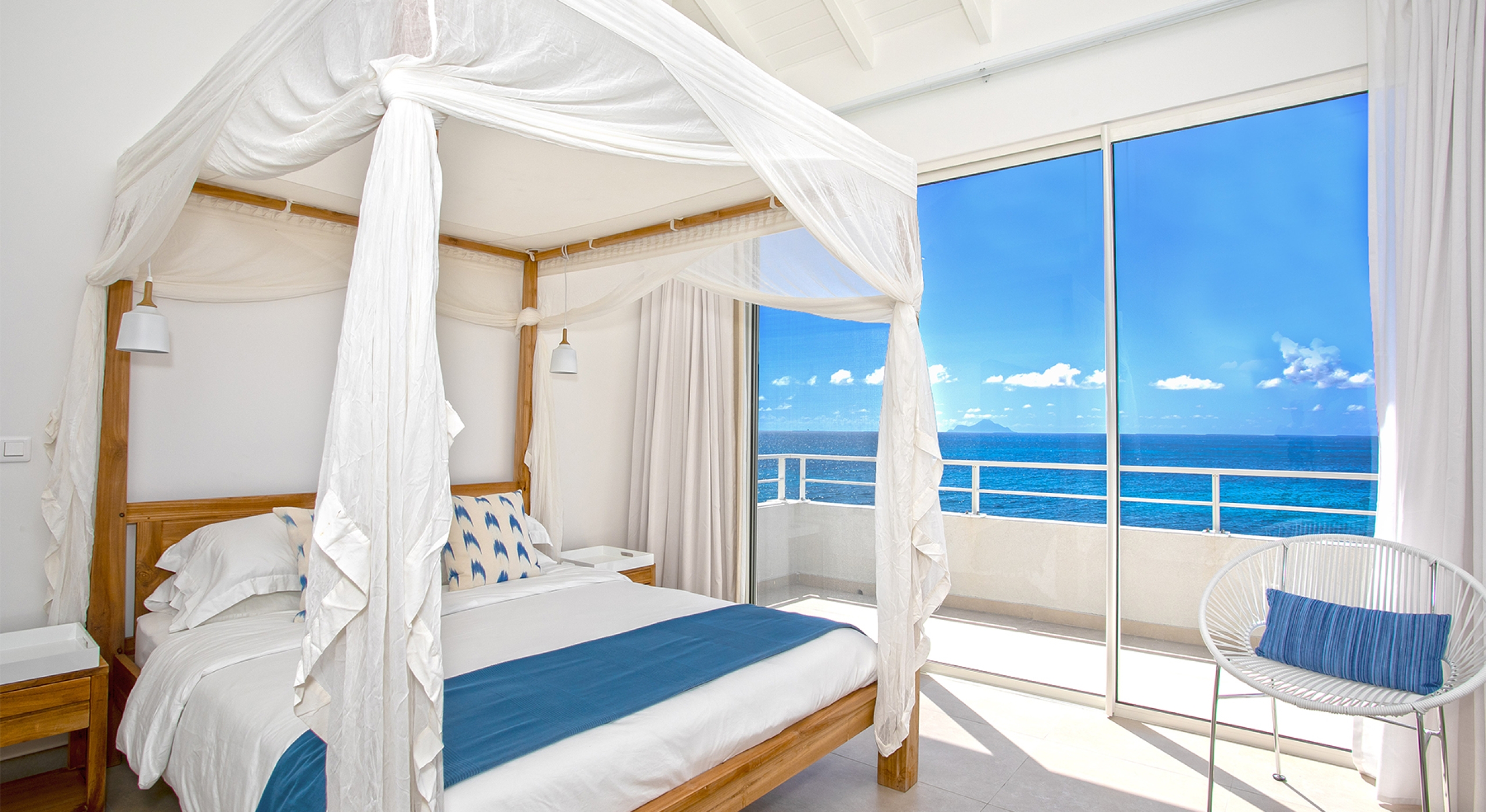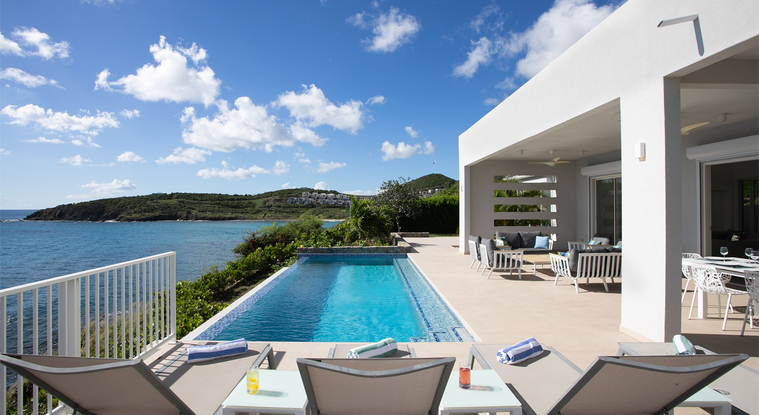 From its privileged cliffside location and south-westerly orientation, Villa Aqua commands a spectacular view over the Caribbean and the neighboring island of Saba on the distant horizon.