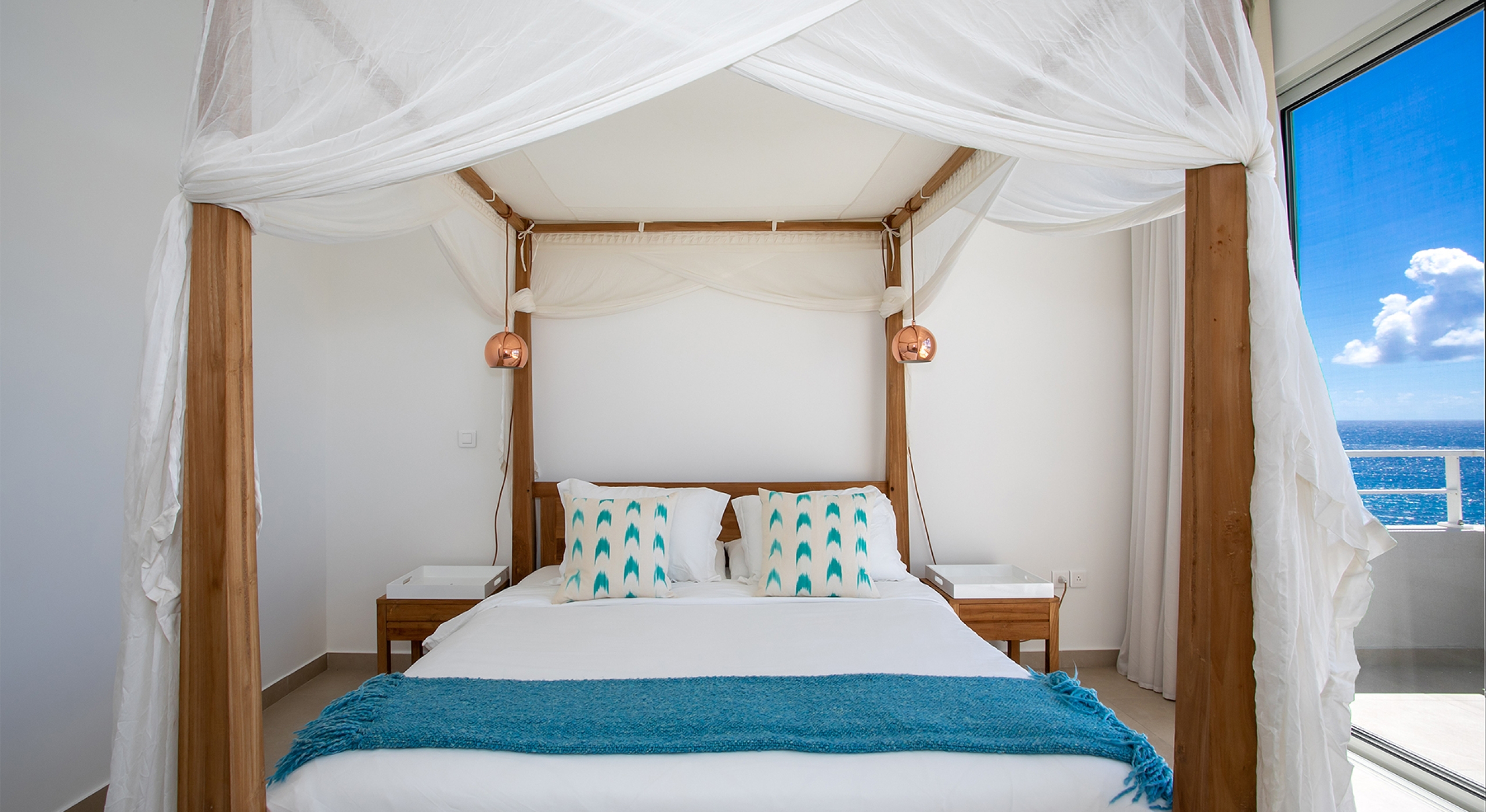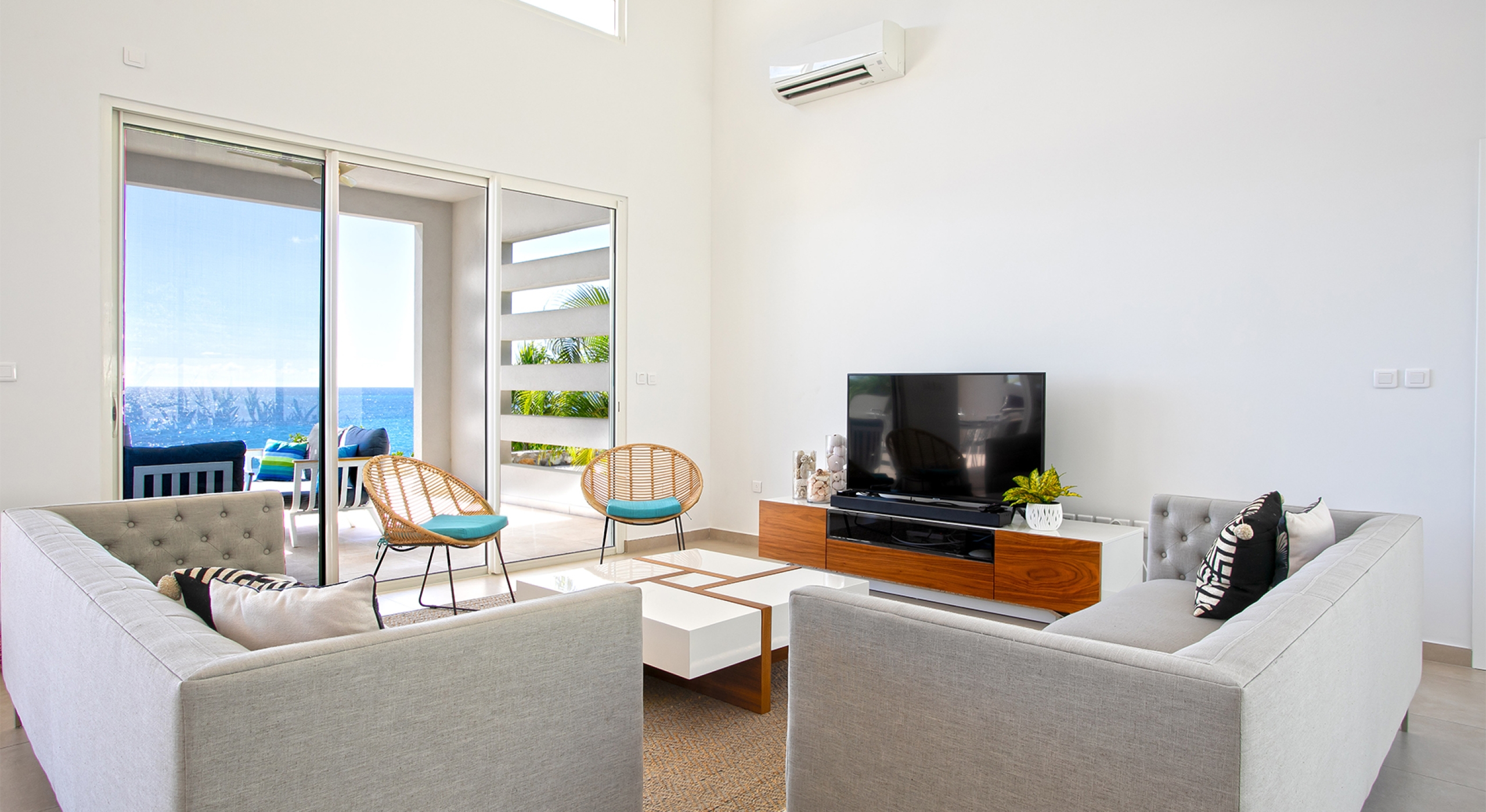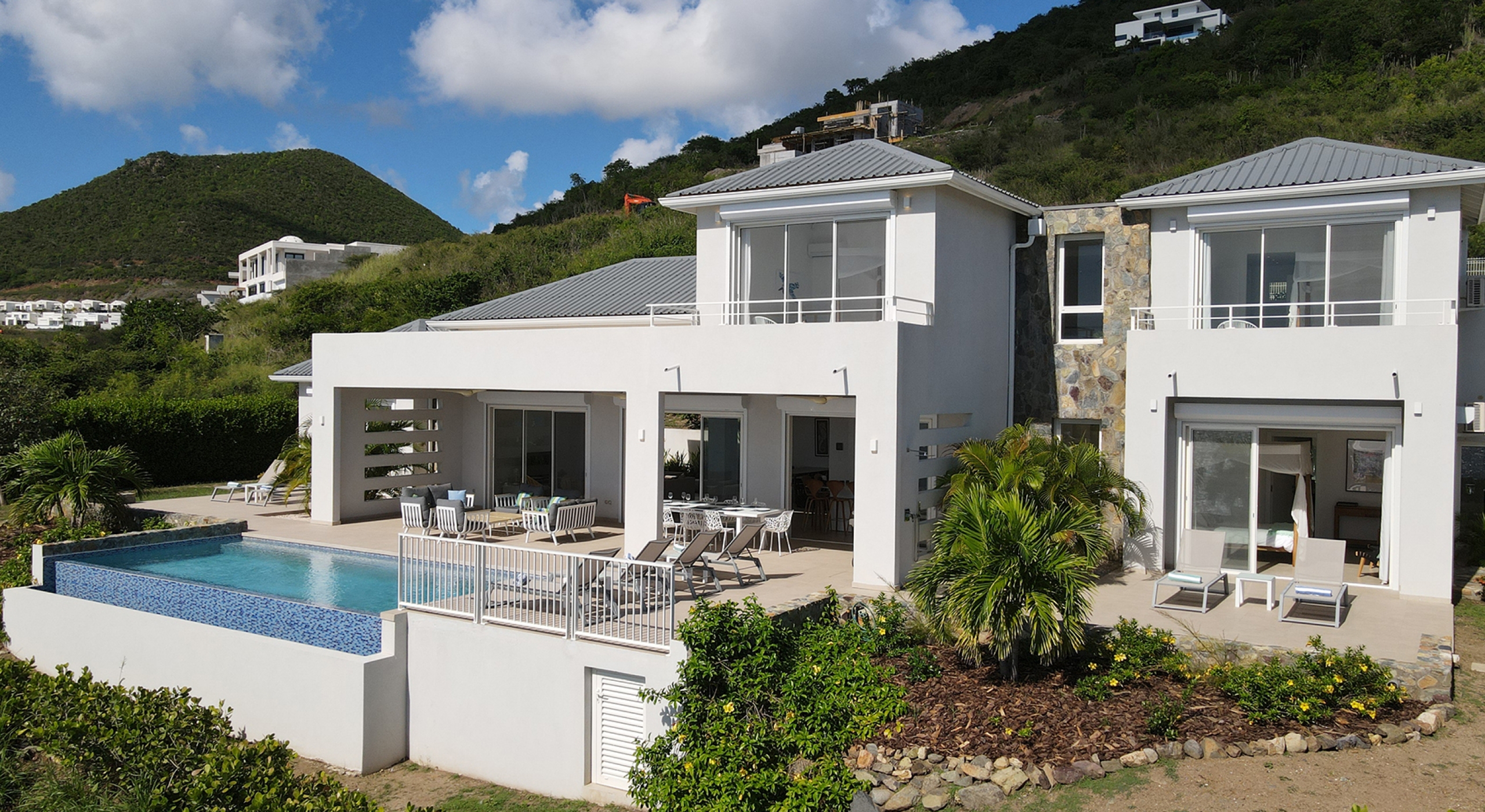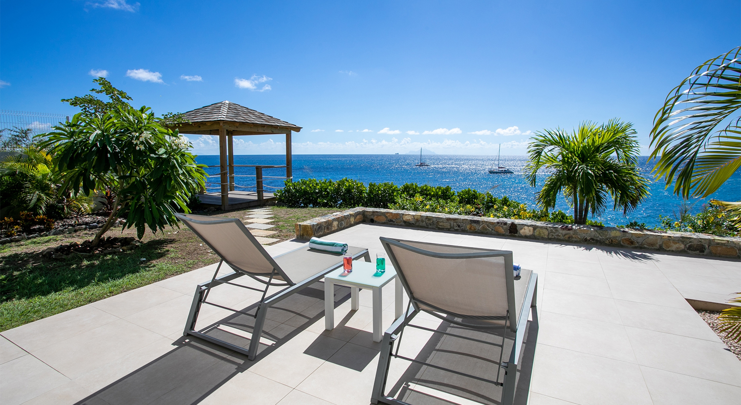 From its privileged cliffside location and south-westerly orientation, Villa Aqua commands a spectacular view over the Caribbean and the neighboring island of Saba on the distant horizon.