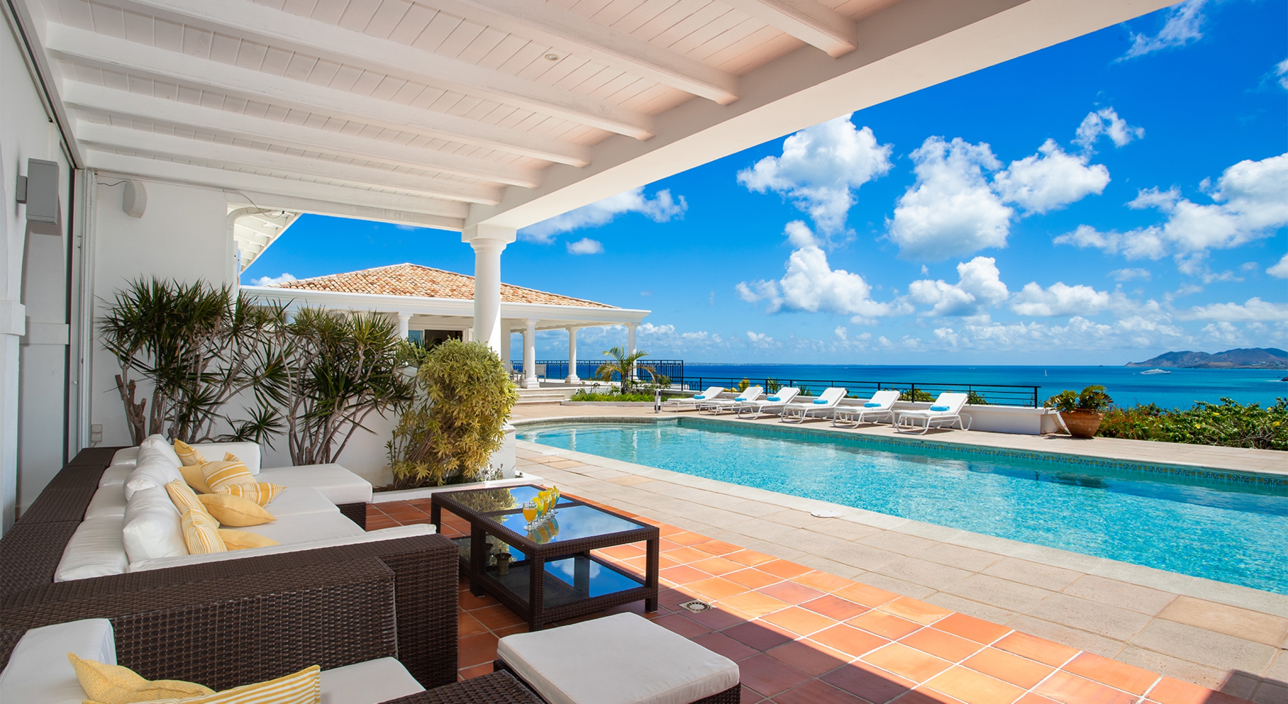 One of Beaulieu’s most iconic features is its exceptionally large 50' x 20' (heated) pool, a rare luxury even among the island’s finest villas. Perfectly positioned to capture sweeping sea views and the caress of ocean breezes, the pool area is the heart of the villa’s outdoor living, an ideal setting for sun-drenched days and starlit evenings. Throughout the villa, gentle trade winds offer a natural airflow, perfect to offer a cooling breeze for St. Martins (average) temperature of 80°F (27°C).