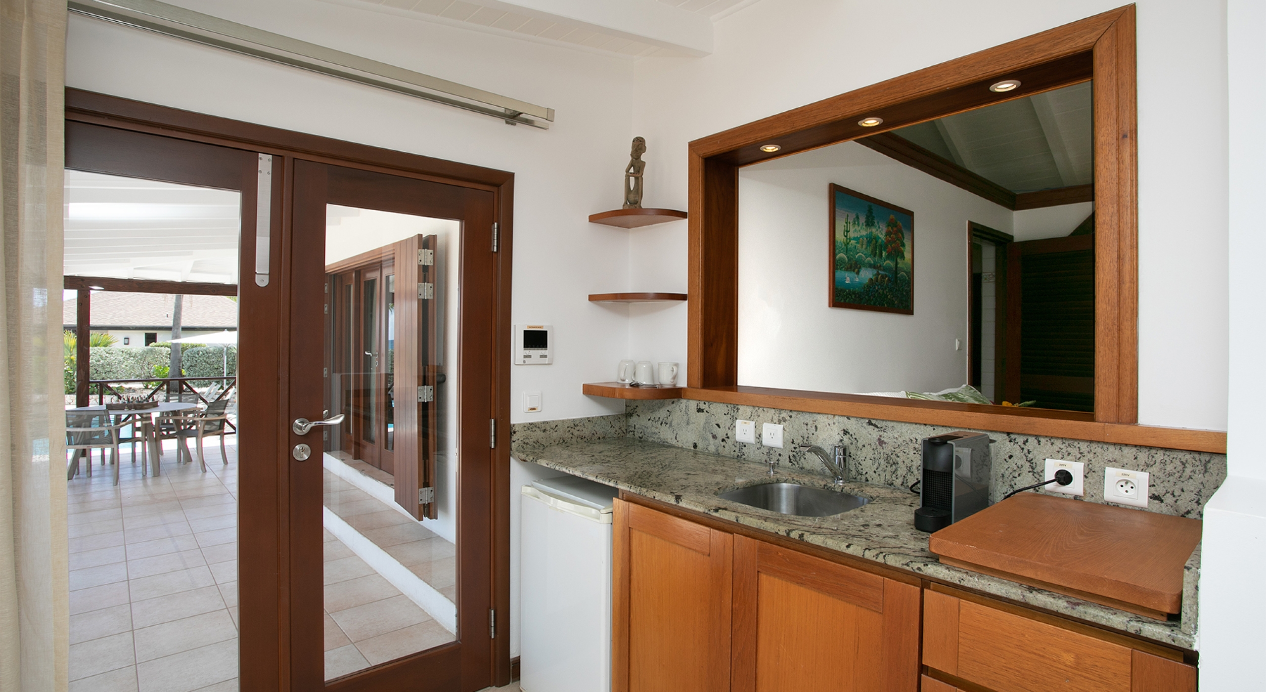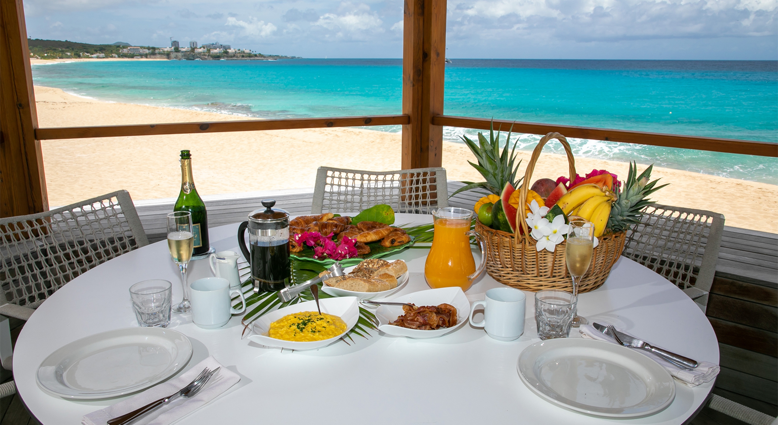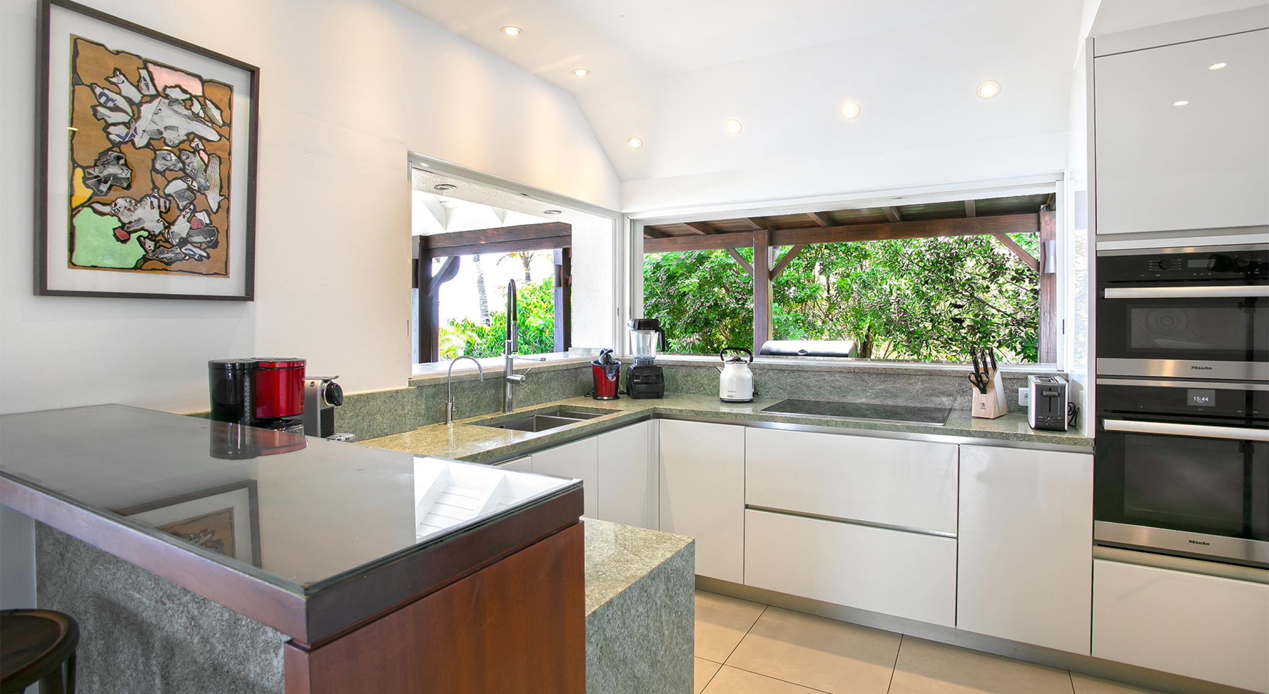 You are secluded, yet close to amenities. The beach is right in front of you. The fabulous restaurants and food purveyors in Baie Nettle and Porto Cupecoy are a few minutes' drive. You are 10 minutes to the French capital of Marigot, with its shops, restaurants, markets, and galleries, and 8 minutes to the airport. Grand Case and Philipsburg are 30 minutes away.