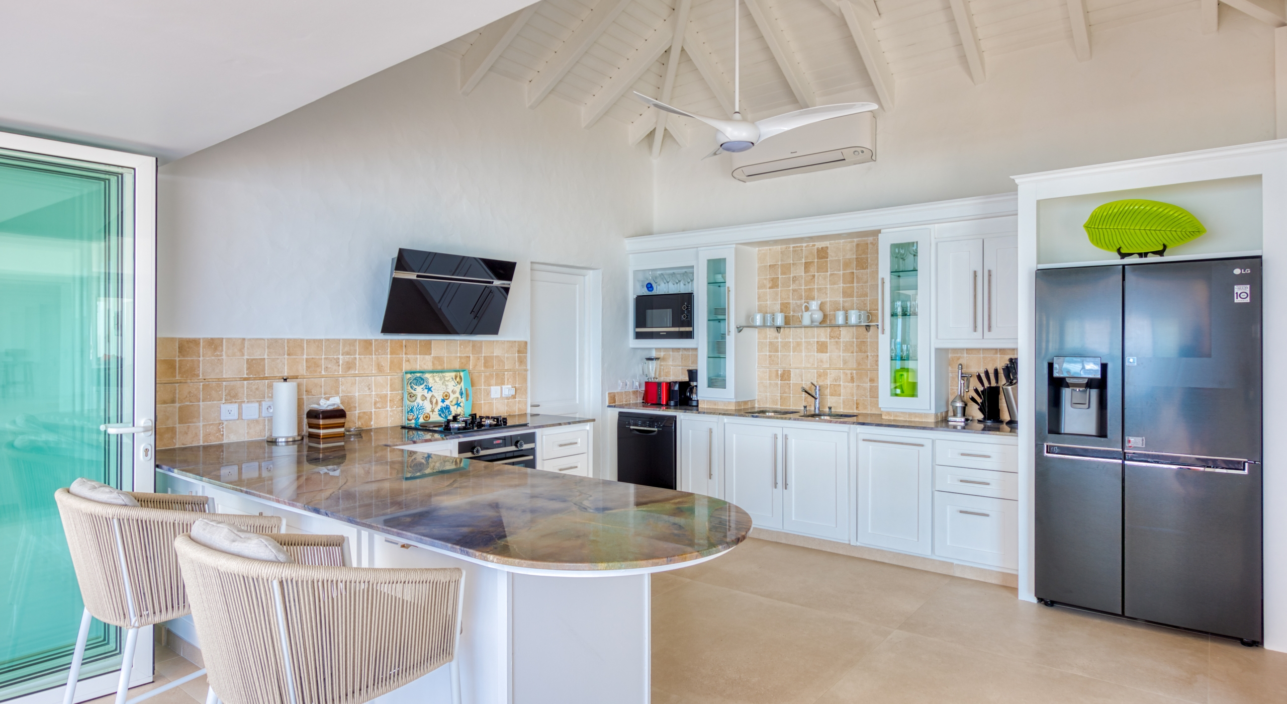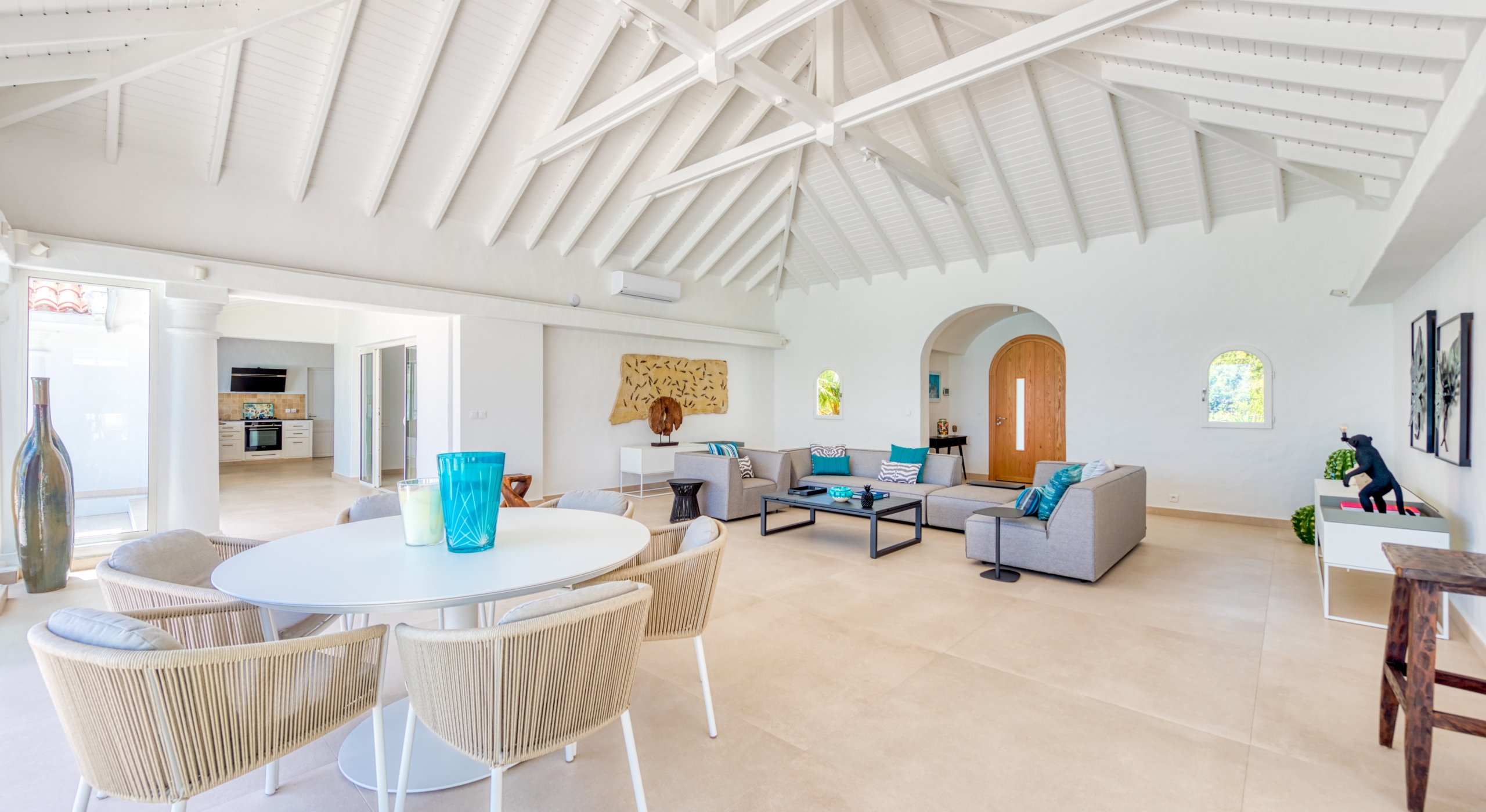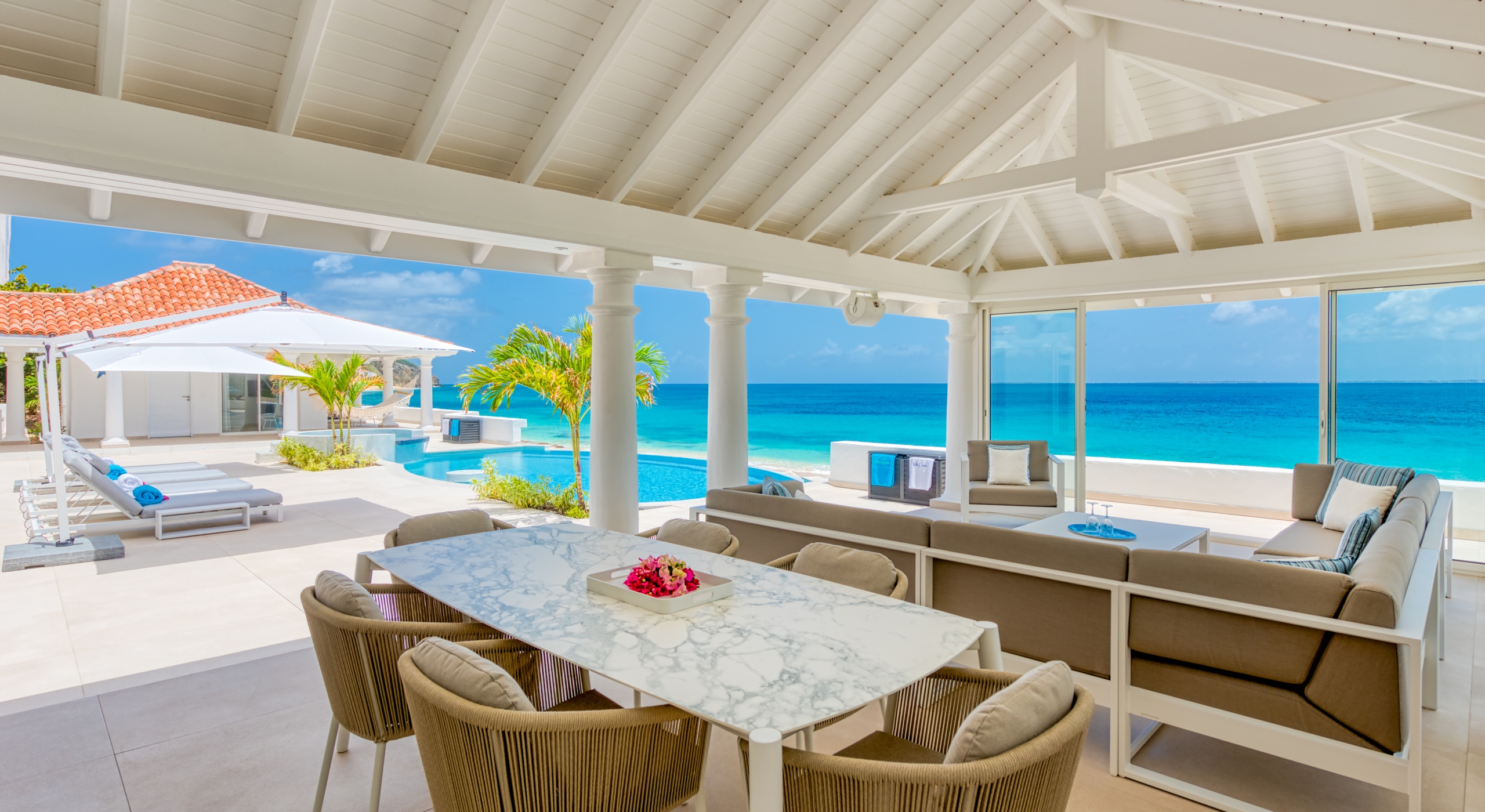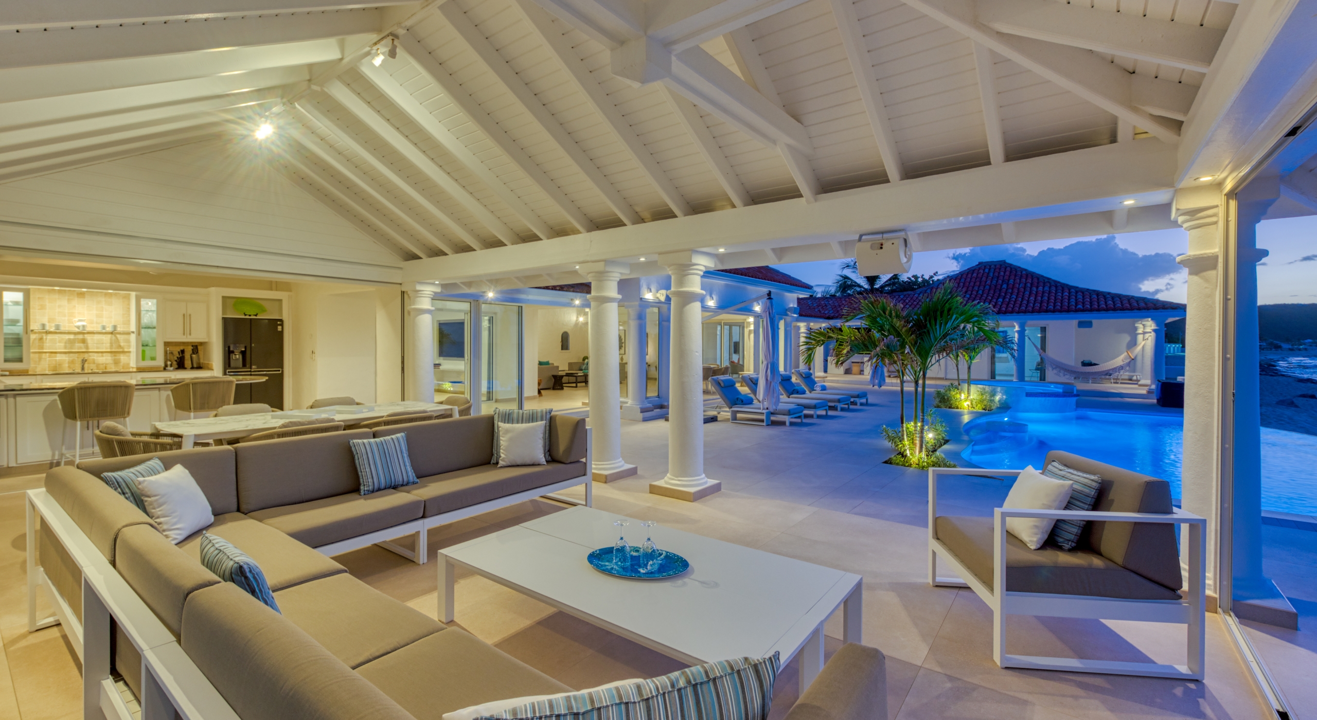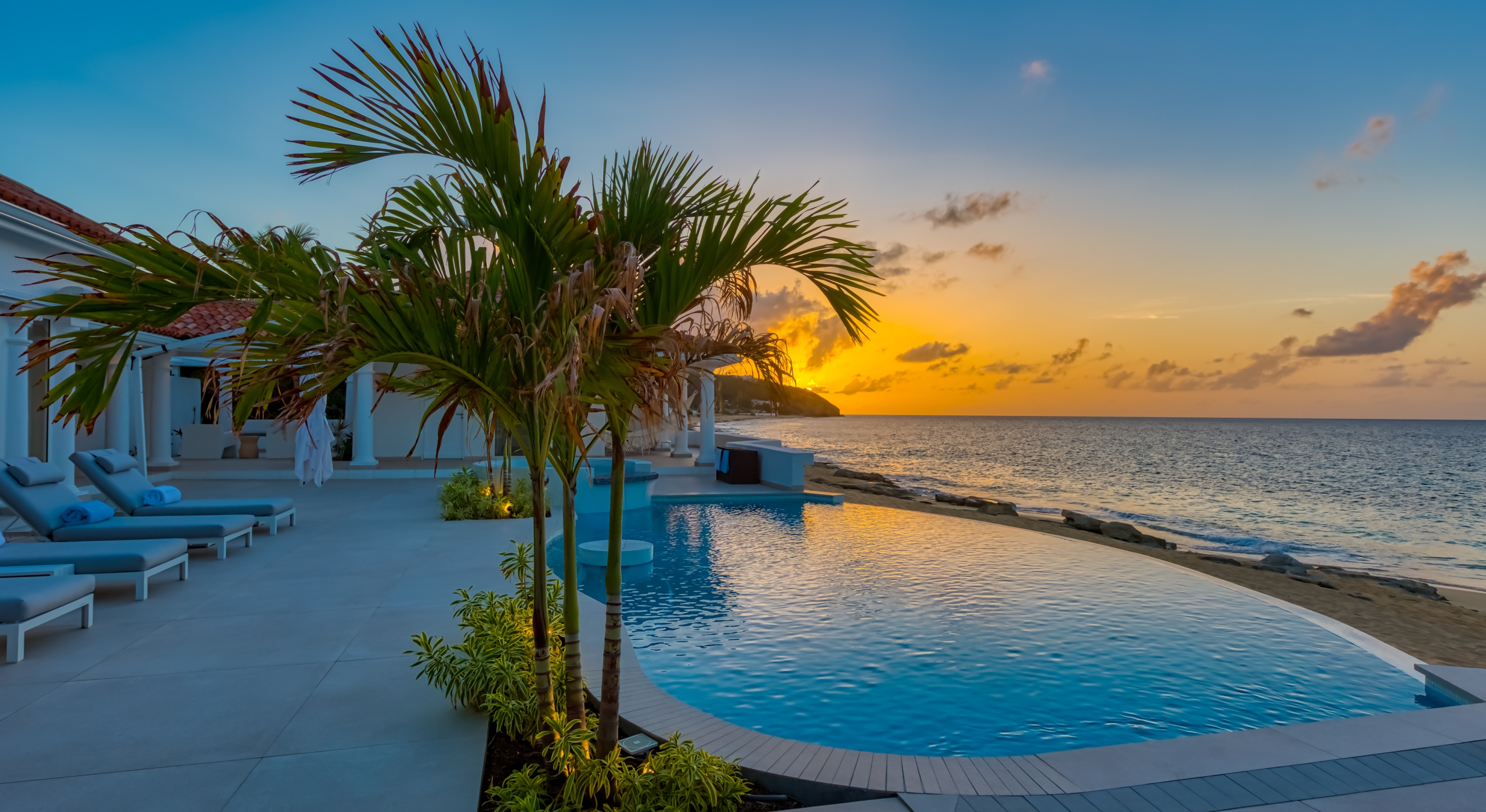Located directly on Baie Rouge Beach, this Saint Martin villa rental is a gorgeous mix of contemporary styling and Caribbean relaxation. Carisa is a fully air-conditioned villa, and has a separate media room with a 60 inch Plasma TV and top quality THX audio system both for watching DVDs (you'll swear you are in the theatre) or listening to CDs. You can play music out to the open Gazebo, the pool area, or even listen to it in the raised heated Jacuzzi.