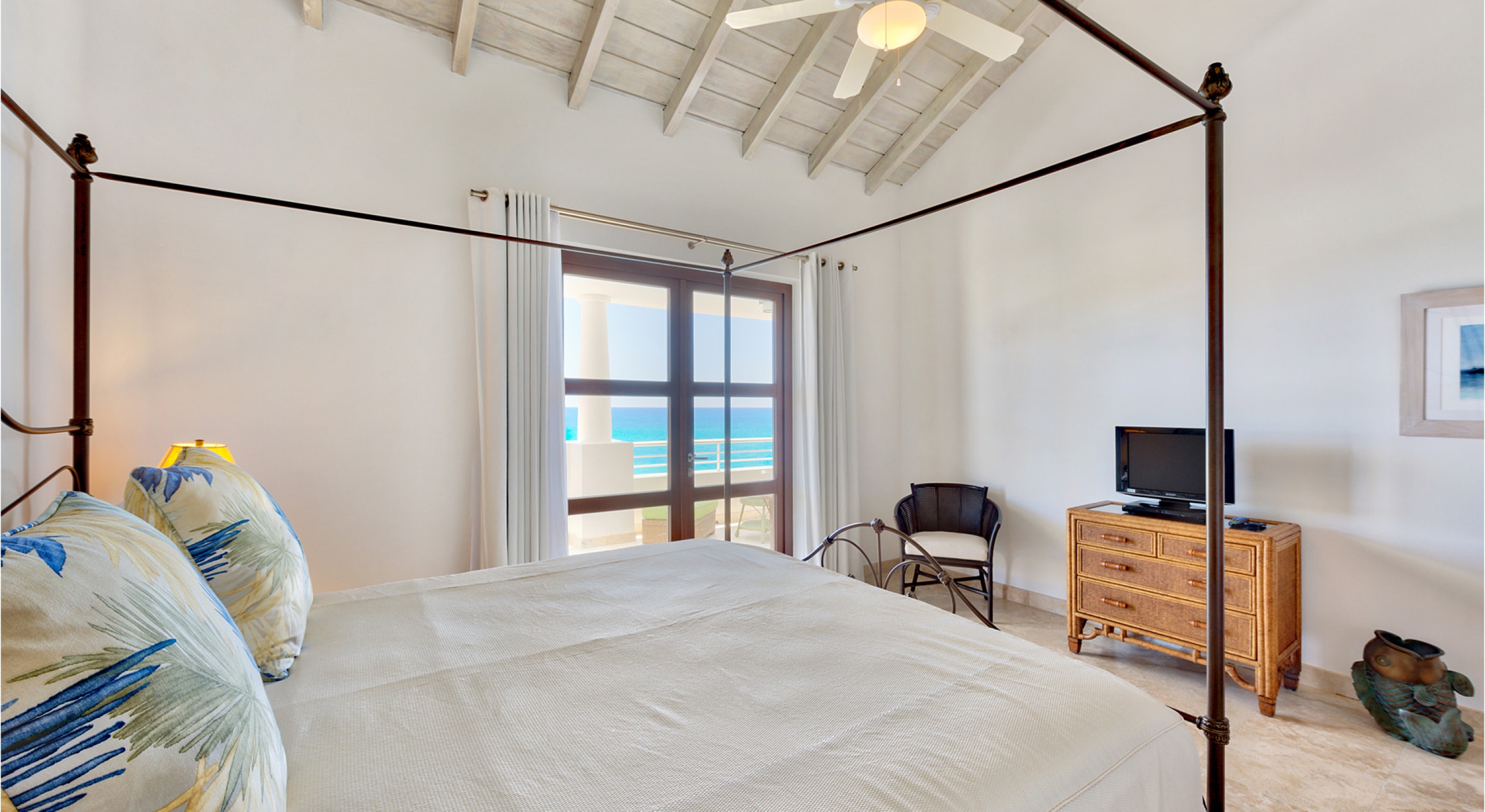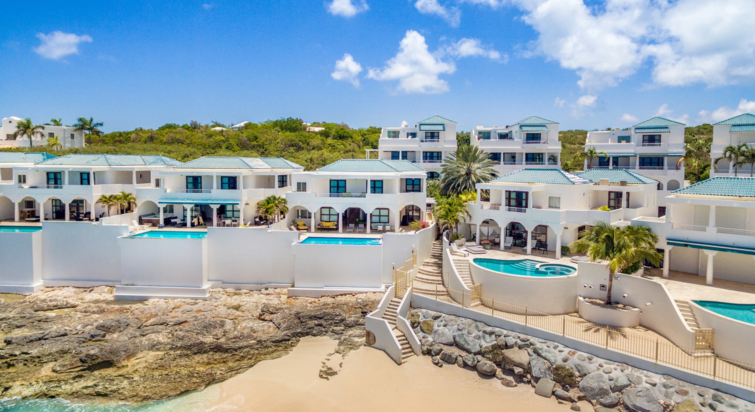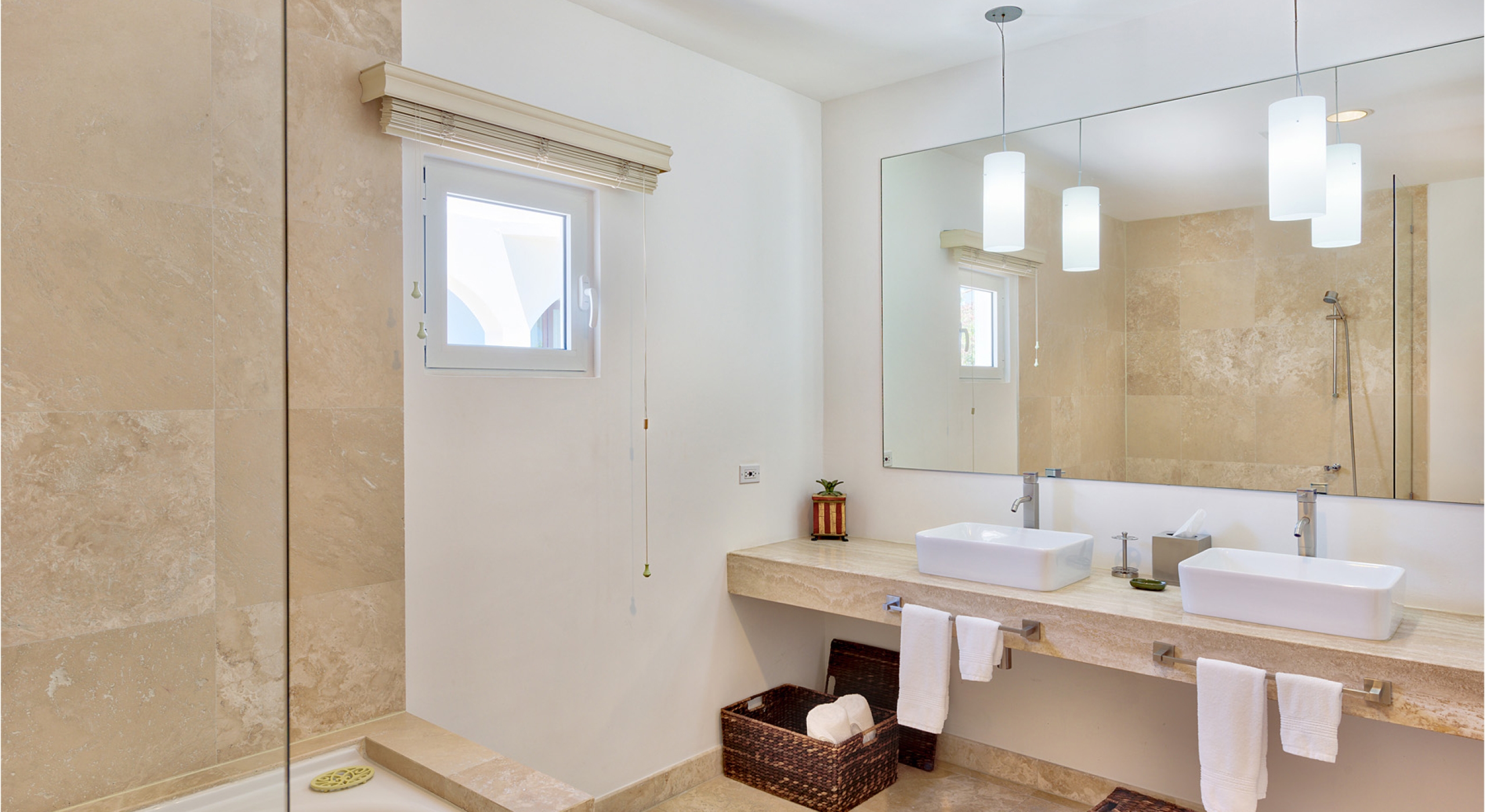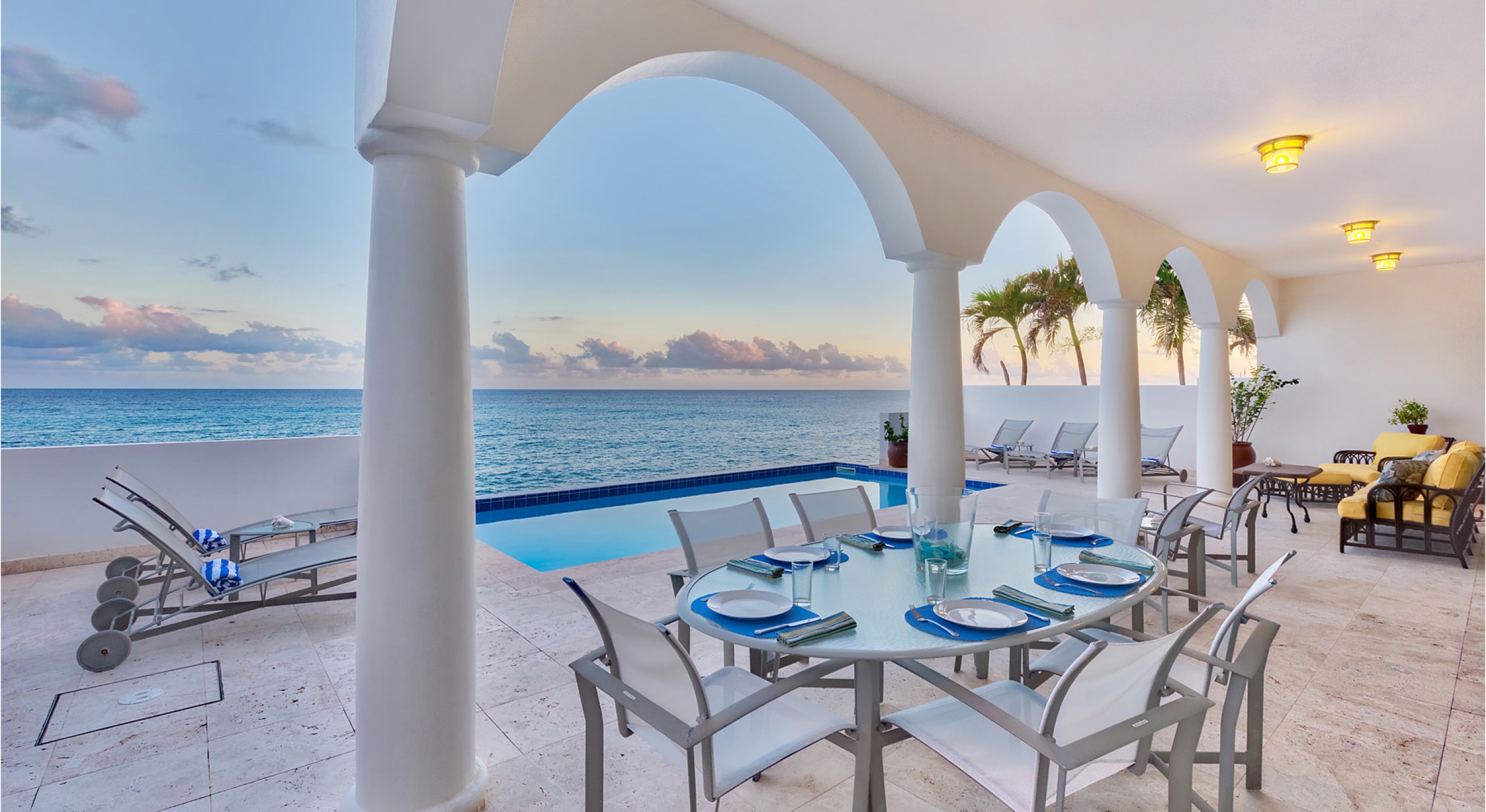 Etoile de Mer is located on the edge of the Caribbean Sea in a residence known a Shore Pointe. You get the best of both worlds when staying at Etoile de Mer as you are beachfront and walking distance to Porto Cupecoy which has a beautiful marina with stores and restaurants. The entrance to Etoile de Mer leads through an elegant door that opens to the living area and kitchen. As you enter you are met by the views of the Caribbean Sea and Cupecoy Beach. The interiors flow graciously through wooden glass sliding doors and right onto a spacious covered terrace and deck. The outdoor terrace is perfect for dining and lounging. Early evening you will be greeted by a beautiful sunset. Cupecoy Beach is notorious for the “green flash”. The living area features a high-end kitchen with luxury appliances. There is also an indoor dining area in case you want to eat inside. The living area of Etoile de Mer is conveniently located on the first floor right in front of the ocean view. The four bedrooms have king-size beds, sea views, and en suite bathrooms. Each en suite bathroom are spa style with walk-in showers. One bathroom has a large bathtub. Etoile de Mer is 10 minutes from the airport and 15 minutes from Marigot, the French side capital. Cupecoy is a very convenient region as it is central and on the border of the Dutch and French sides.