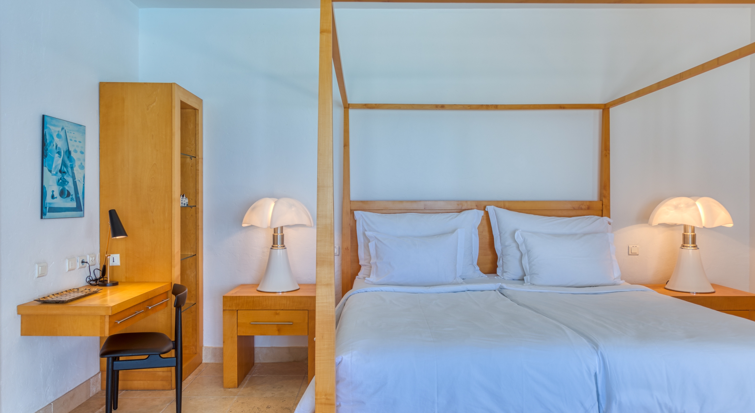 Bedroom 4: Ground floor bedroom with a king size bed, A/C, TV, WiFi, refrigerator, sea views and en-suite bathroom with shower, vanity and wc. 2 guests maximum