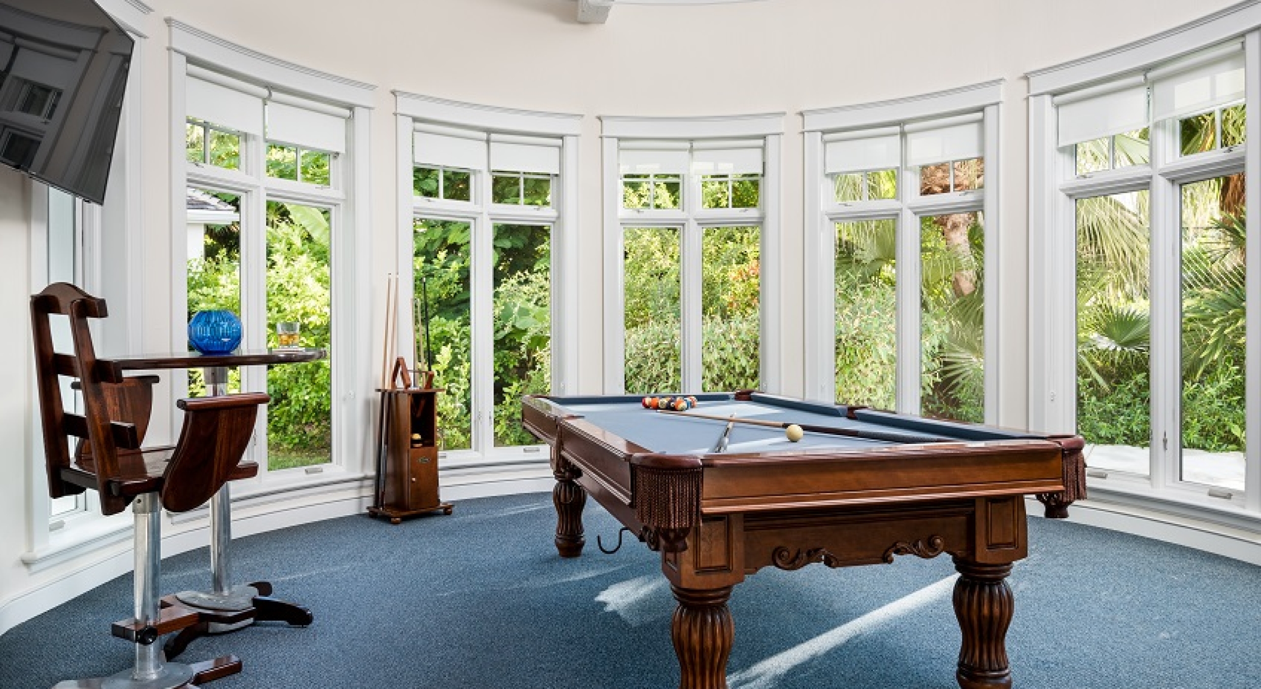 Here you could start your days stretching in the yoga pavilion or working out in the gym, then recover in the pool or the hot tub while your chef prepares to delight your taste buds. In the afternoons, retreat to the media room to play pool, shuffleboard or practice your golf on the simulator. Stay active out on the pickleball court or kicking a ball around on the lawn.