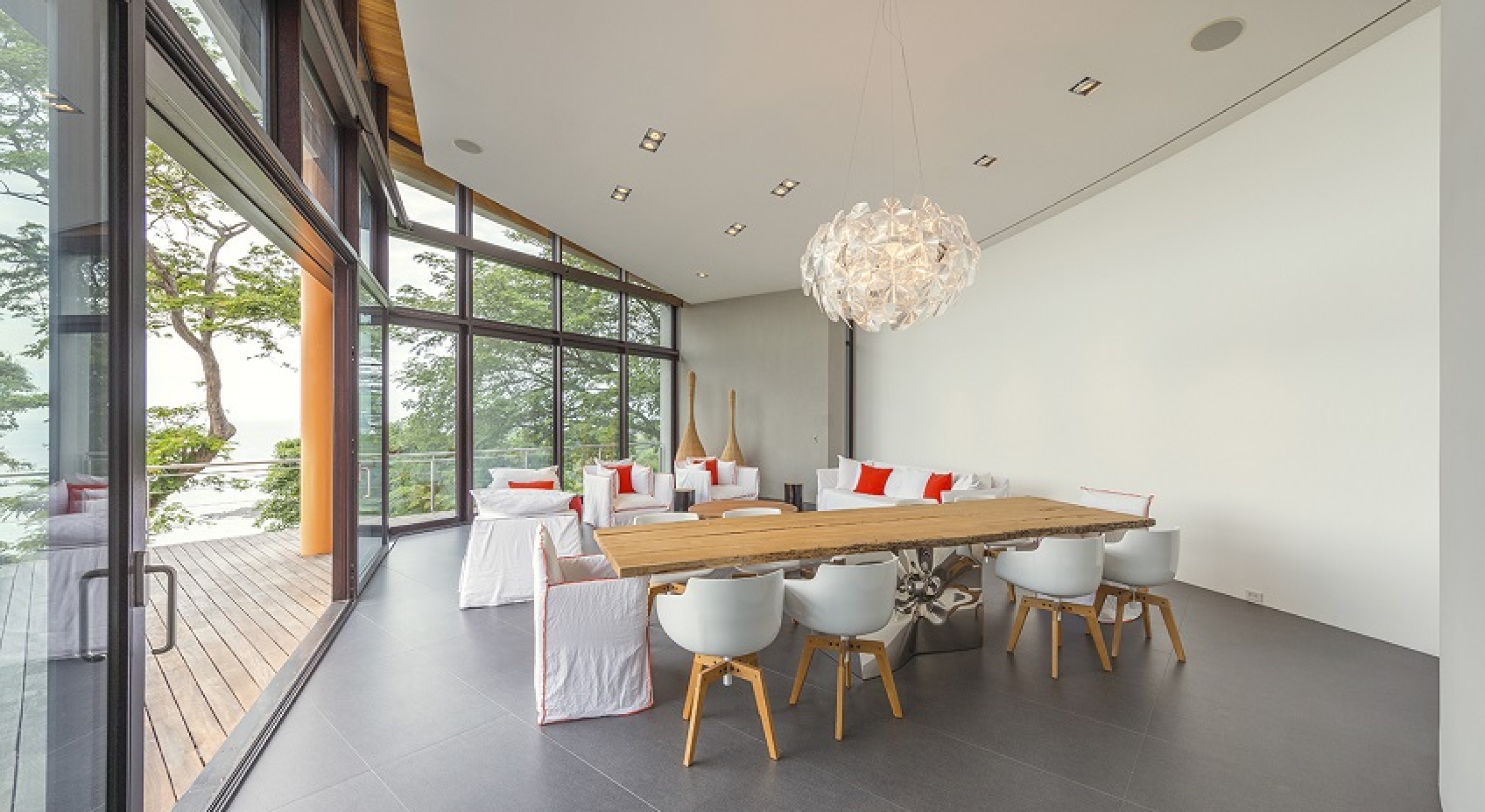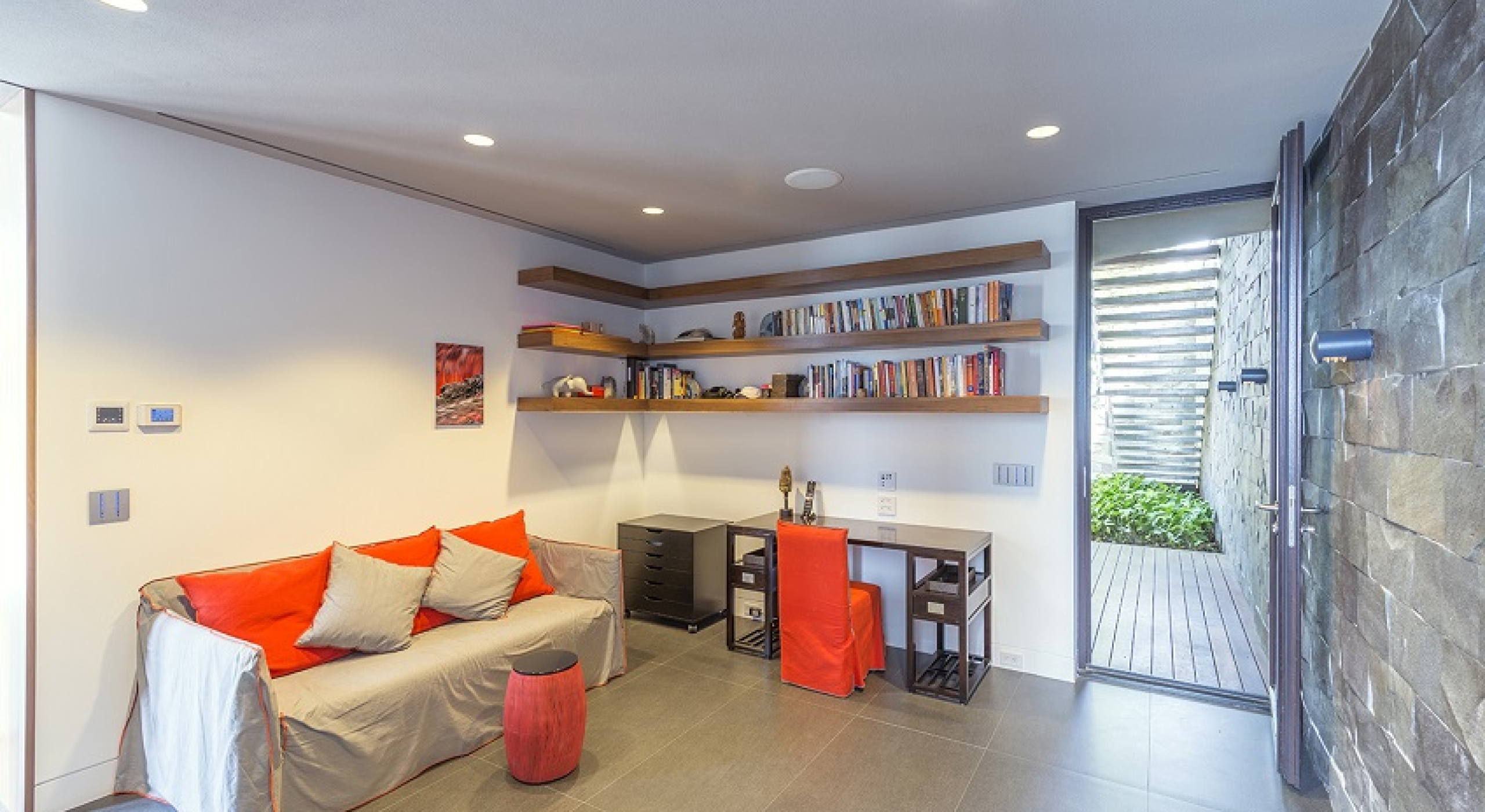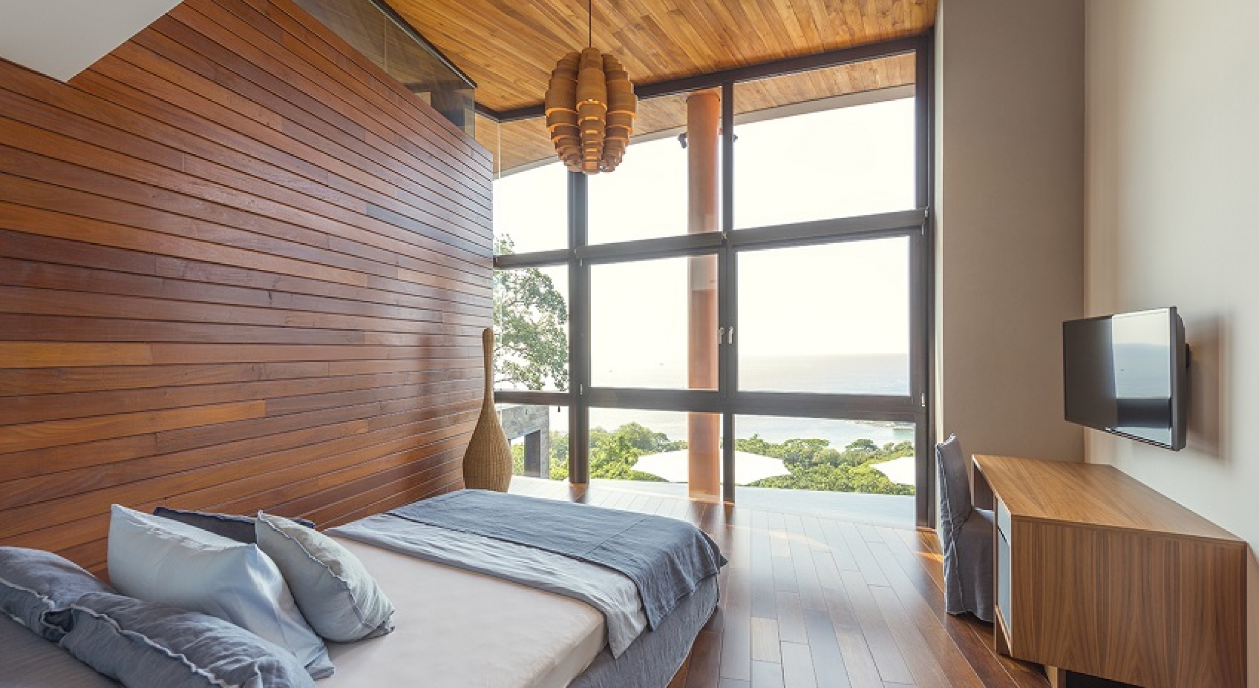 Spend hours on the sun deck, gaze admiringly at the dramatic architecture of the villa itself with its many lounging and dining niches and spots, upper and lower terraces, and innovative use of stone and wood. The interiors are a perfect reflection of the contemporary and clean styling used to create the structure. High ceilings, cool stone floors and a palette that emphasizes the neutral and reserved, it is an expansive and gracious space that encourages relaxation at every turn.