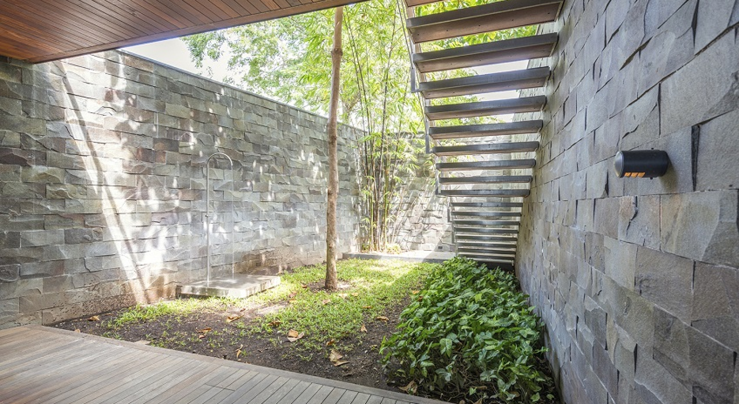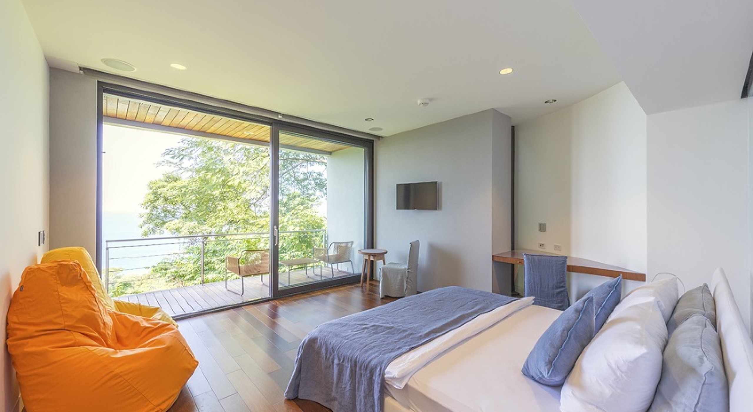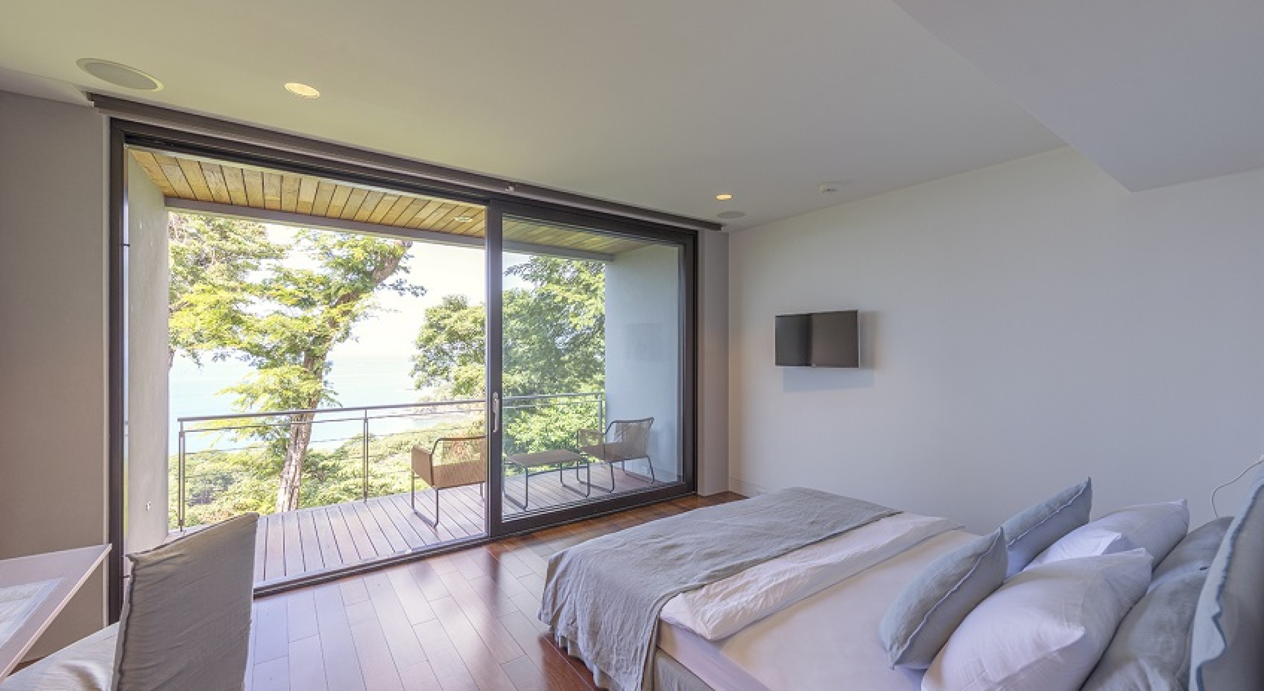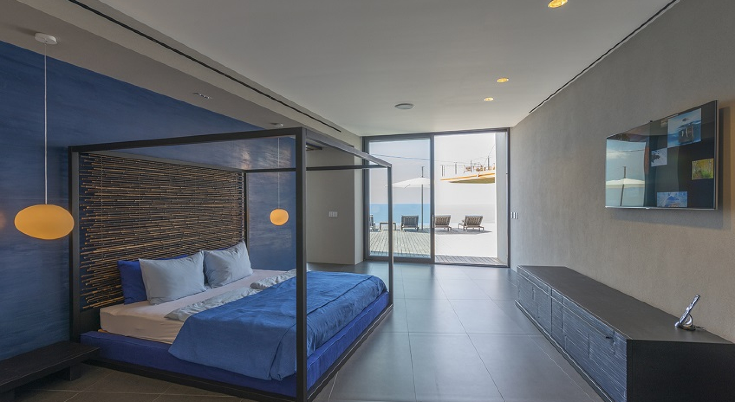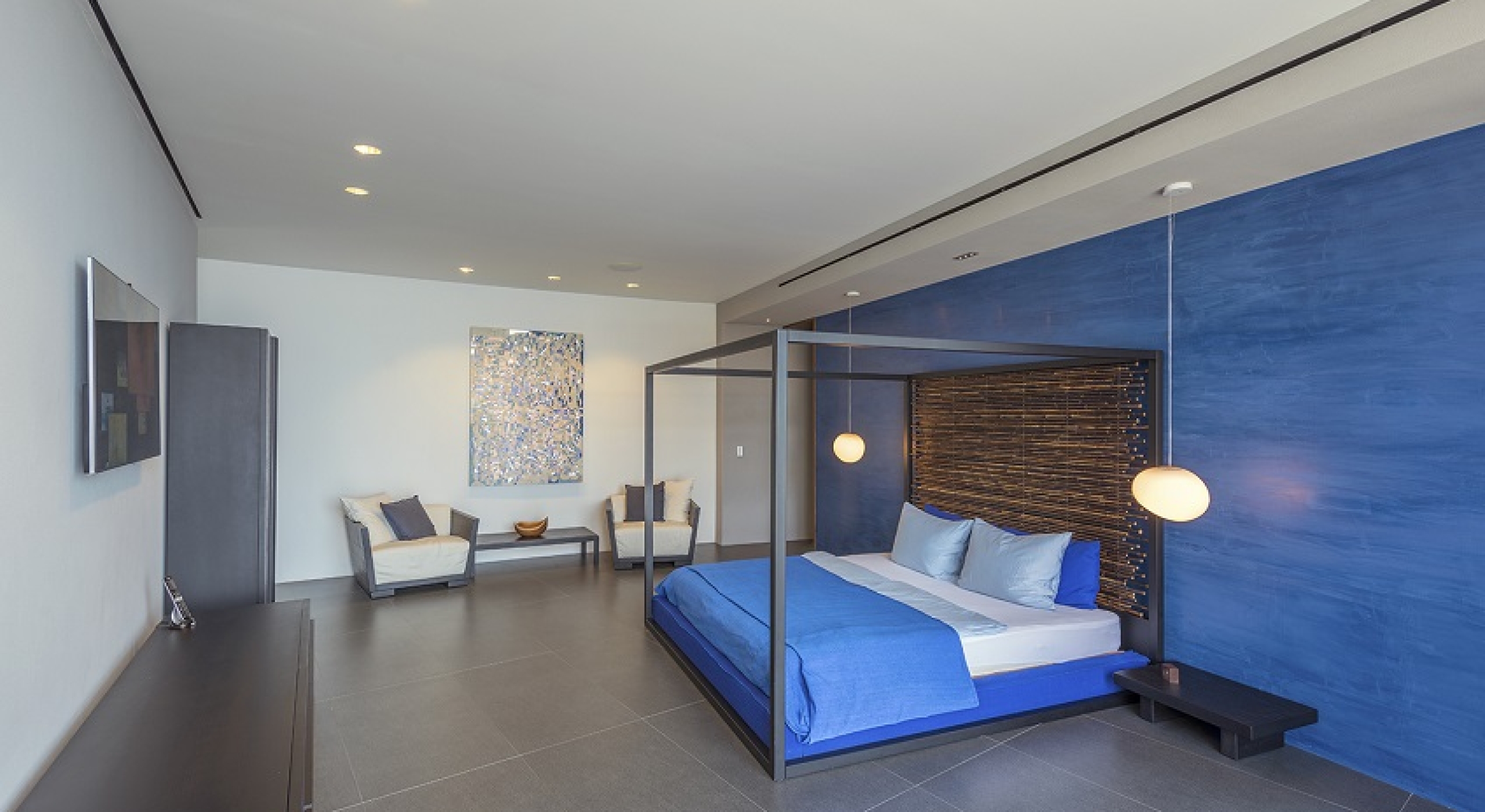 Bedroom 1 - Master: King size bed, Ensuite bathroom with stand-alone shower & bathtub, Dual vanity, Alfresco shower, Walk-in Closet, Lounge area, Television, Sound system, Safe, Direct access to deck, Alfresco shower in zen garden