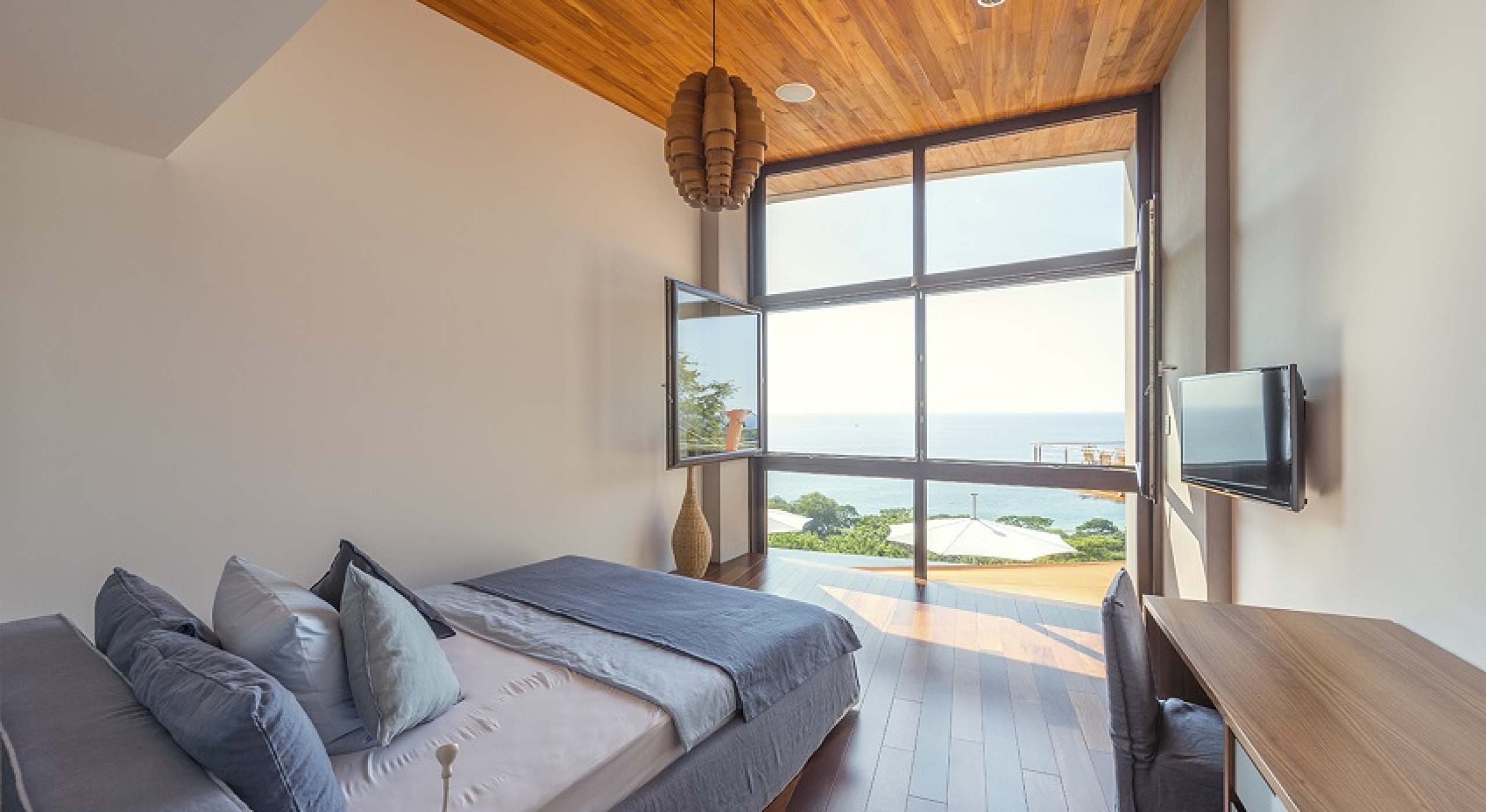 This tranquil and contemporary beachfront villa offers some of the most scenic sunsets.